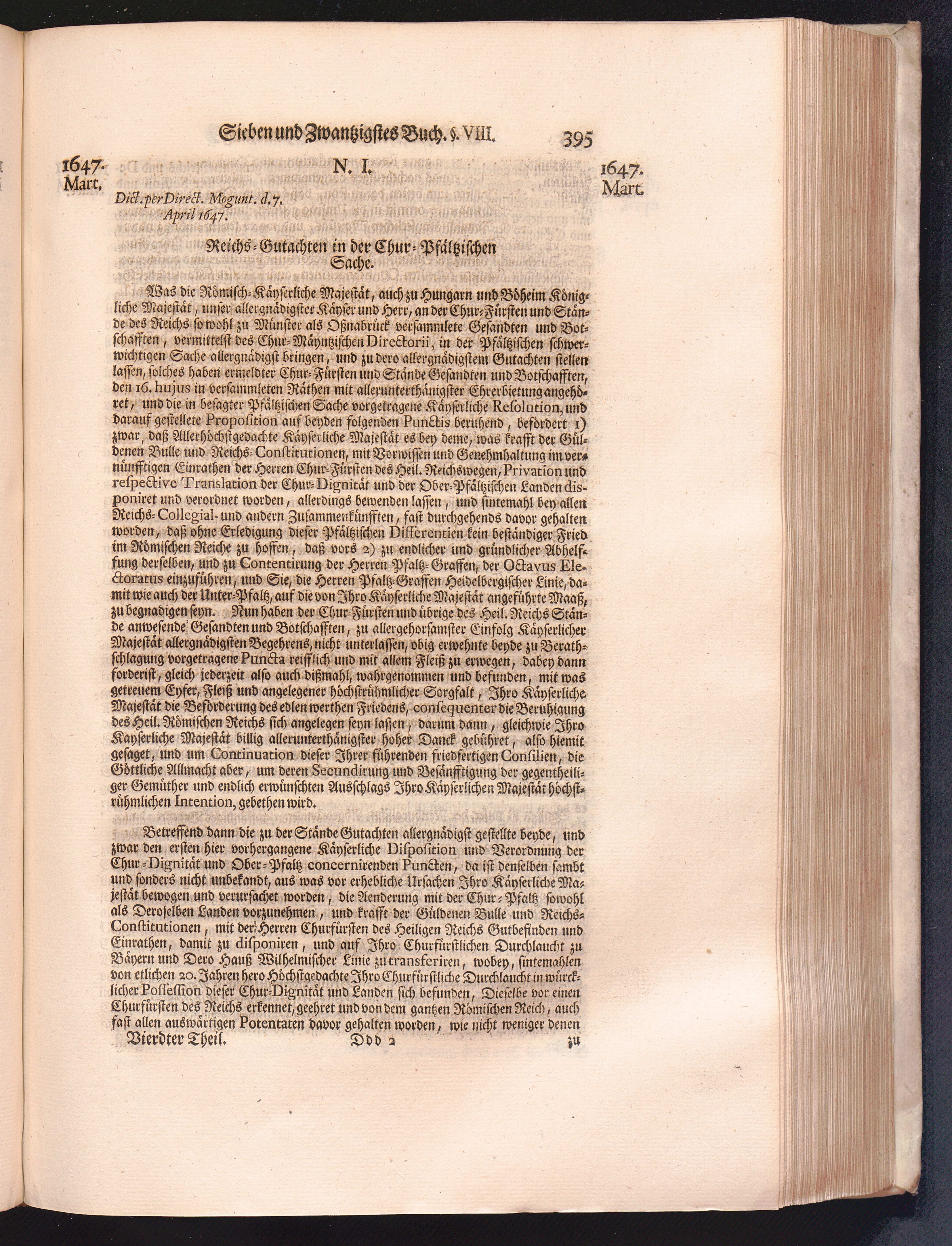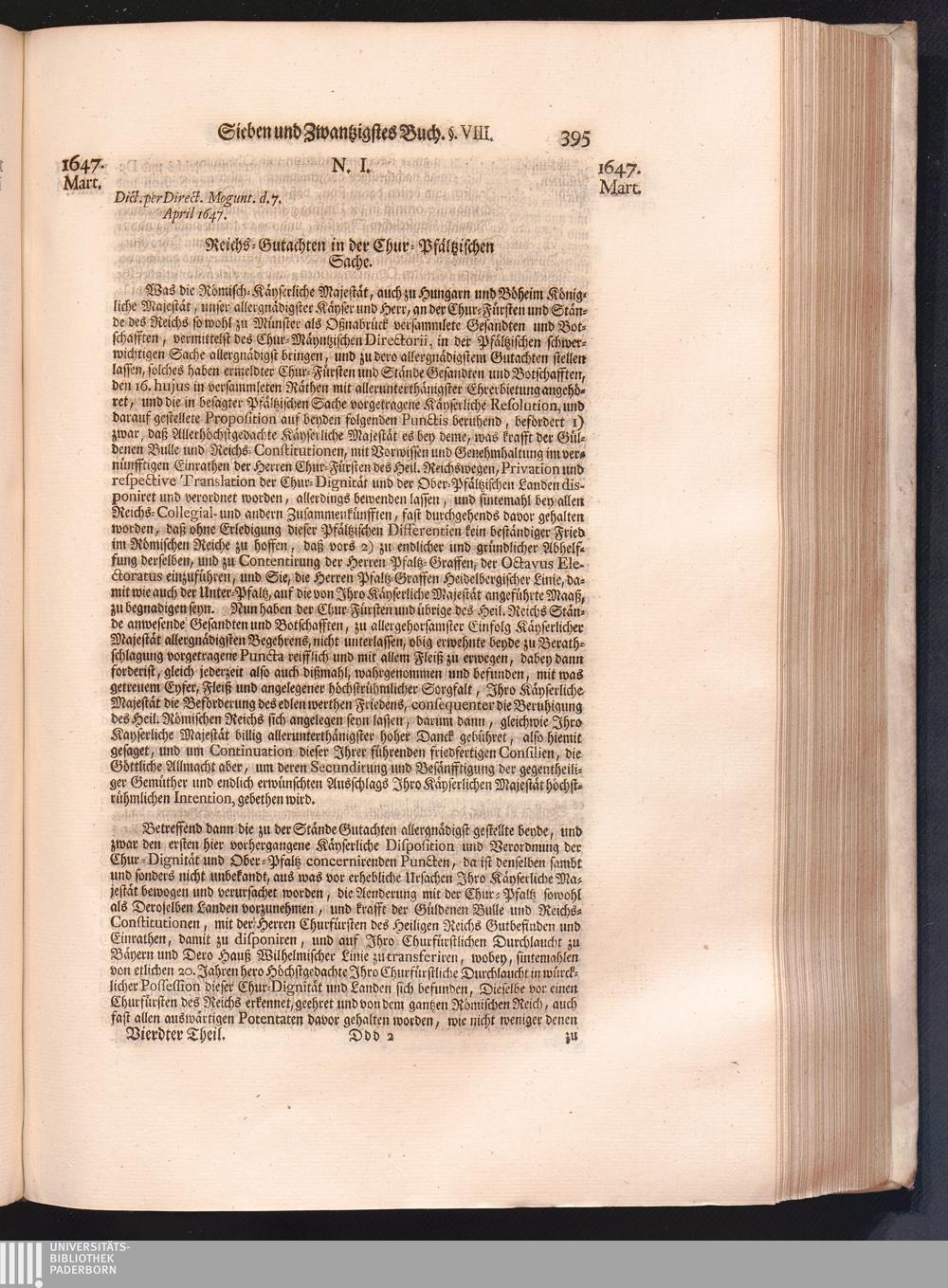 Vierdter Theil (1735) Worinnen enthalten, was vom Anfang des Jahrs 1647. biß gegen Ende desselben zwischen Jhro Römisch-Kayserlichen Majestät, dann den Beyden Cronen Franckreich und Schweden, ingleichen des Heiligen Römischen Reichs Chur-Fürsten, Fürsten und Ständen, zu Oßnabrück und Münster gehandelt worden