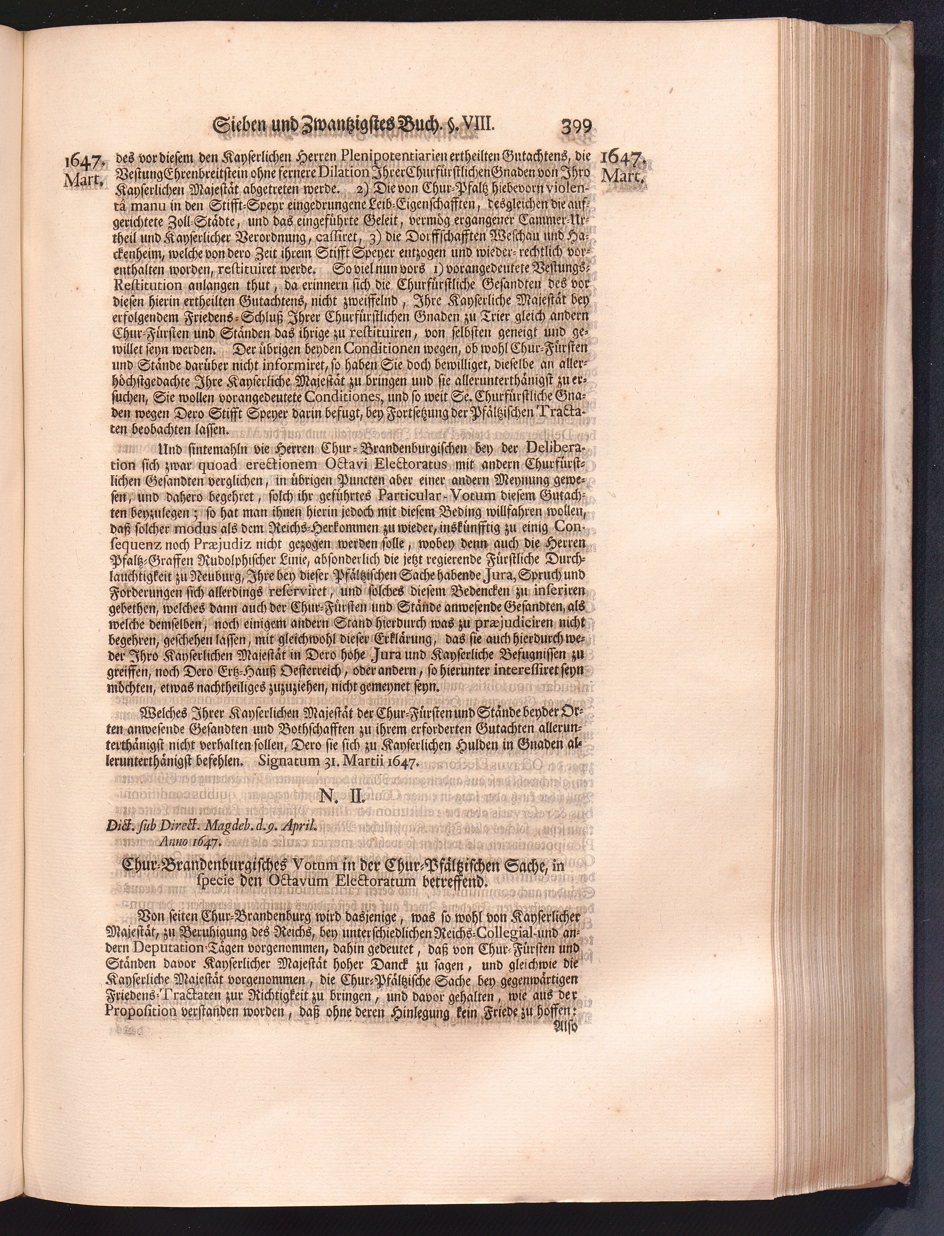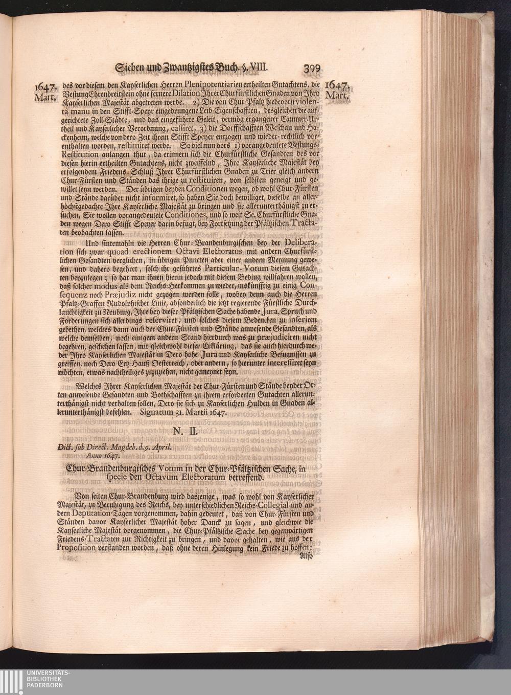 Vierdter Theil (1735) Worinnen enthalten, was vom Anfang des Jahrs 1647. biß gegen Ende desselben zwischen Jhro Römisch-Kayserlichen Majestät, dann den Beyden Cronen Franckreich und Schweden, ingleichen des Heiligen Römischen Reichs Chur-Fürsten, Fürsten und Ständen, zu Oßnabrück und Münster gehandelt worden
