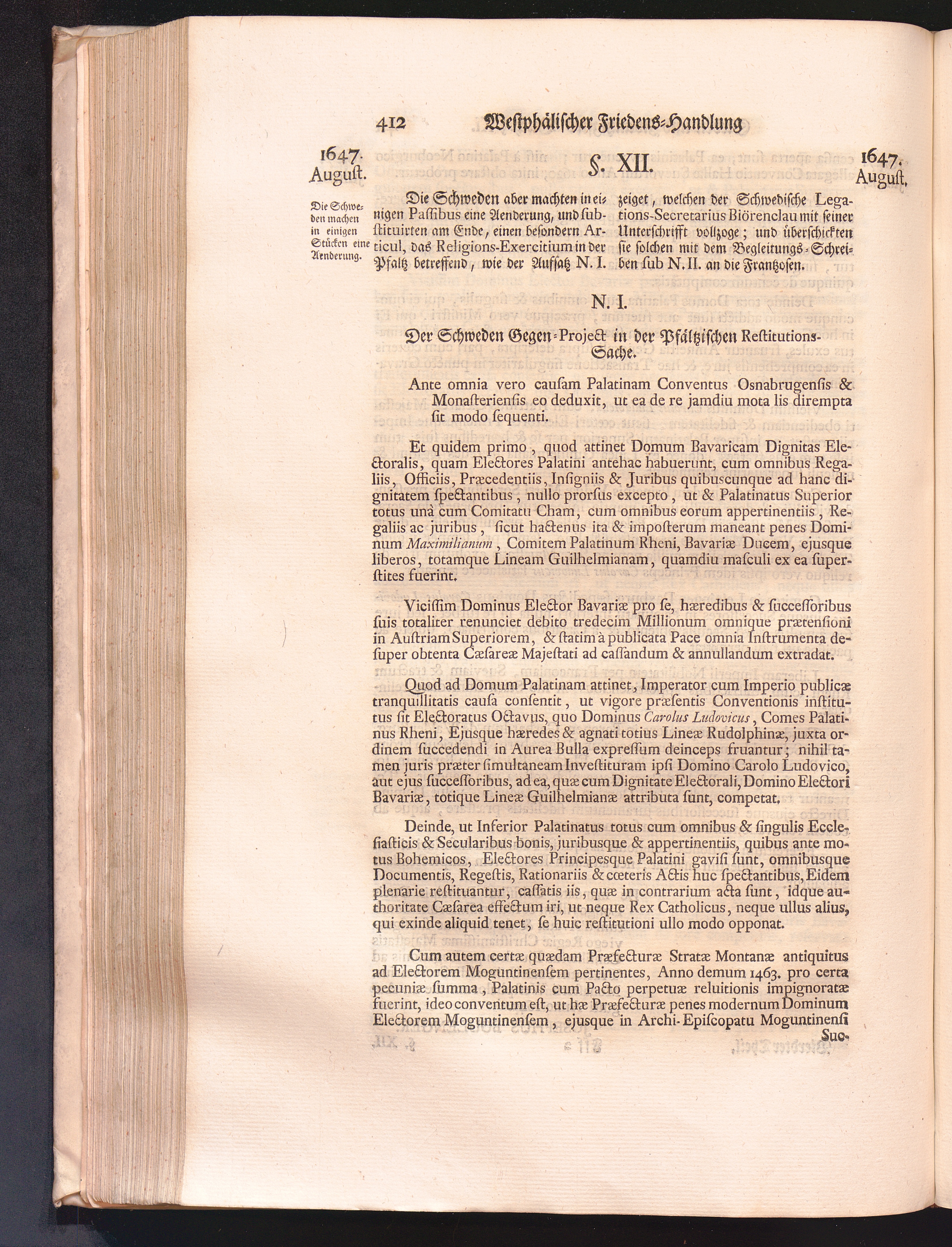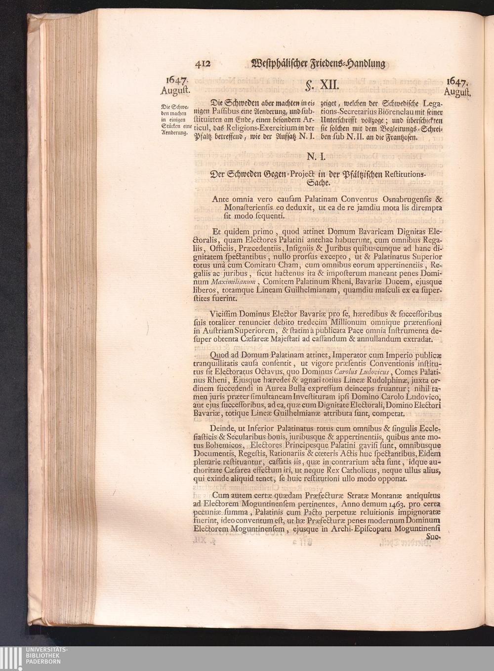 Vierdter Theil (1735) Worinnen enthalten, was vom Anfang des Jahrs 1647. biß gegen Ende desselben zwischen Jhro Römisch-Kayserlichen Majestät, dann den Beyden Cronen Franckreich und Schweden, ingleichen des Heiligen Römischen Reichs Chur-Fürsten, Fürsten und Ständen, zu Oßnabrück und Münster gehandelt worden