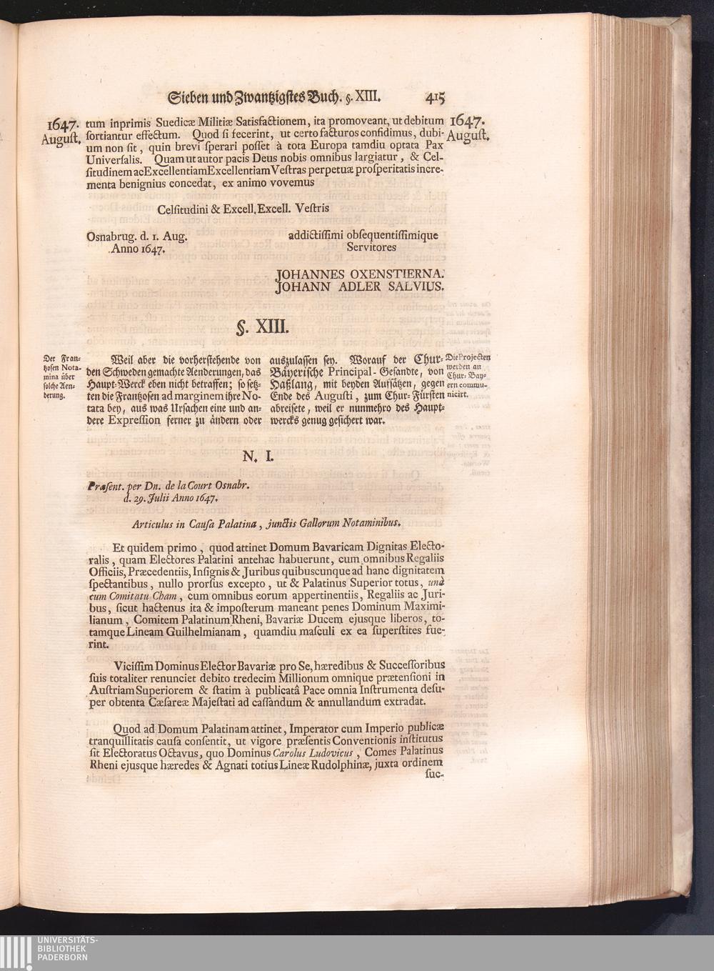 Vierdter Theil (1735) Worinnen enthalten, was vom Anfang des Jahrs 1647. biß gegen Ende desselben zwischen Jhro Römisch-Kayserlichen Majestät, dann den Beyden Cronen Franckreich und Schweden, ingleichen des Heiligen Römischen Reichs Chur-Fürsten, Fürsten und Ständen, zu Oßnabrück und Münster gehandelt worden