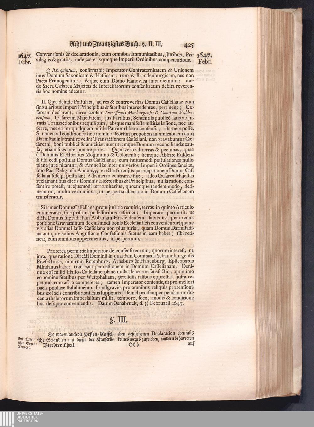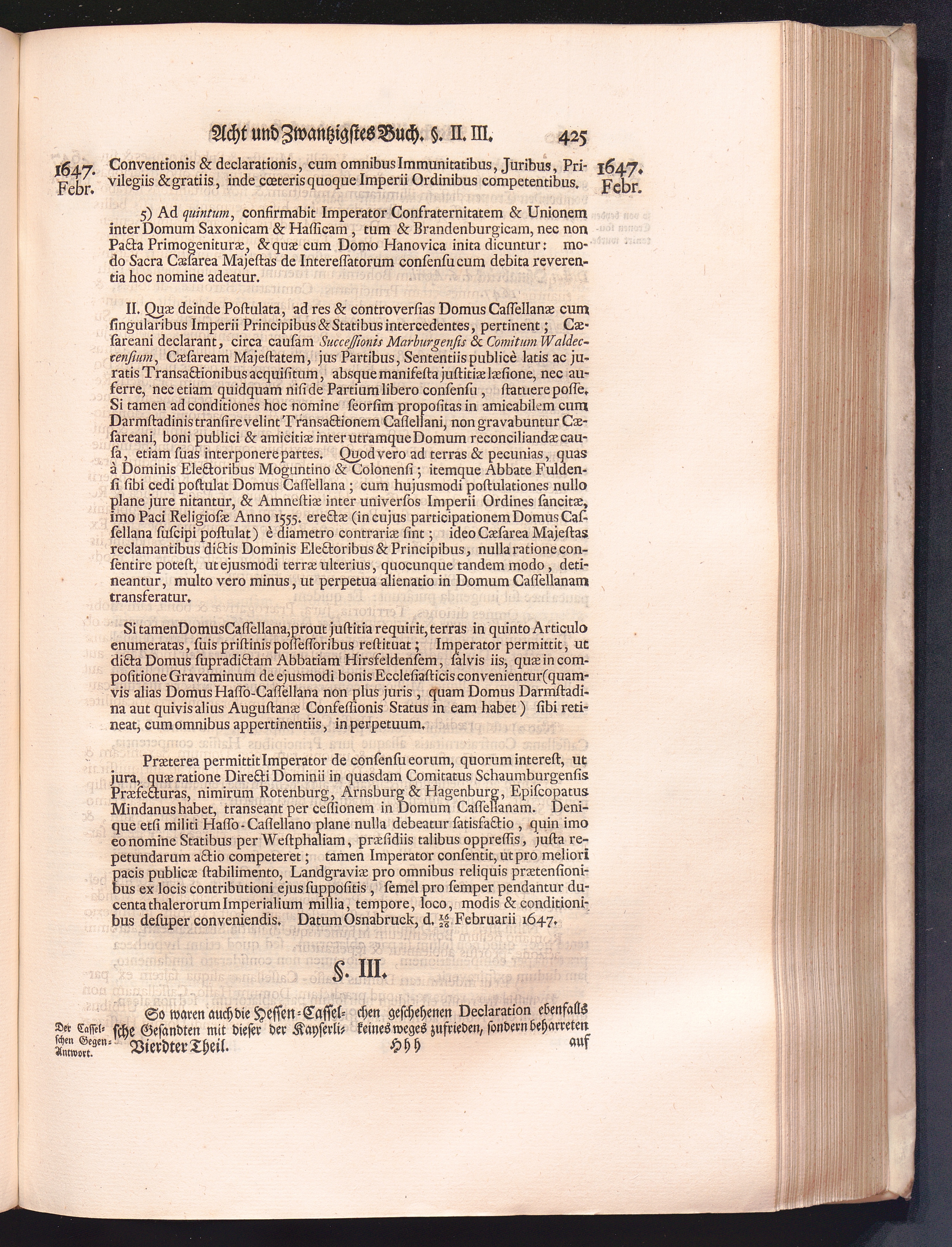 Vierdter Theil (1735) Worinnen enthalten, was vom Anfang des Jahrs 1647. biß gegen Ende desselben zwischen Jhro Römisch-Kayserlichen Majestät, dann den Beyden Cronen Franckreich und Schweden, ingleichen des Heiligen Römischen Reichs Chur-Fürsten, Fürsten und Ständen, zu Oßnabrück und Münster gehandelt worden