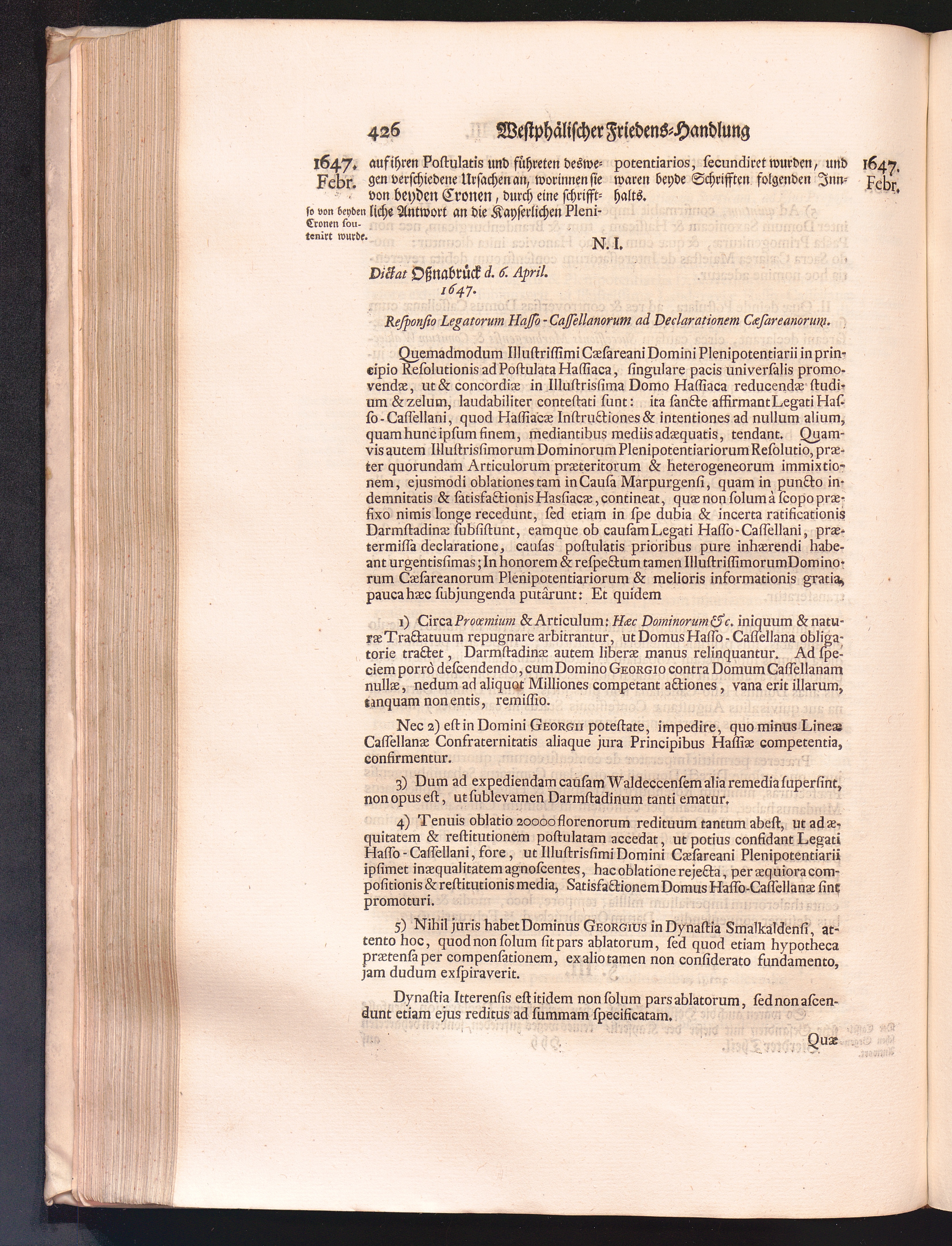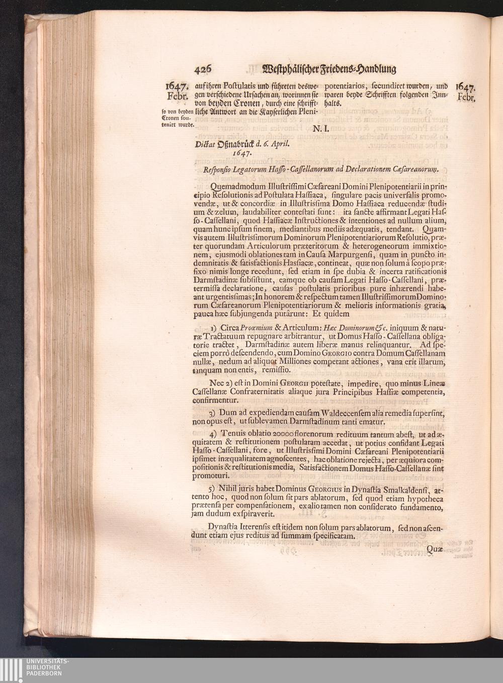 Vierdter Theil (1735) Worinnen enthalten, was vom Anfang des Jahrs 1647. biß gegen Ende desselben zwischen Jhro Römisch-Kayserlichen Majestät, dann den Beyden Cronen Franckreich und Schweden, ingleichen des Heiligen Römischen Reichs Chur-Fürsten, Fürsten und Ständen, zu Oßnabrück und Münster gehandelt worden