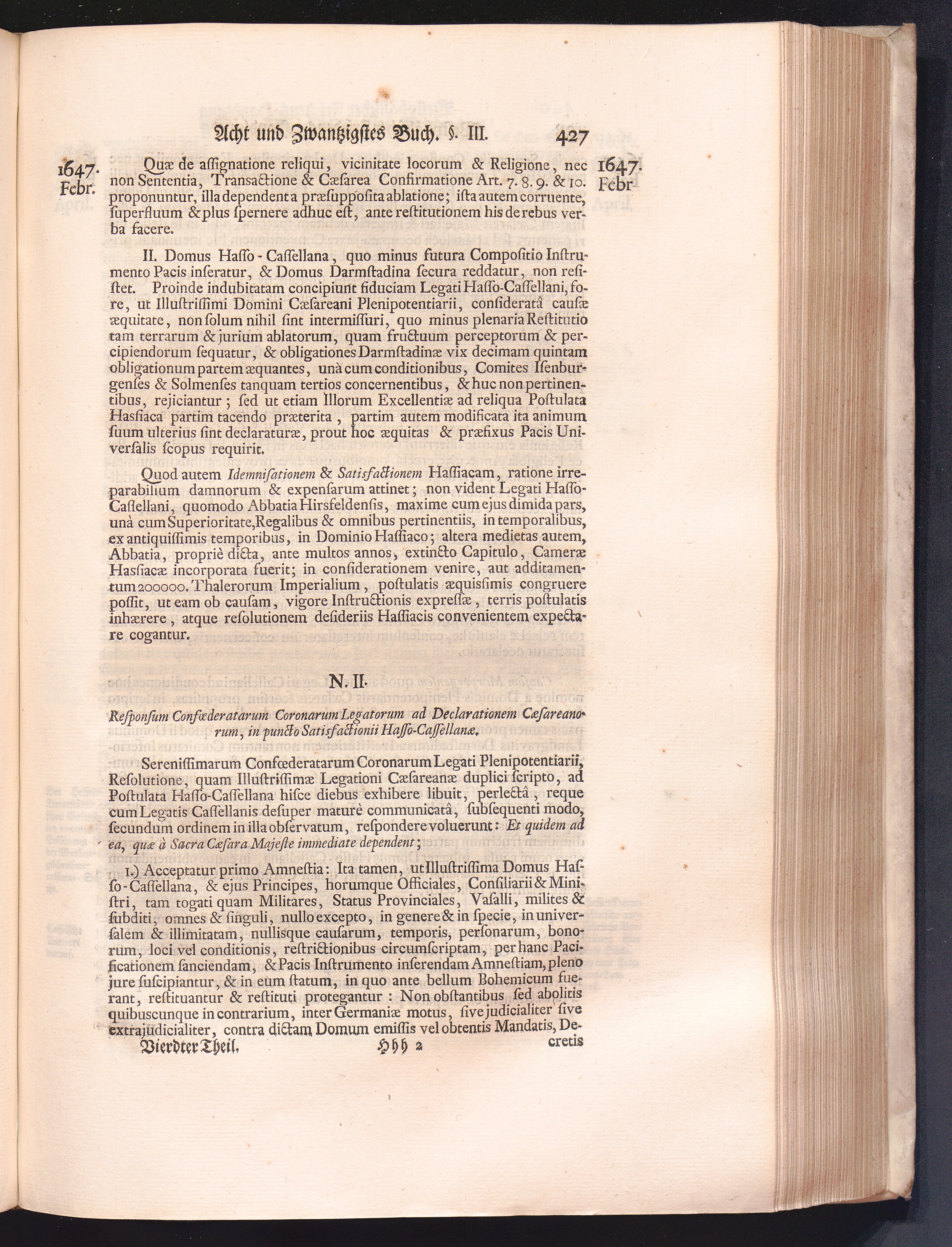 Vierdter Theil (1735) Worinnen enthalten, was vom Anfang des Jahrs 1647. biß gegen Ende desselben zwischen Jhro Römisch-Kayserlichen Majestät, dann den Beyden Cronen Franckreich und Schweden, ingleichen des Heiligen Römischen Reichs Chur-Fürsten, Fürsten und Ständen, zu Oßnabrück und Münster gehandelt worden