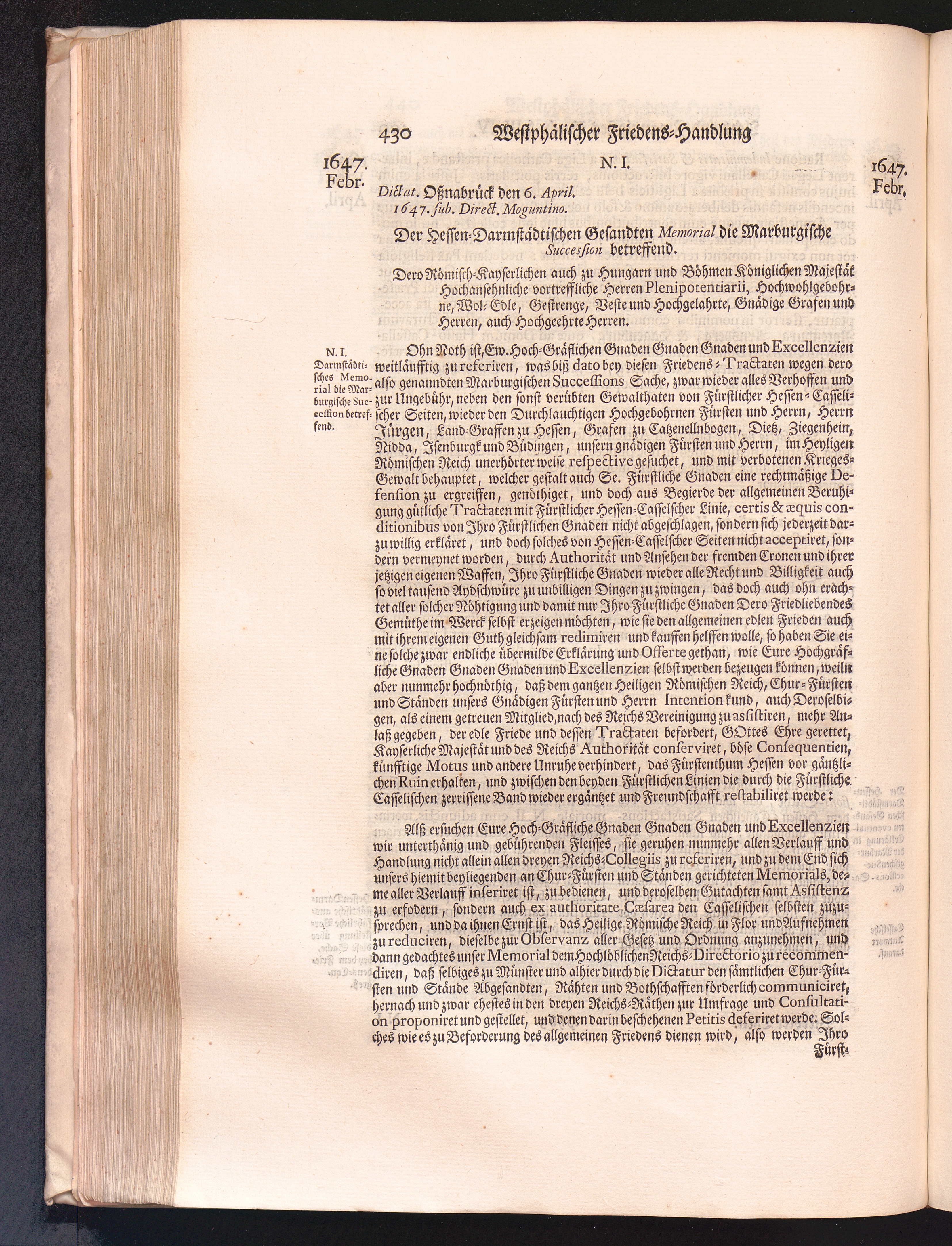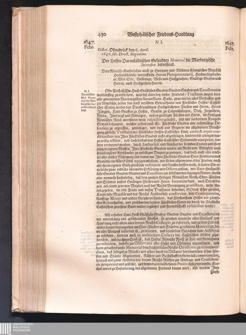 Vierdter Theil (1735) Worinnen enthalten, was vom Anfang des Jahrs 1647. biß gegen Ende desselben zwischen Jhro Römisch-Kayserlichen Majestät, dann den Beyden Cronen Franckreich und Schweden, ingleichen des Heiligen Römischen Reichs Chur-Fürsten, Fürsten und Ständen, zu Oßnabrück und Münster gehandelt worden