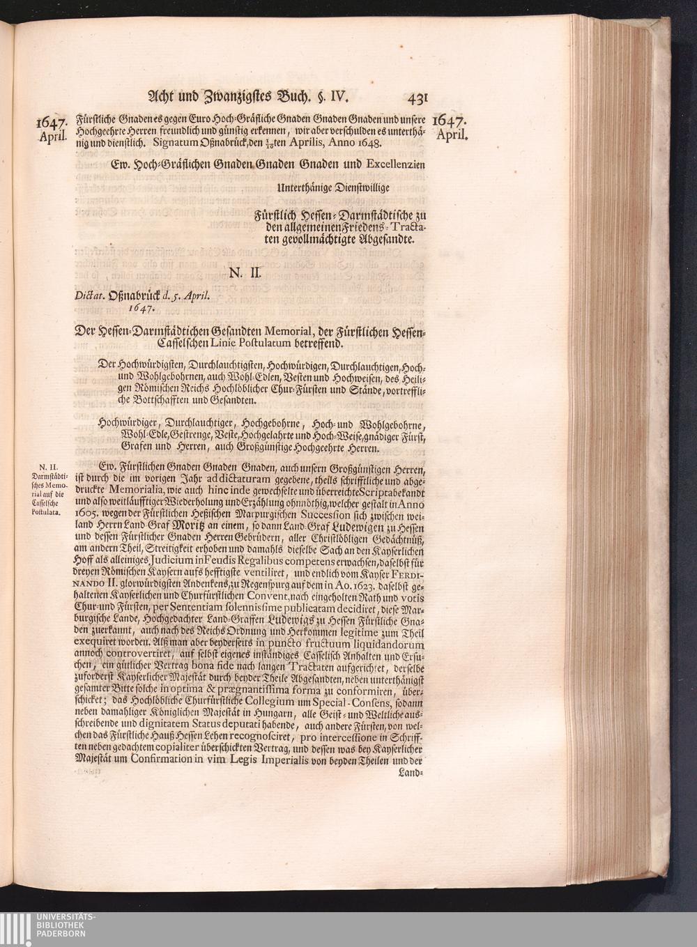 Vierdter Theil (1735) Worinnen enthalten, was vom Anfang des Jahrs 1647. biß gegen Ende desselben zwischen Jhro Römisch-Kayserlichen Majestät, dann den Beyden Cronen Franckreich und Schweden, ingleichen des Heiligen Römischen Reichs Chur-Fürsten, Fürsten und Ständen, zu Oßnabrück und Münster gehandelt worden