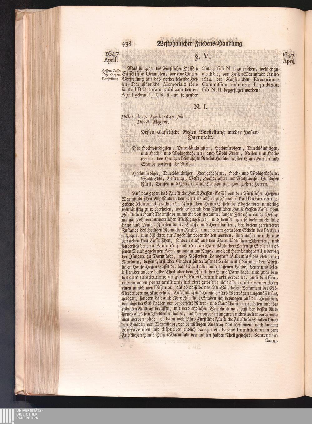 Vierdter Theil (1735) Worinnen enthalten, was vom Anfang des Jahrs 1647. biß gegen Ende desselben zwischen Jhro Römisch-Kayserlichen Majestät, dann den Beyden Cronen Franckreich und Schweden, ingleichen des Heiligen Römischen Reichs Chur-Fürsten, Fürsten und Ständen, zu Oßnabrück und Münster gehandelt worden