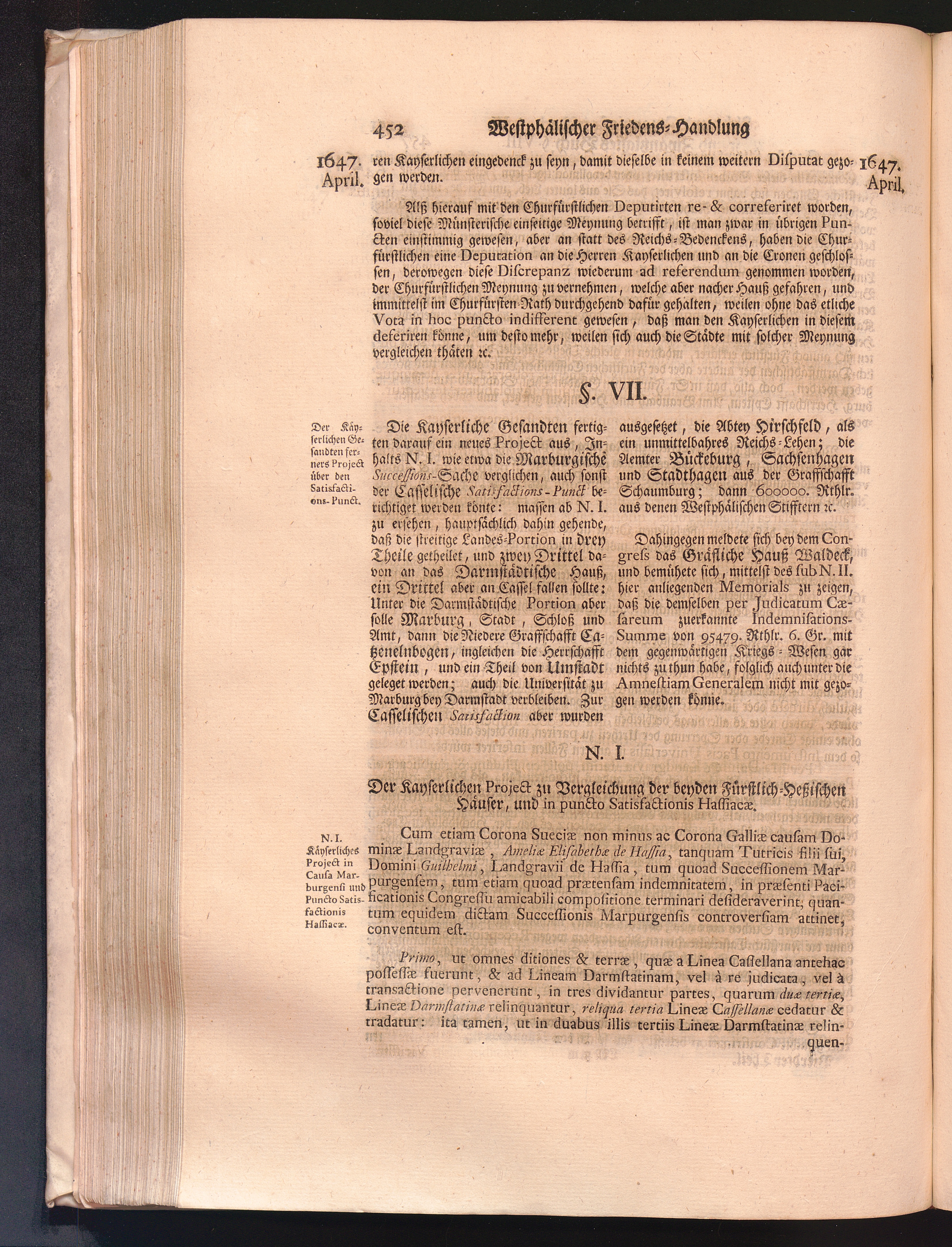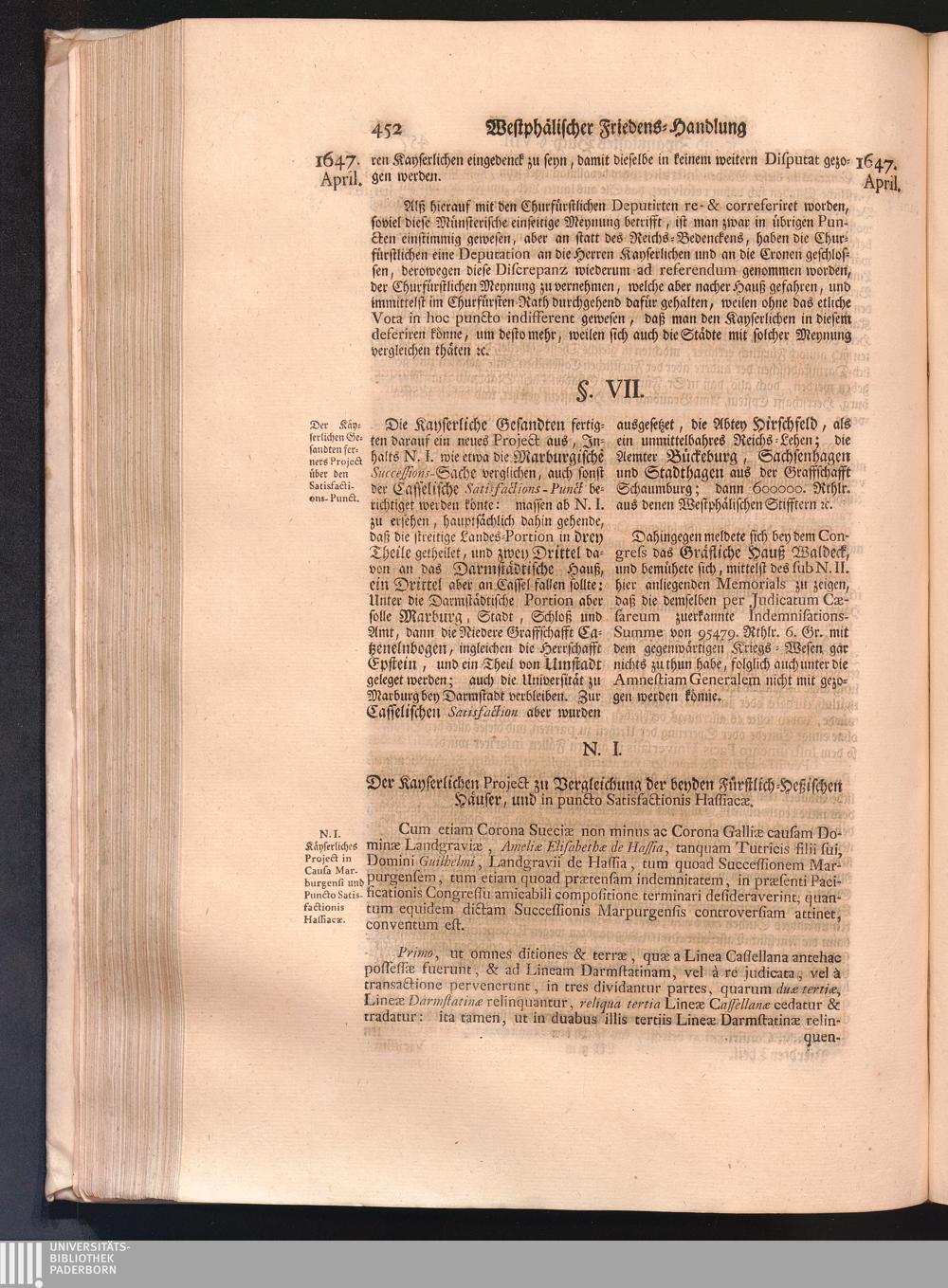 Vierdter Theil (1735) Worinnen enthalten, was vom Anfang des Jahrs 1647. biß gegen Ende desselben zwischen Jhro Römisch-Kayserlichen Majestät, dann den Beyden Cronen Franckreich und Schweden, ingleichen des Heiligen Römischen Reichs Chur-Fürsten, Fürsten und Ständen, zu Oßnabrück und Münster gehandelt worden