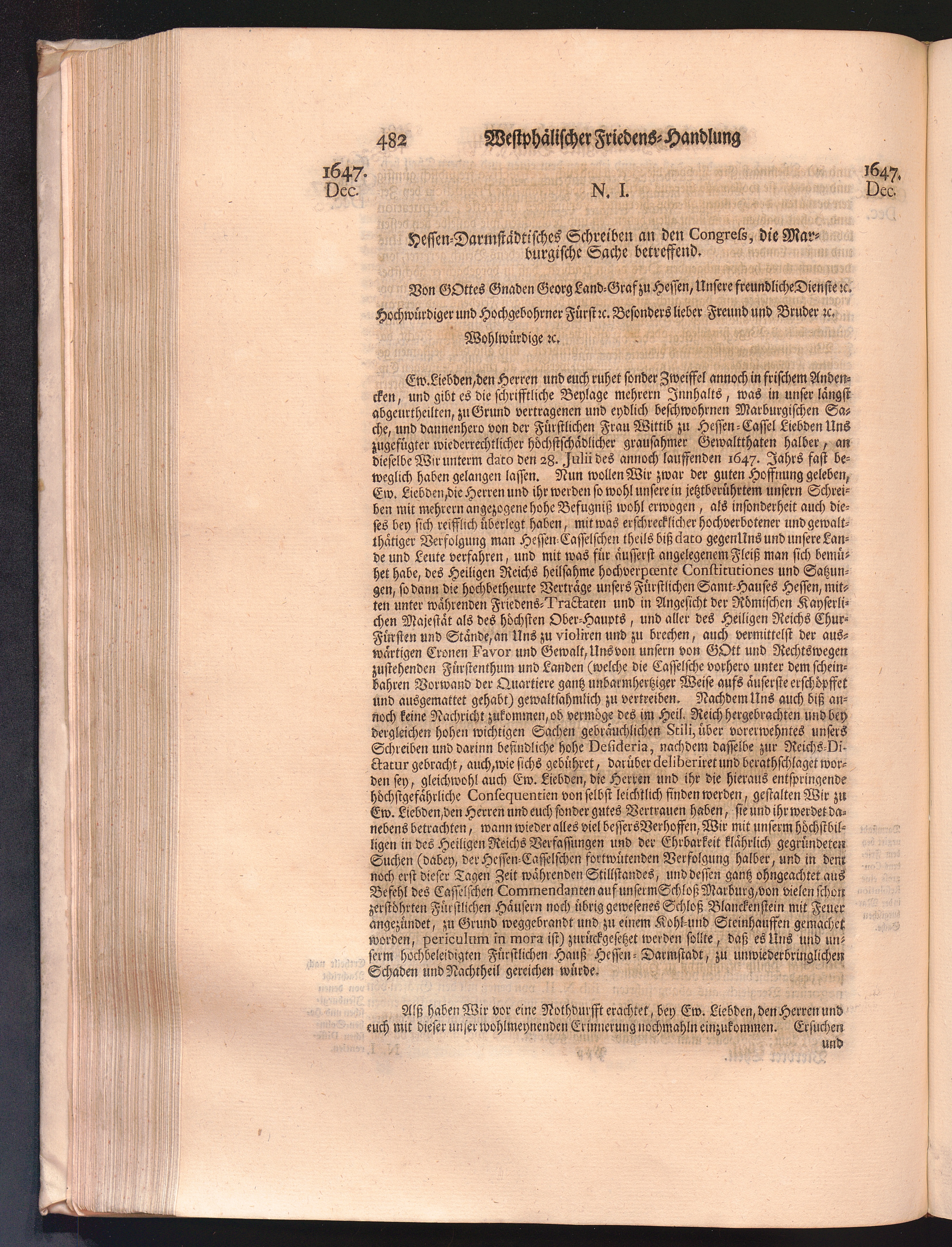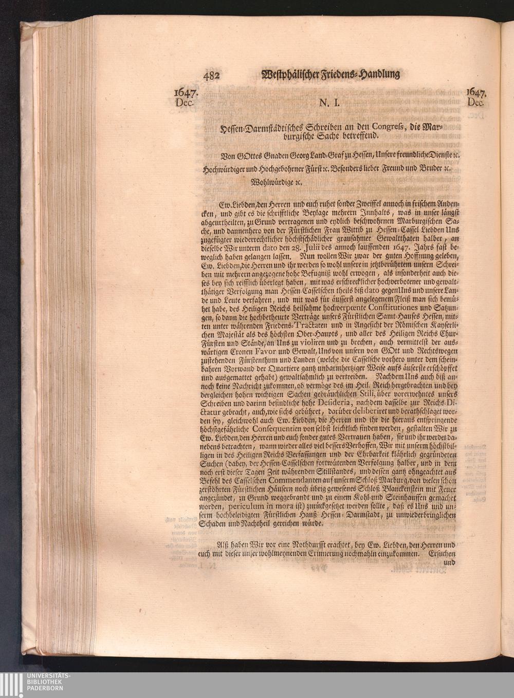 Vierdter Theil (1735) Worinnen enthalten, was vom Anfang des Jahrs 1647. biß gegen Ende desselben zwischen Jhro Römisch-Kayserlichen Majestät, dann den Beyden Cronen Franckreich und Schweden, ingleichen des Heiligen Römischen Reichs Chur-Fürsten, Fürsten und Ständen, zu Oßnabrück und Münster gehandelt worden
