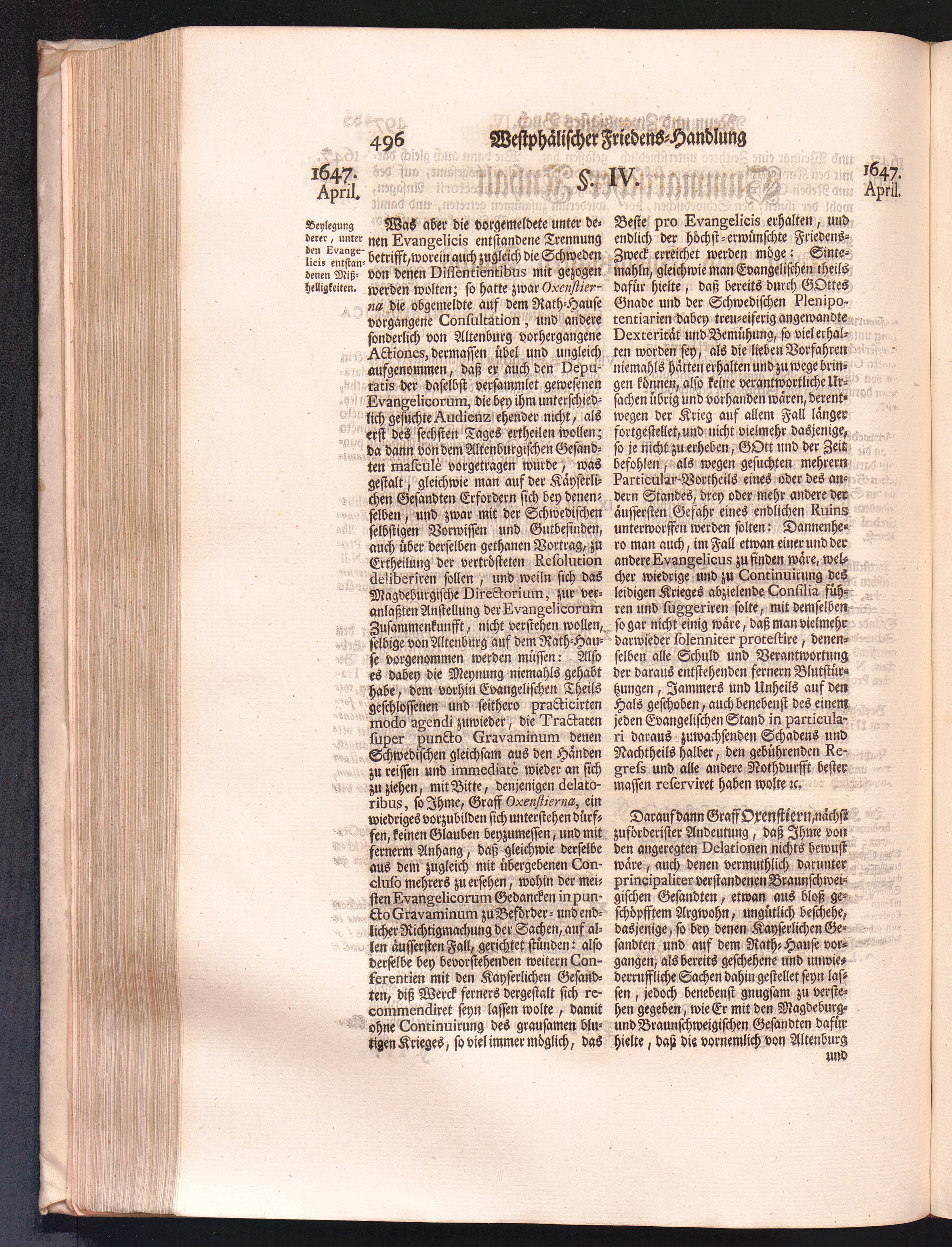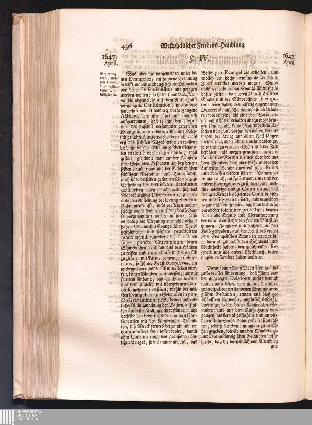Vierdter Theil (1735) Worinnen enthalten, was vom Anfang des Jahrs 1647. biß gegen Ende desselben zwischen Jhro Römisch-Kayserlichen Majestät, dann den Beyden Cronen Franckreich und Schweden, ingleichen des Heiligen Römischen Reichs Chur-Fürsten, Fürsten und Ständen, zu Oßnabrück und Münster gehandelt worden