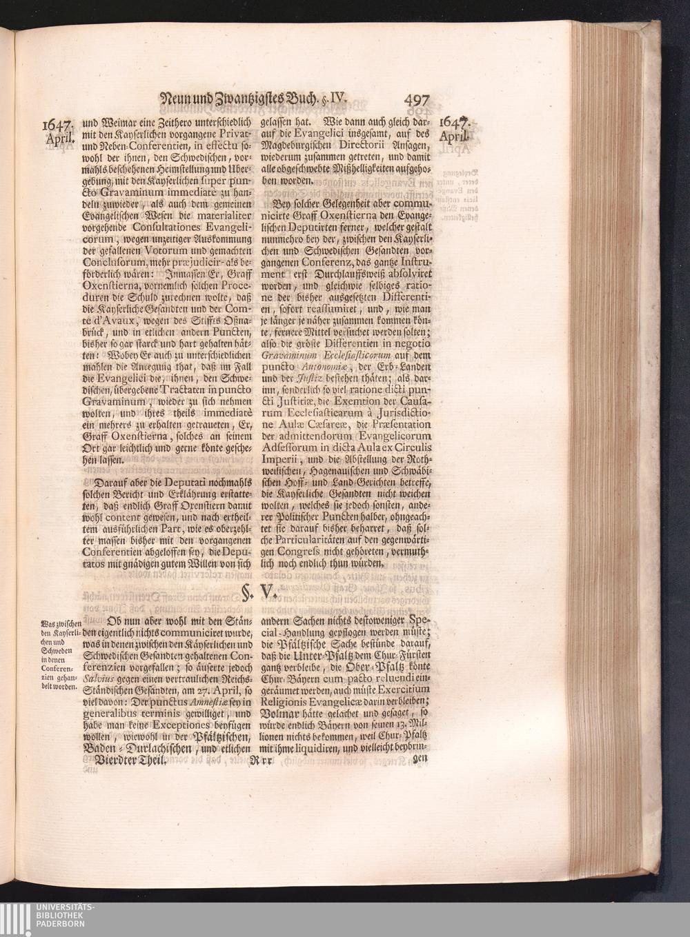 Vierdter Theil (1735) Worinnen enthalten, was vom Anfang des Jahrs 1647. biß gegen Ende desselben zwischen Jhro Römisch-Kayserlichen Majestät, dann den Beyden Cronen Franckreich und Schweden, ingleichen des Heiligen Römischen Reichs Chur-Fürsten, Fürsten und Ständen, zu Oßnabrück und Münster gehandelt worden