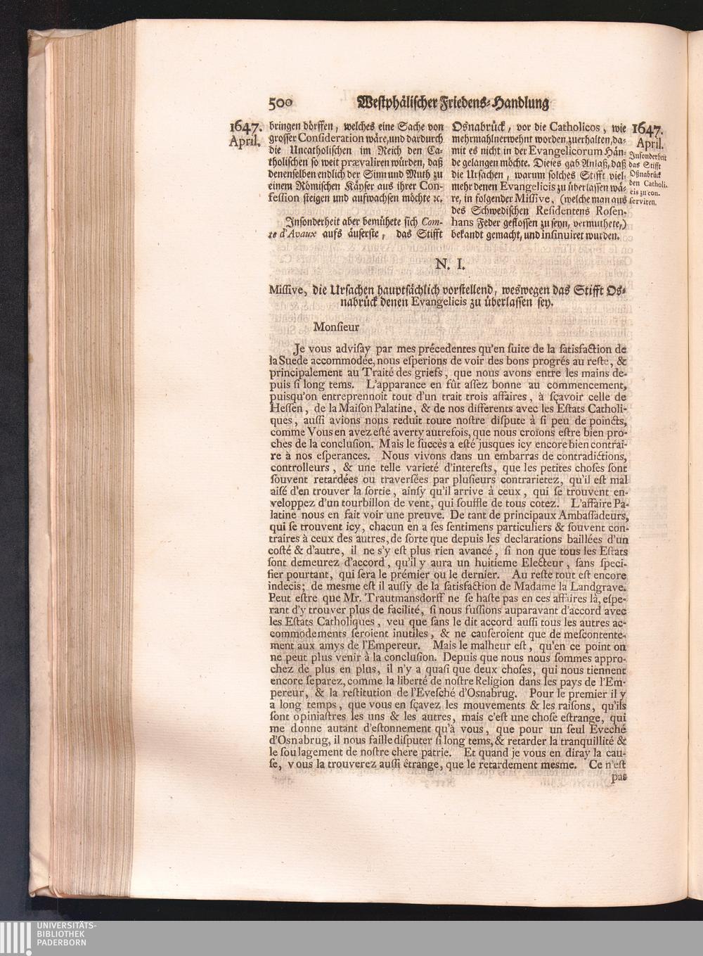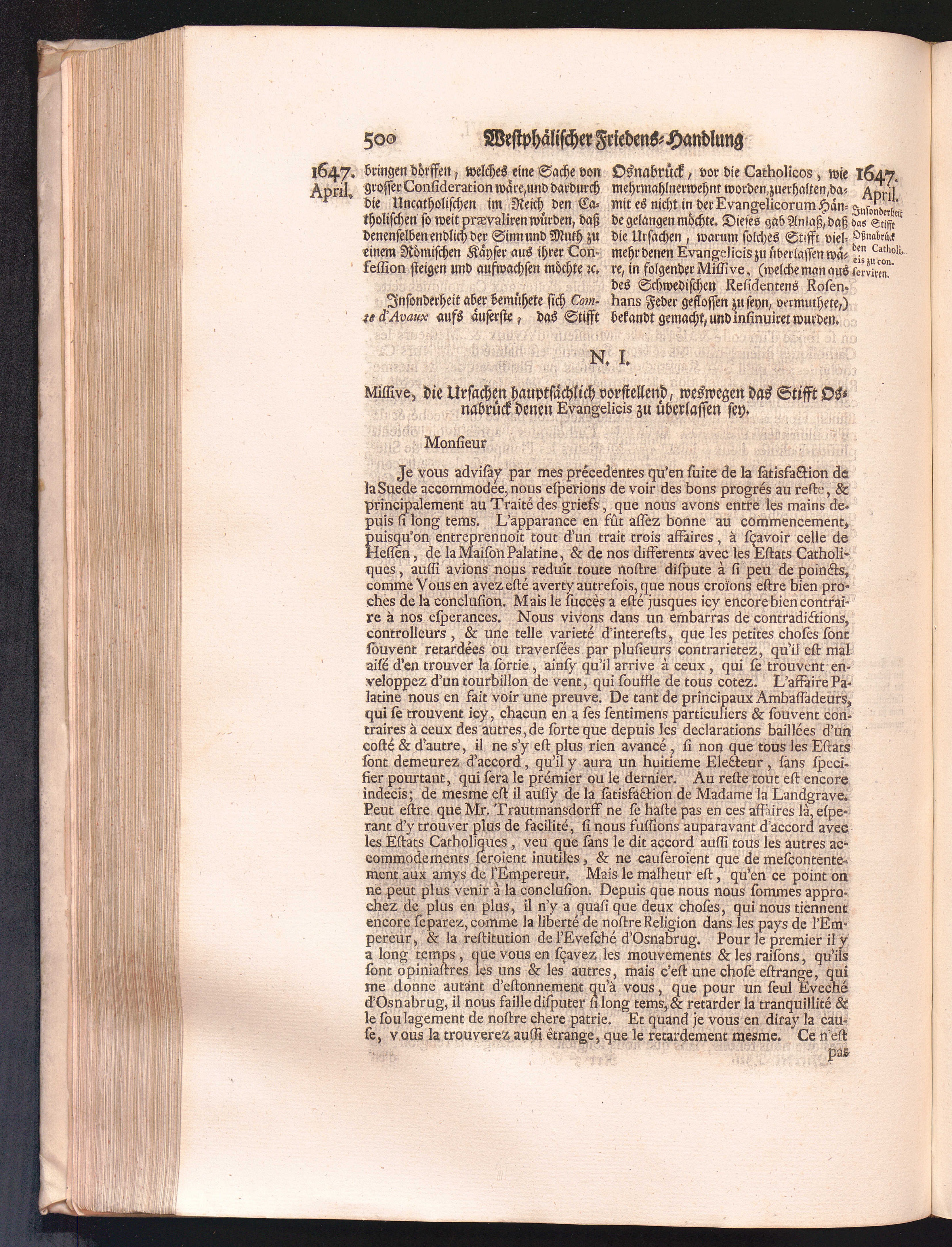 Vierdter Theil (1735) Worinnen enthalten, was vom Anfang des Jahrs 1647. biß gegen Ende desselben zwischen Jhro Römisch-Kayserlichen Majestät, dann den Beyden Cronen Franckreich und Schweden, ingleichen des Heiligen Römischen Reichs Chur-Fürsten, Fürsten und Ständen, zu Oßnabrück und Münster gehandelt worden