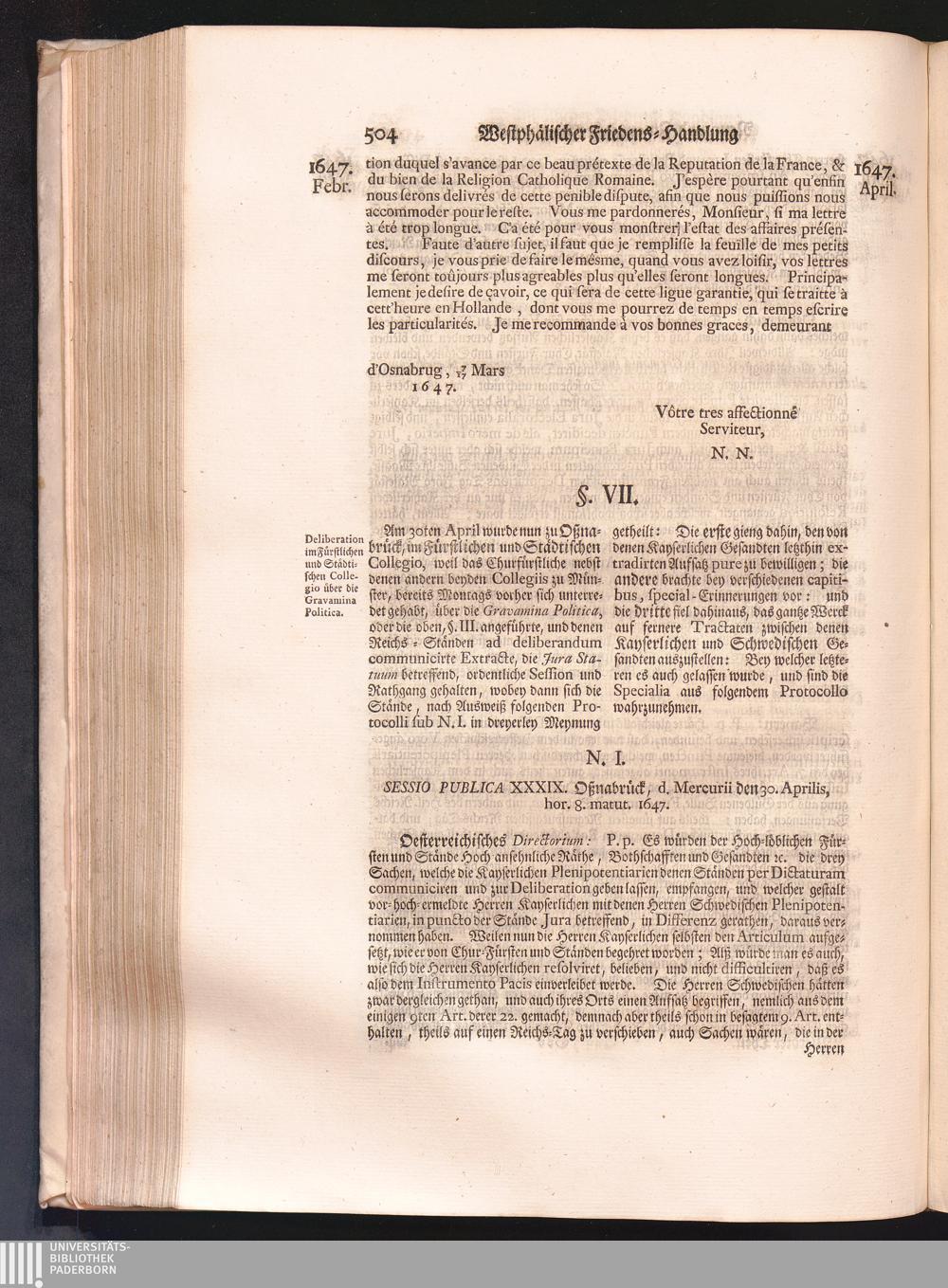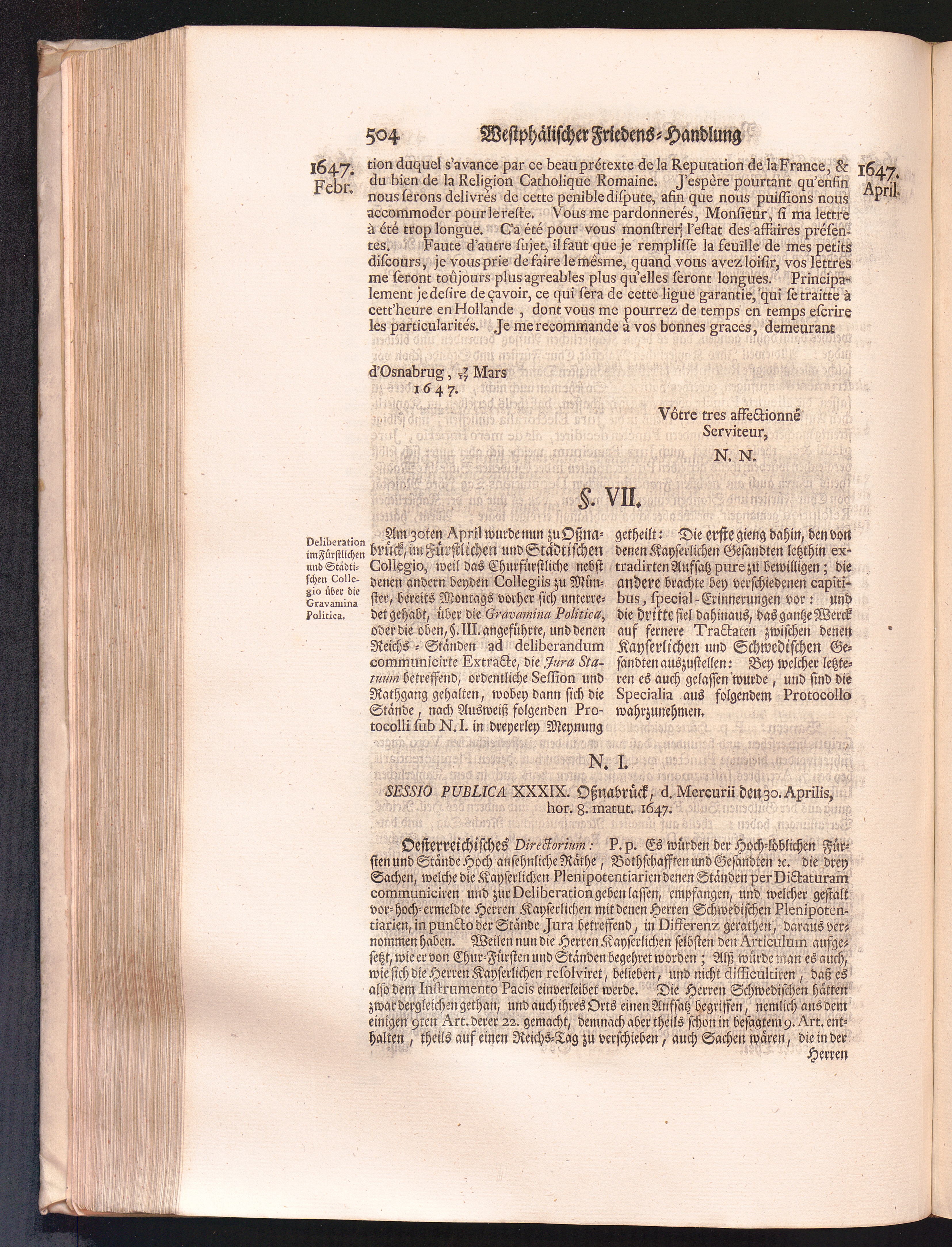 Vierdter Theil (1735) Worinnen enthalten, was vom Anfang des Jahrs 1647. biß gegen Ende desselben zwischen Jhro Römisch-Kayserlichen Majestät, dann den Beyden Cronen Franckreich und Schweden, ingleichen des Heiligen Römischen Reichs Chur-Fürsten, Fürsten und Ständen, zu Oßnabrück und Münster gehandelt worden