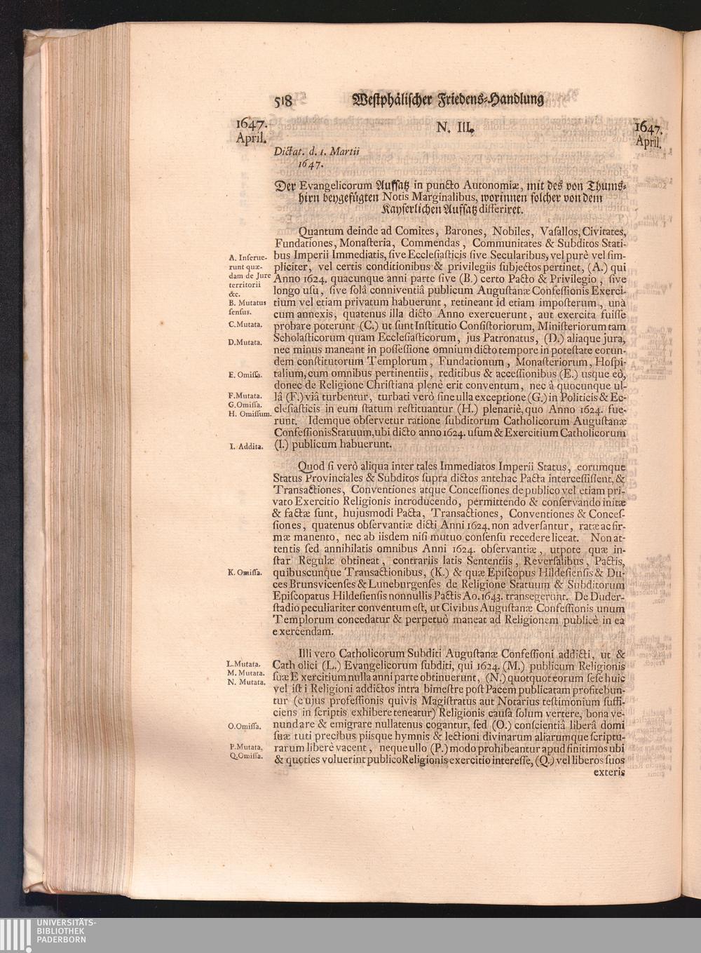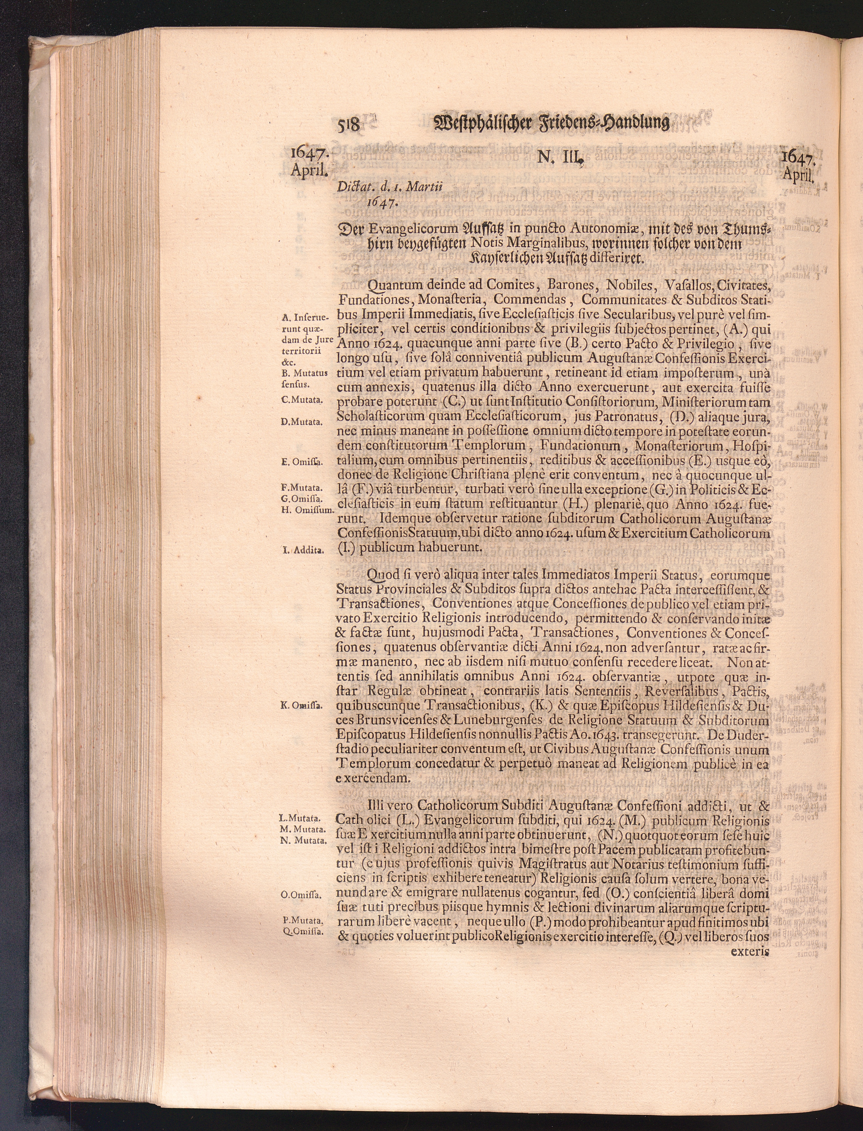 Vierdter Theil (1735) Worinnen enthalten, was vom Anfang des Jahrs 1647. biß gegen Ende desselben zwischen Jhro Römisch-Kayserlichen Majestät, dann den Beyden Cronen Franckreich und Schweden, ingleichen des Heiligen Römischen Reichs Chur-Fürsten, Fürsten und Ständen, zu Oßnabrück und Münster gehandelt worden