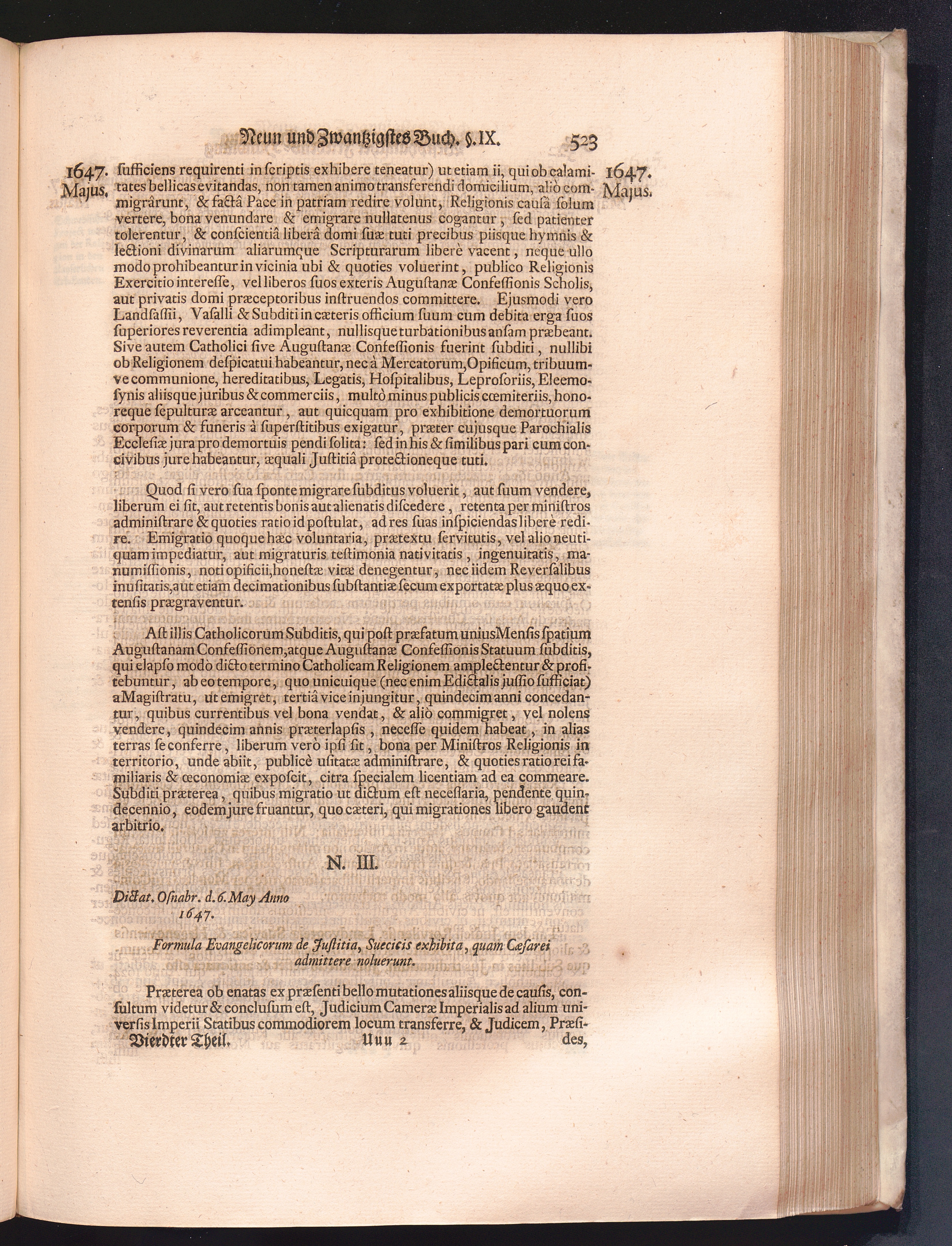 Vierdter Theil (1735) Worinnen enthalten, was vom Anfang des Jahrs 1647. biß gegen Ende desselben zwischen Jhro Römisch-Kayserlichen Majestät, dann den Beyden Cronen Franckreich und Schweden, ingleichen des Heiligen Römischen Reichs Chur-Fürsten, Fürsten und Ständen, zu Oßnabrück und Münster gehandelt worden