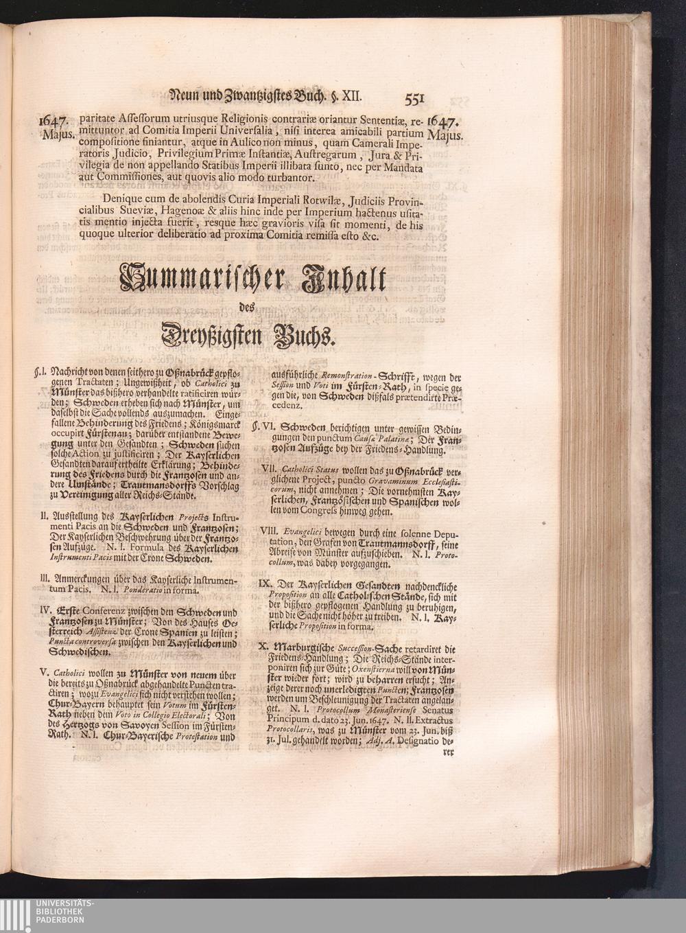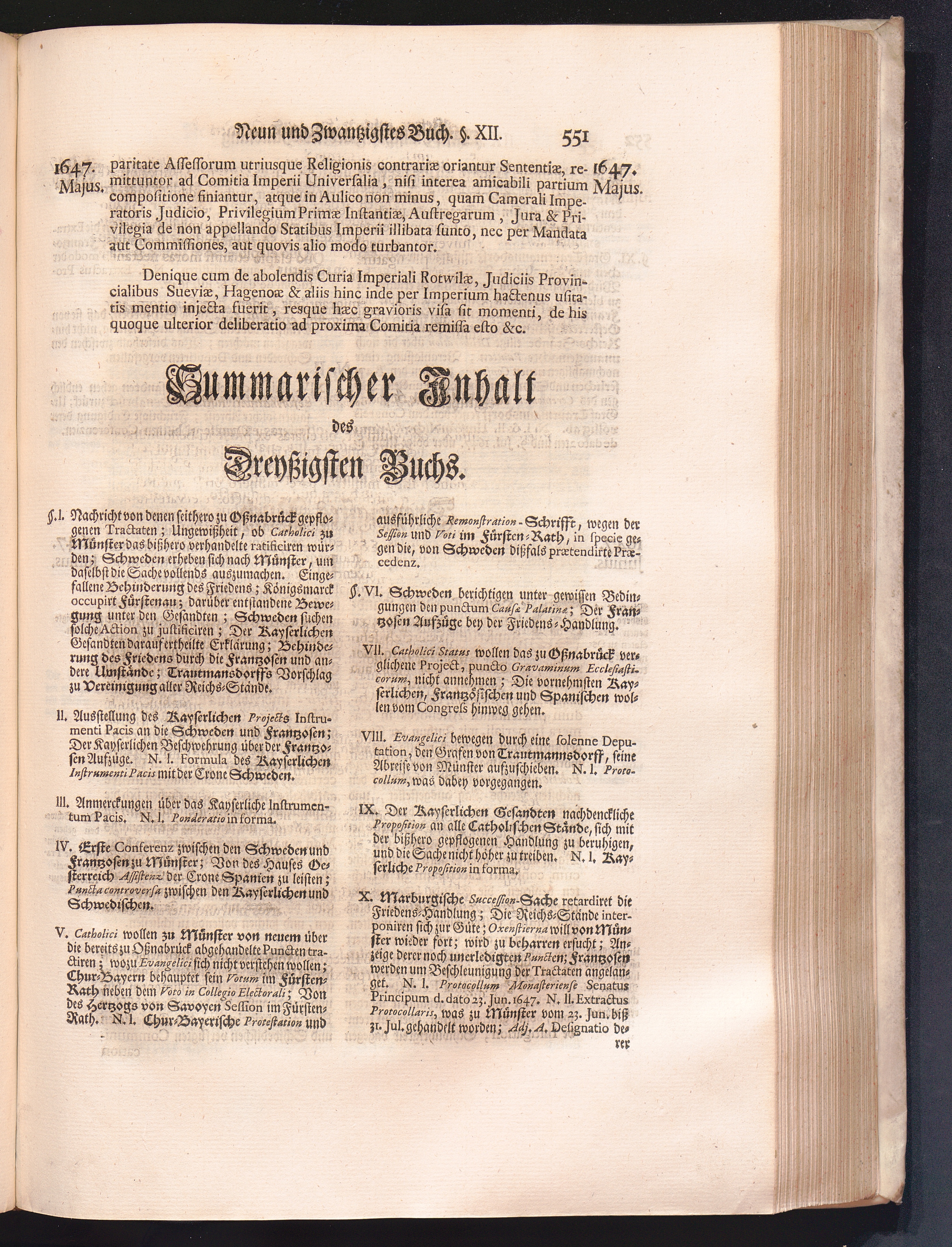 Vierdter Theil (1735) Worinnen enthalten, was vom Anfang des Jahrs 1647. biß gegen Ende desselben zwischen Jhro Römisch-Kayserlichen Majestät, dann den Beyden Cronen Franckreich und Schweden, ingleichen des Heiligen Römischen Reichs Chur-Fürsten, Fürsten und Ständen, zu Oßnabrück und Münster gehandelt worden