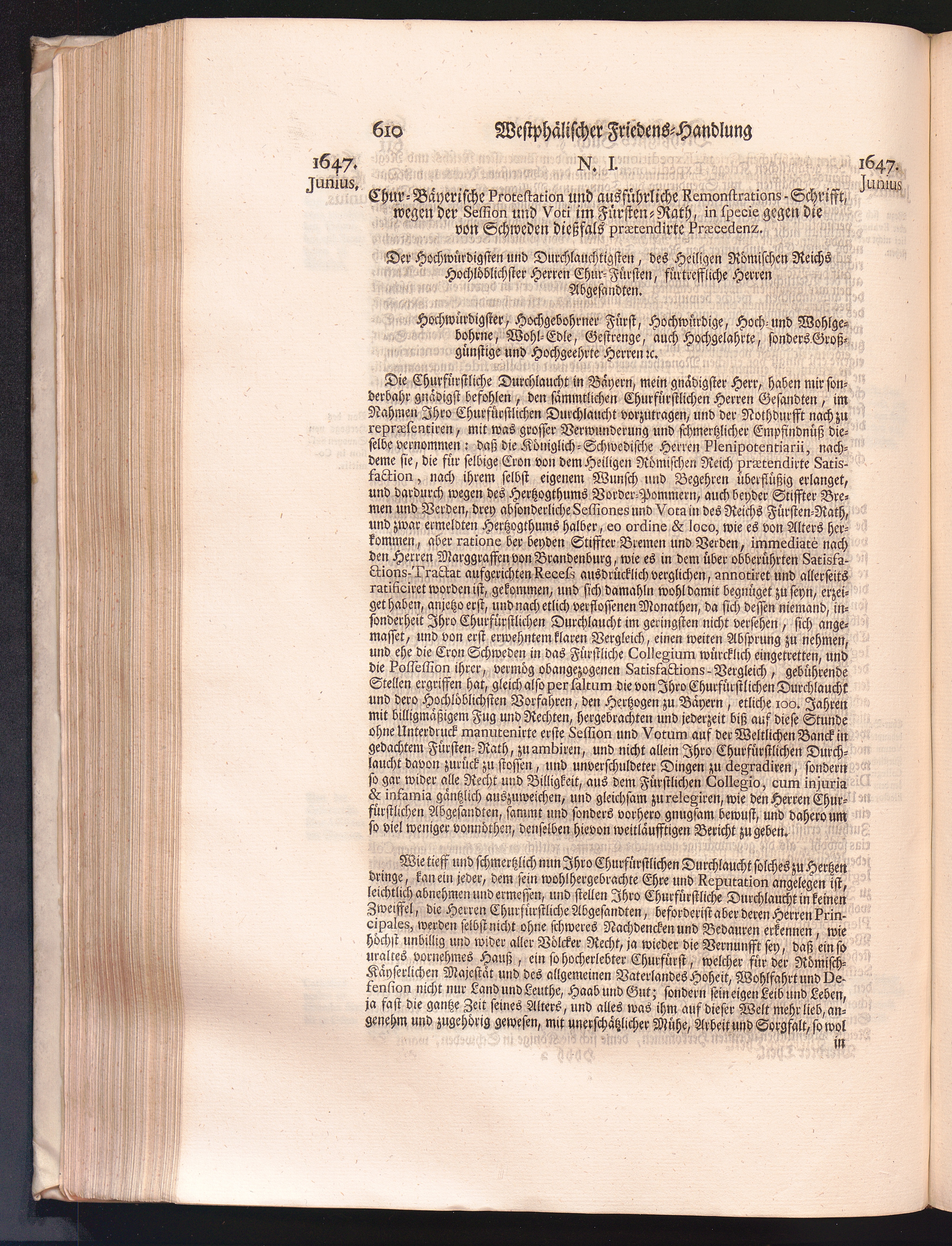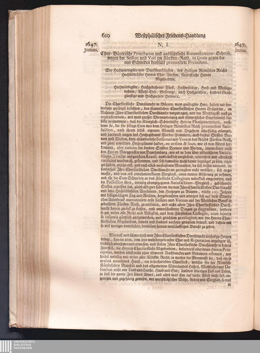 Vierdter Theil (1735) Worinnen enthalten, was vom Anfang des Jahrs 1647. biß gegen Ende desselben zwischen Jhro Römisch-Kayserlichen Majestät, dann den Beyden Cronen Franckreich und Schweden, ingleichen des Heiligen Römischen Reichs Chur-Fürsten, Fürsten und Ständen, zu Oßnabrück und Münster gehandelt worden