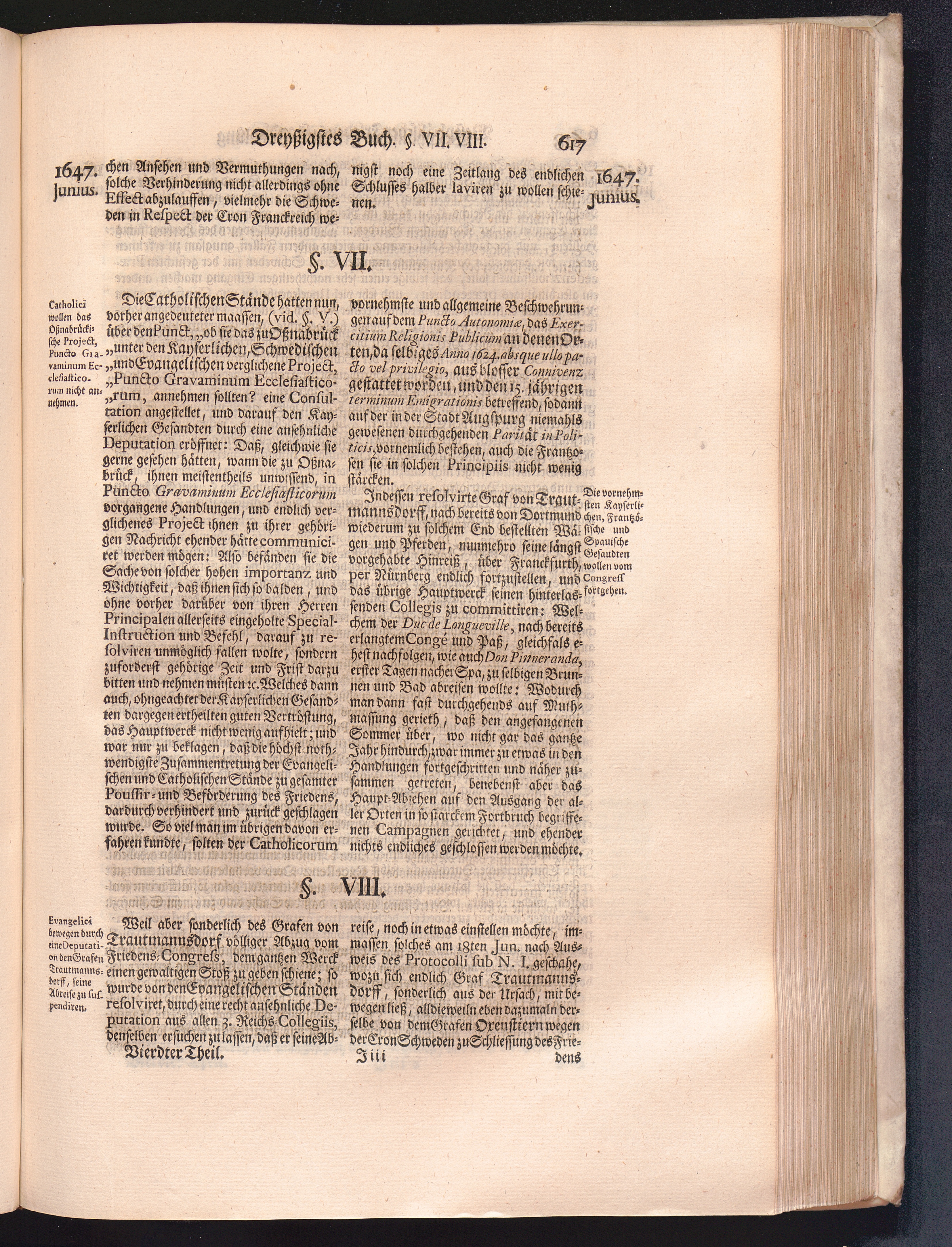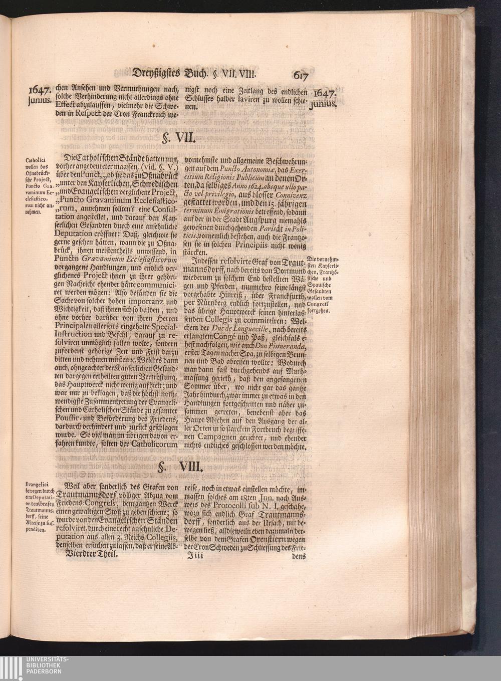 Vierdter Theil (1735) Worinnen enthalten, was vom Anfang des Jahrs 1647. biß gegen Ende desselben zwischen Jhro Römisch-Kayserlichen Majestät, dann den Beyden Cronen Franckreich und Schweden, ingleichen des Heiligen Römischen Reichs Chur-Fürsten, Fürsten und Ständen, zu Oßnabrück und Münster gehandelt worden