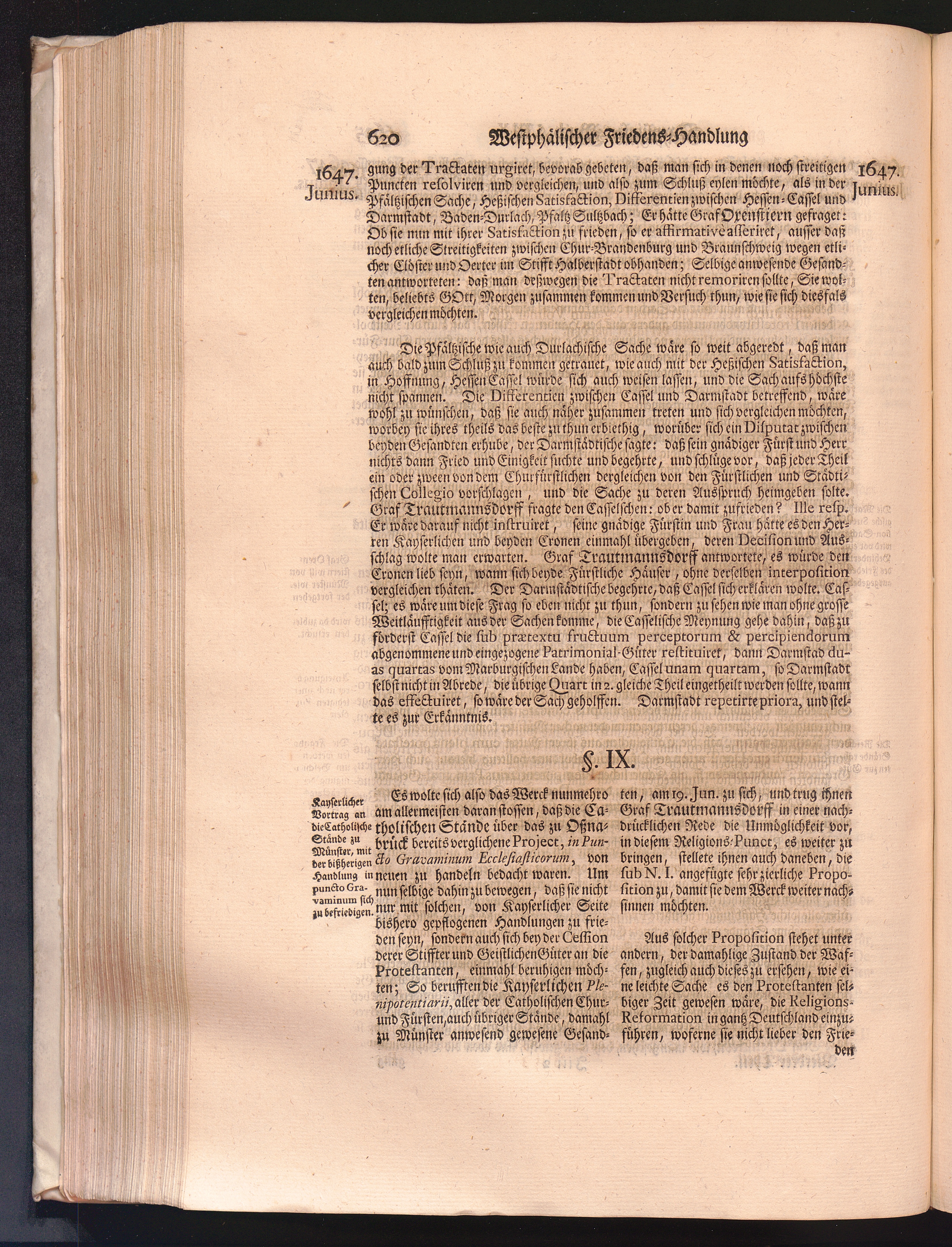 Vierdter Theil (1735) Worinnen enthalten, was vom Anfang des Jahrs 1647. biß gegen Ende desselben zwischen Jhro Römisch-Kayserlichen Majestät, dann den Beyden Cronen Franckreich und Schweden, ingleichen des Heiligen Römischen Reichs Chur-Fürsten, Fürsten und Ständen, zu Oßnabrück und Münster gehandelt worden