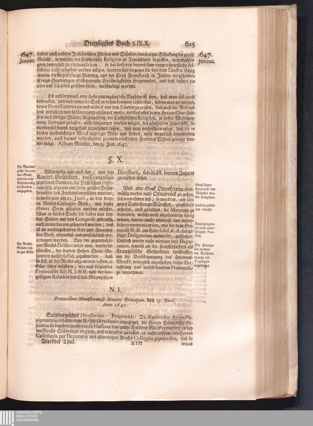 Vierdter Theil (1735) Worinnen enthalten, was vom Anfang des Jahrs 1647. biß gegen Ende desselben zwischen Jhro Römisch-Kayserlichen Majestät, dann den Beyden Cronen Franckreich und Schweden, ingleichen des Heiligen Römischen Reichs Chur-Fürsten, Fürsten und Ständen, zu Oßnabrück und Münster gehandelt worden