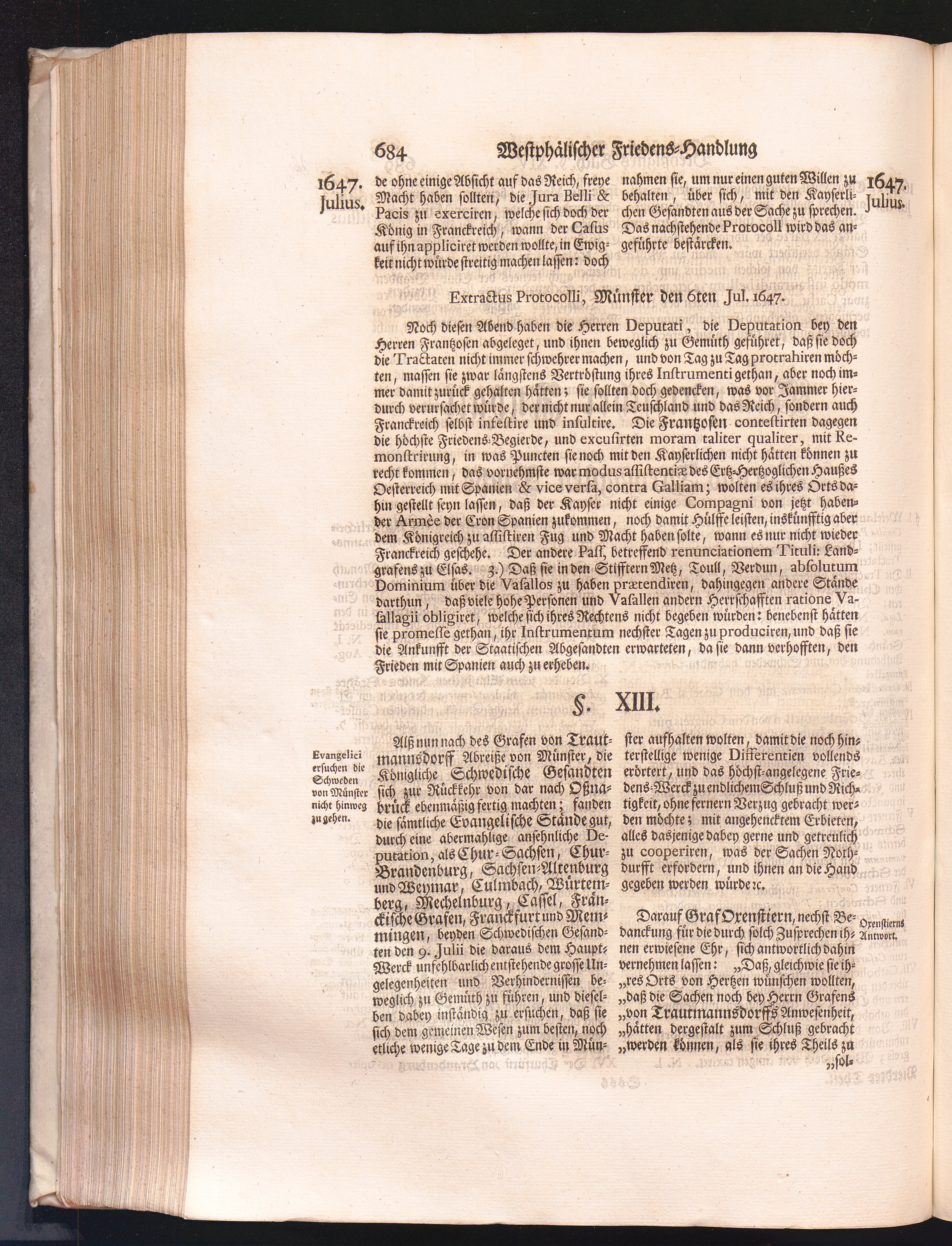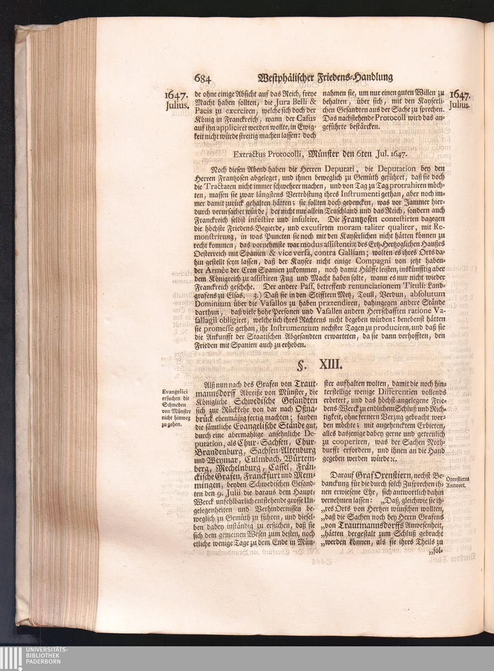 Vierdter Theil (1735) Worinnen enthalten, was vom Anfang des Jahrs 1647. biß gegen Ende desselben zwischen Jhro Römisch-Kayserlichen Majestät, dann den Beyden Cronen Franckreich und Schweden, ingleichen des Heiligen Römischen Reichs Chur-Fürsten, Fürsten und Ständen, zu Oßnabrück und Münster gehandelt worden