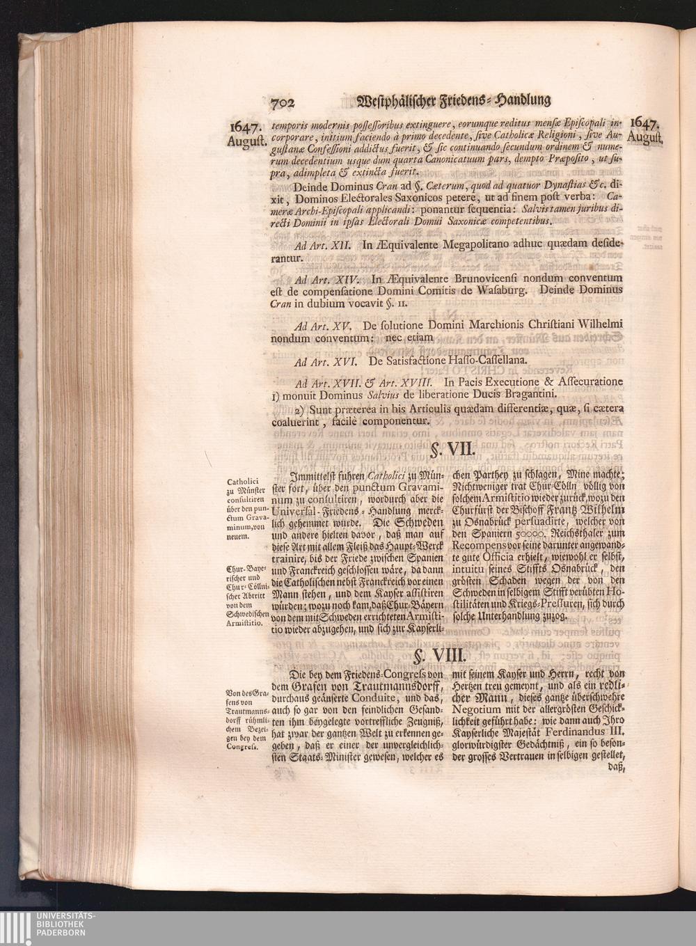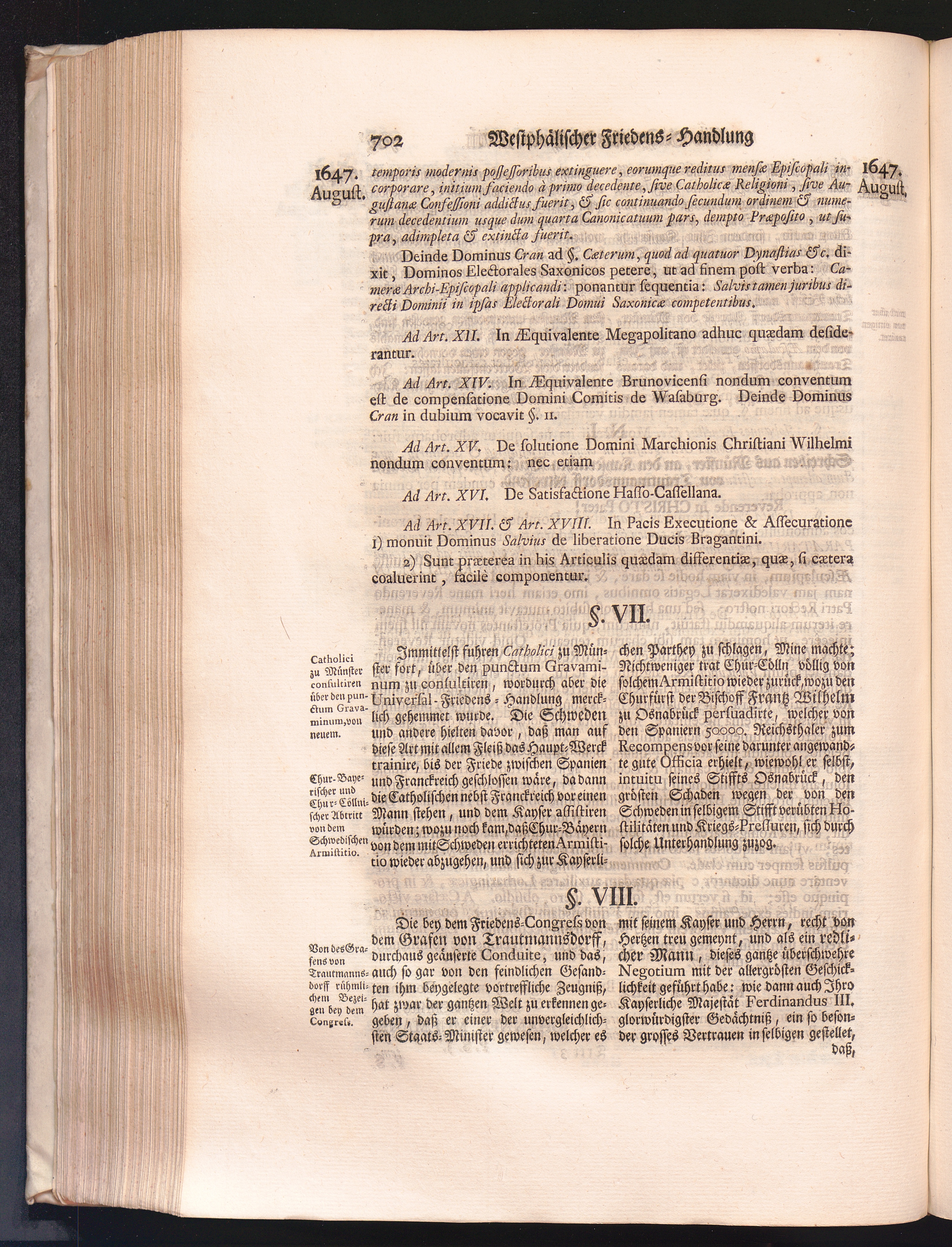 Vierdter Theil (1735) Worinnen enthalten, was vom Anfang des Jahrs 1647. biß gegen Ende desselben zwischen Jhro Römisch-Kayserlichen Majestät, dann den Beyden Cronen Franckreich und Schweden, ingleichen des Heiligen Römischen Reichs Chur-Fürsten, Fürsten und Ständen, zu Oßnabrück und Münster gehandelt worden
