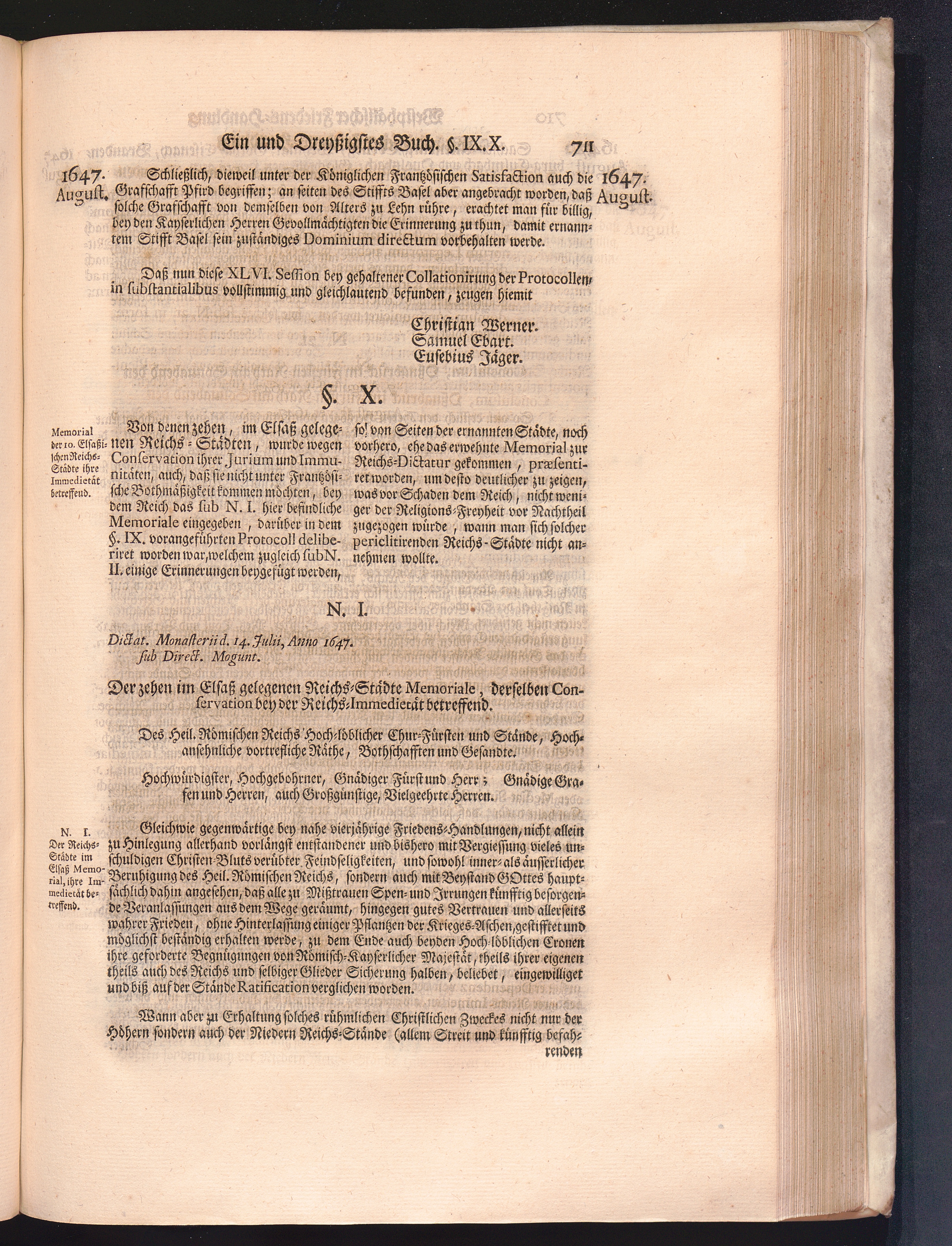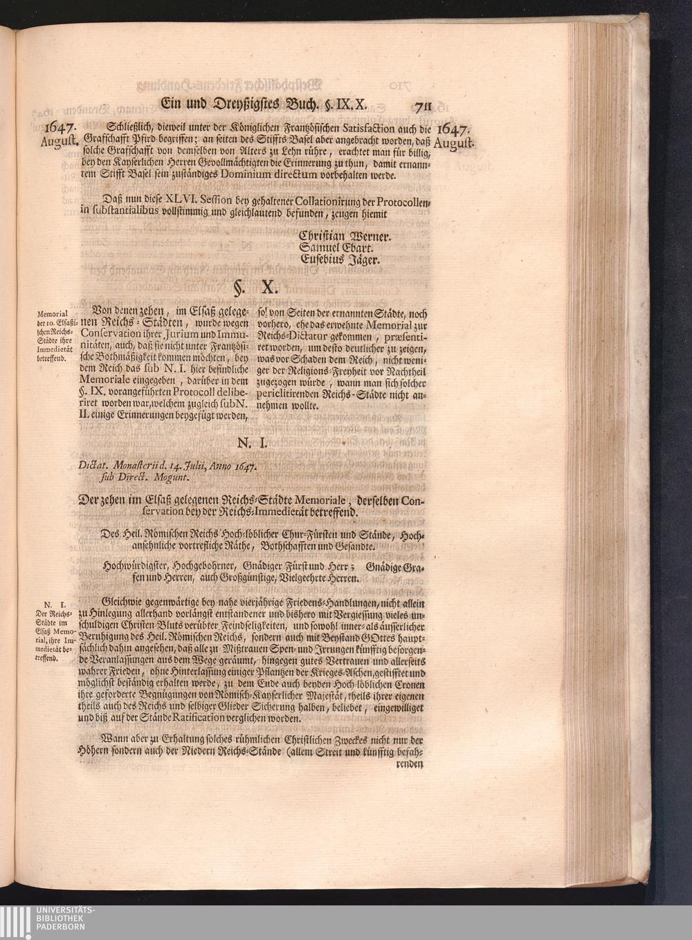 Vierdter Theil (1735) Worinnen enthalten, was vom Anfang des Jahrs 1647. biß gegen Ende desselben zwischen Jhro Römisch-Kayserlichen Majestät, dann den Beyden Cronen Franckreich und Schweden, ingleichen des Heiligen Römischen Reichs Chur-Fürsten, Fürsten und Ständen, zu Oßnabrück und Münster gehandelt worden