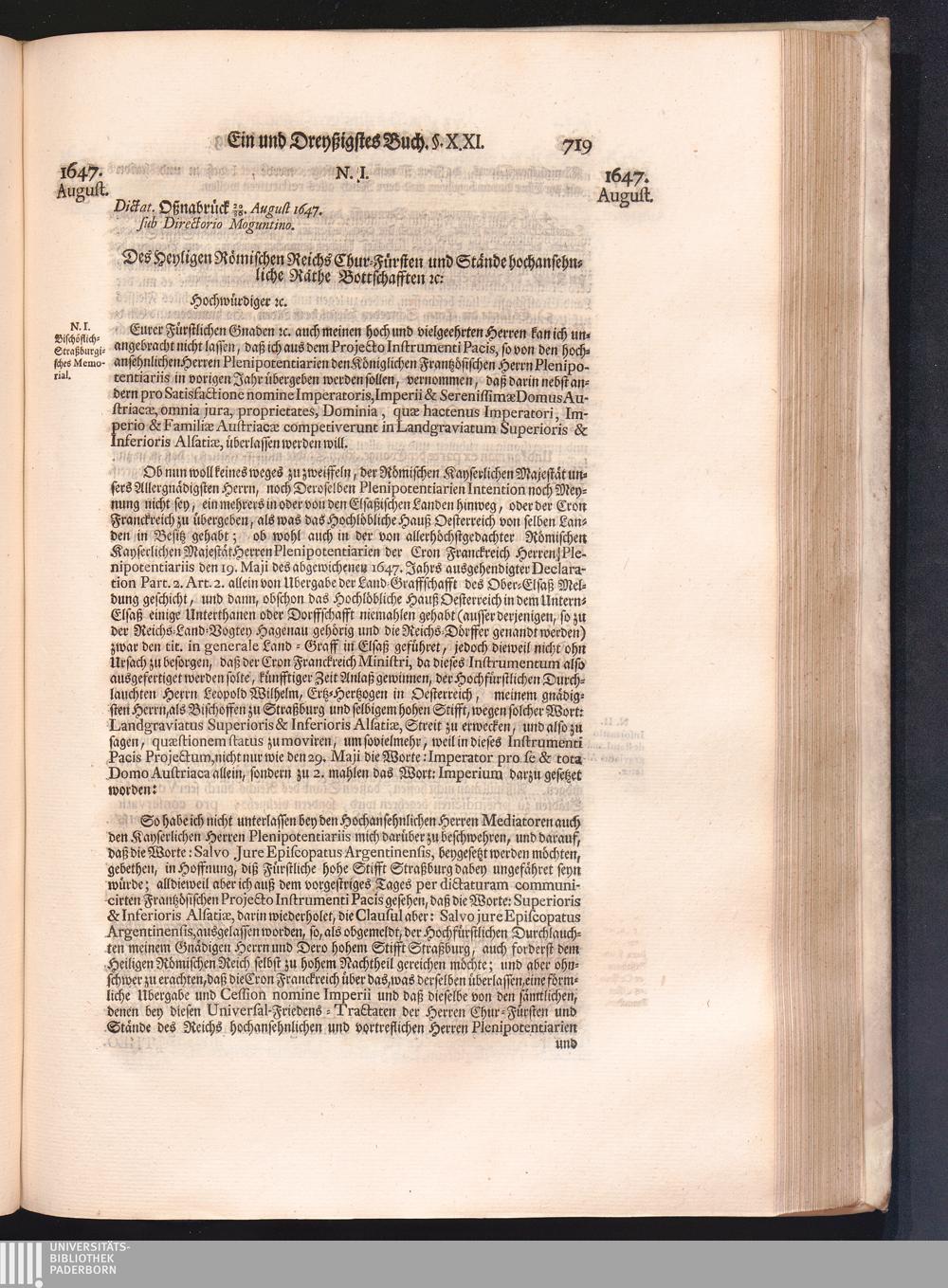 Vierdter Theil (1735) Worinnen enthalten, was vom Anfang des Jahrs 1647. biß gegen Ende desselben zwischen Jhro Römisch-Kayserlichen Majestät, dann den Beyden Cronen Franckreich und Schweden, ingleichen des Heiligen Römischen Reichs Chur-Fürsten, Fürsten und Ständen, zu Oßnabrück und Münster gehandelt worden