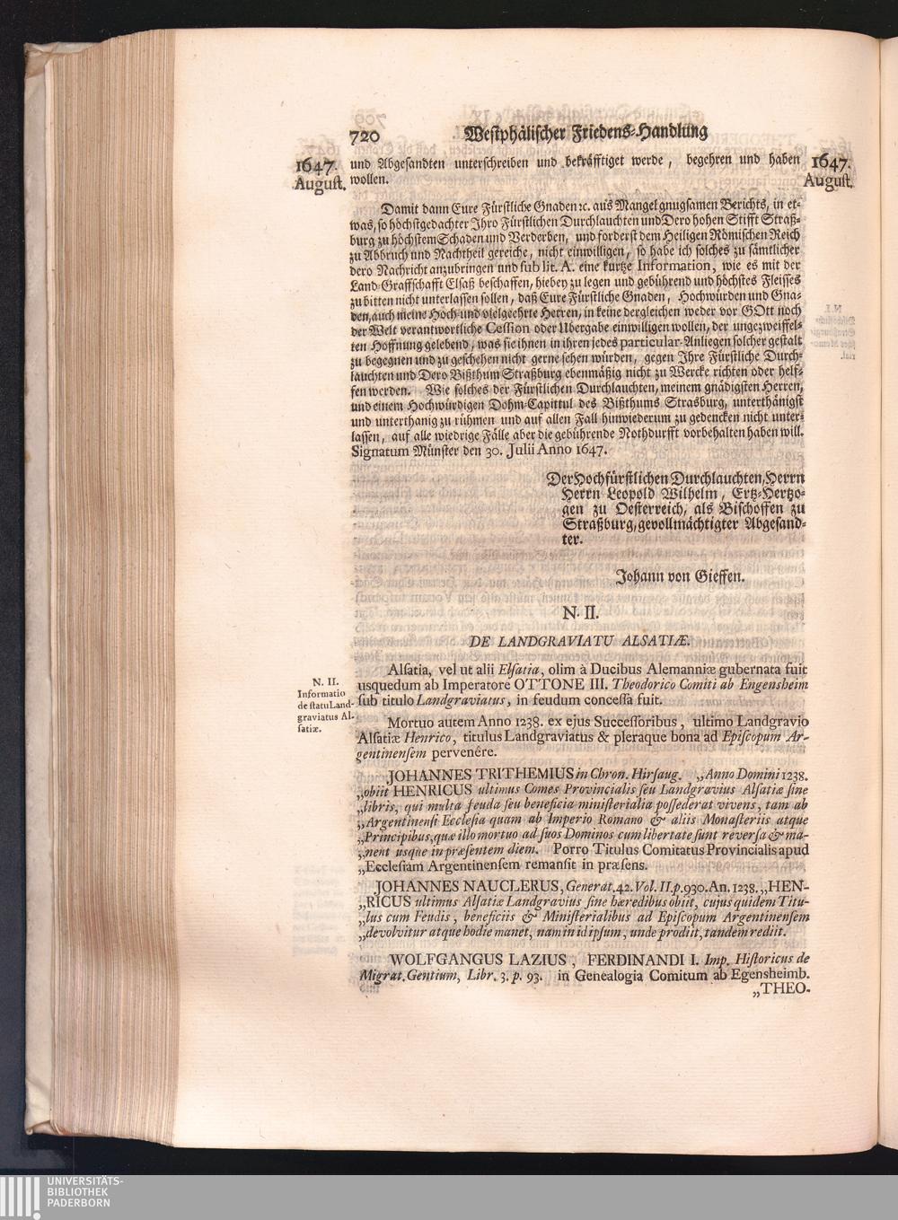 Vierdter Theil (1735) Worinnen enthalten, was vom Anfang des Jahrs 1647. biß gegen Ende desselben zwischen Jhro Römisch-Kayserlichen Majestät, dann den Beyden Cronen Franckreich und Schweden, ingleichen des Heiligen Römischen Reichs Chur-Fürsten, Fürsten und Ständen, zu Oßnabrück und Münster gehandelt worden