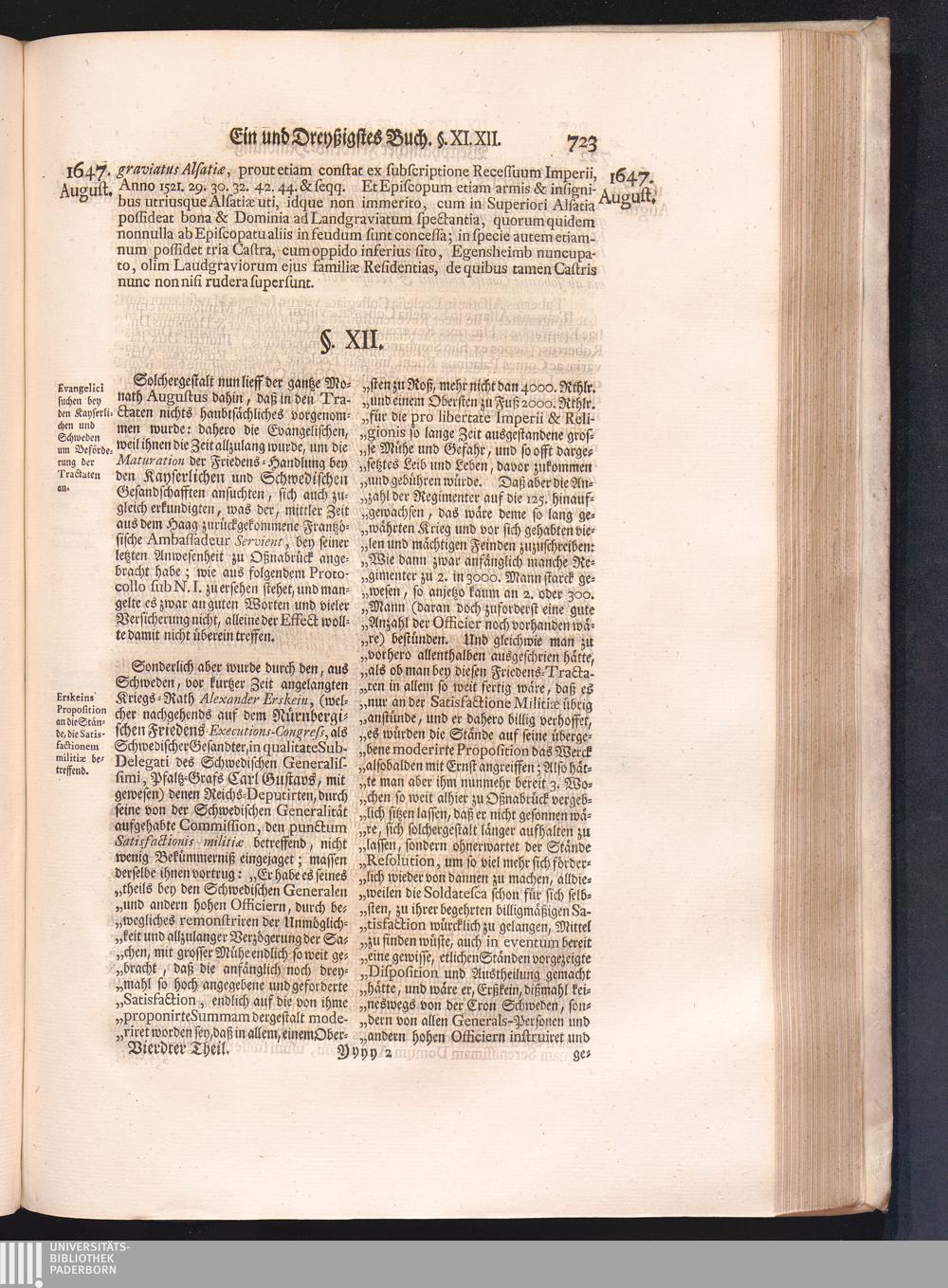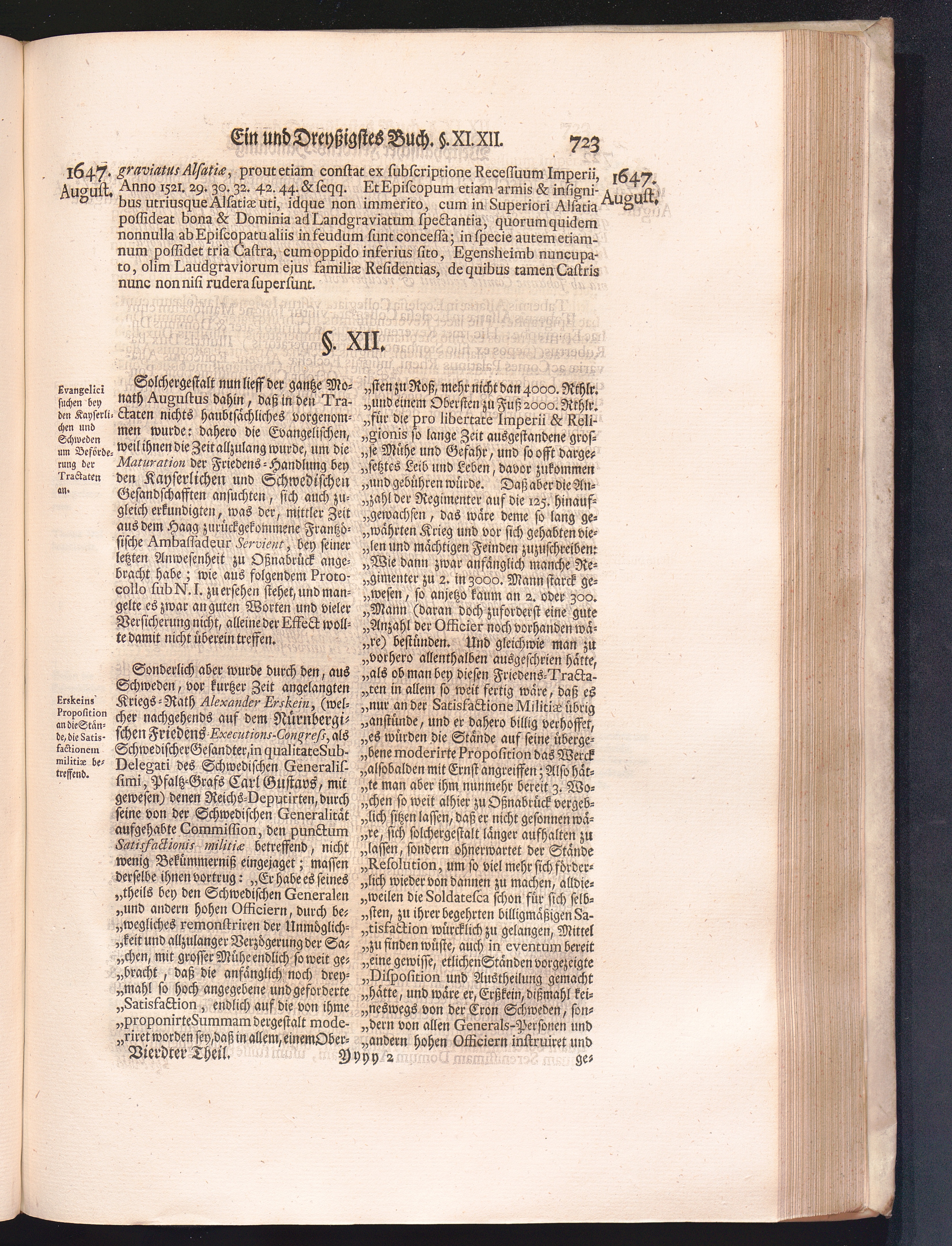 Vierdter Theil (1735) Worinnen enthalten, was vom Anfang des Jahrs 1647. biß gegen Ende desselben zwischen Jhro Römisch-Kayserlichen Majestät, dann den Beyden Cronen Franckreich und Schweden, ingleichen des Heiligen Römischen Reichs Chur-Fürsten, Fürsten und Ständen, zu Oßnabrück und Münster gehandelt worden