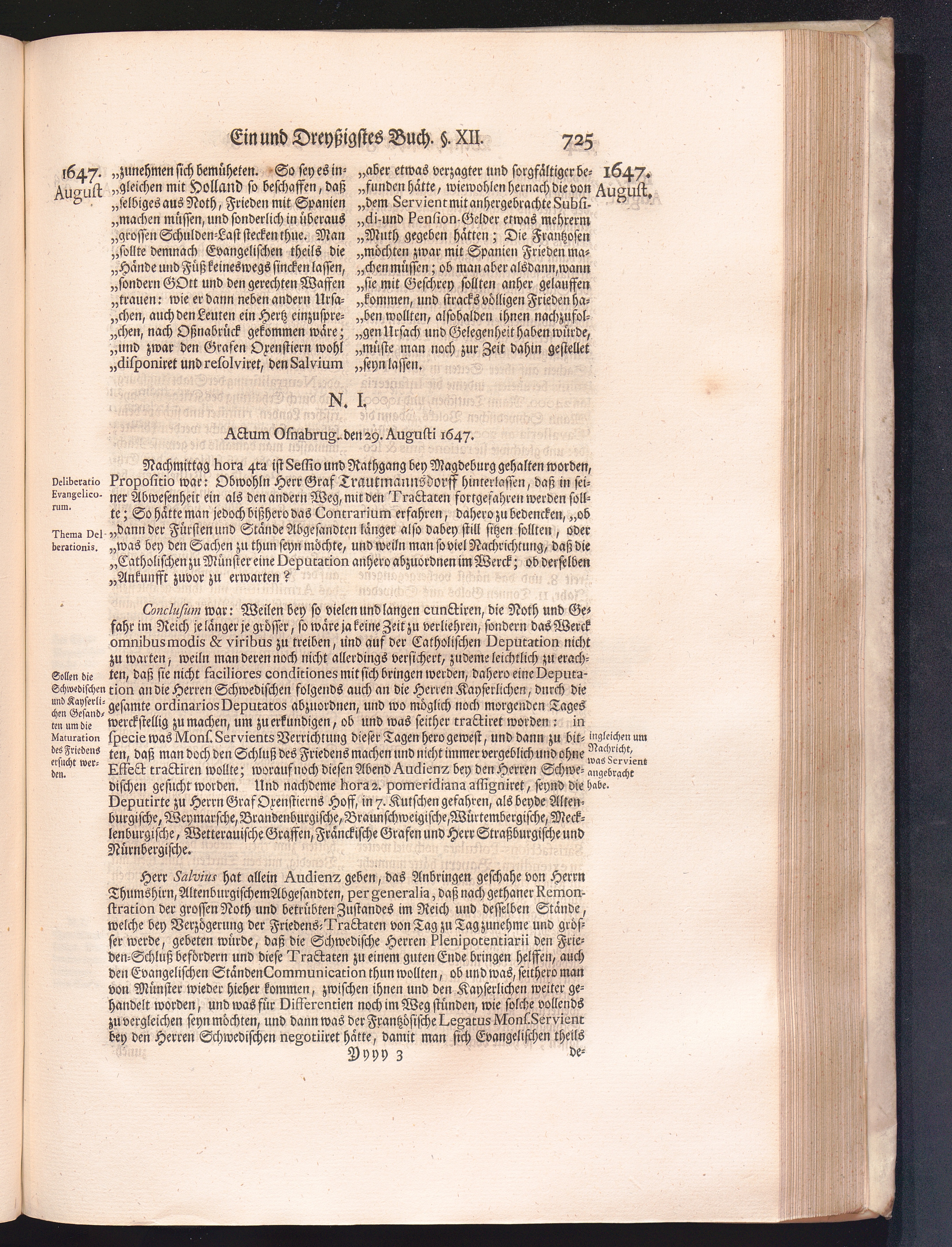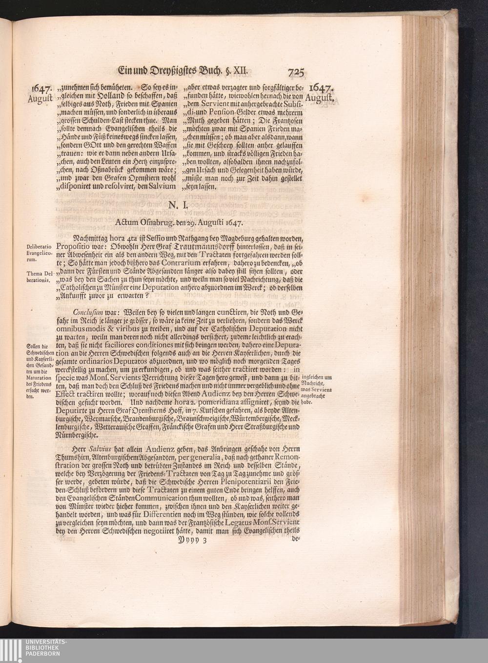 Vierdter Theil (1735) Worinnen enthalten, was vom Anfang des Jahrs 1647. biß gegen Ende desselben zwischen Jhro Römisch-Kayserlichen Majestät, dann den Beyden Cronen Franckreich und Schweden, ingleichen des Heiligen Römischen Reichs Chur-Fürsten, Fürsten und Ständen, zu Oßnabrück und Münster gehandelt worden