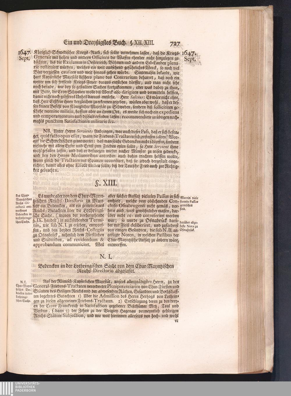 Vierdter Theil (1735) Worinnen enthalten, was vom Anfang des Jahrs 1647. biß gegen Ende desselben zwischen Jhro Römisch-Kayserlichen Majestät, dann den Beyden Cronen Franckreich und Schweden, ingleichen des Heiligen Römischen Reichs Chur-Fürsten, Fürsten und Ständen, zu Oßnabrück und Münster gehandelt worden