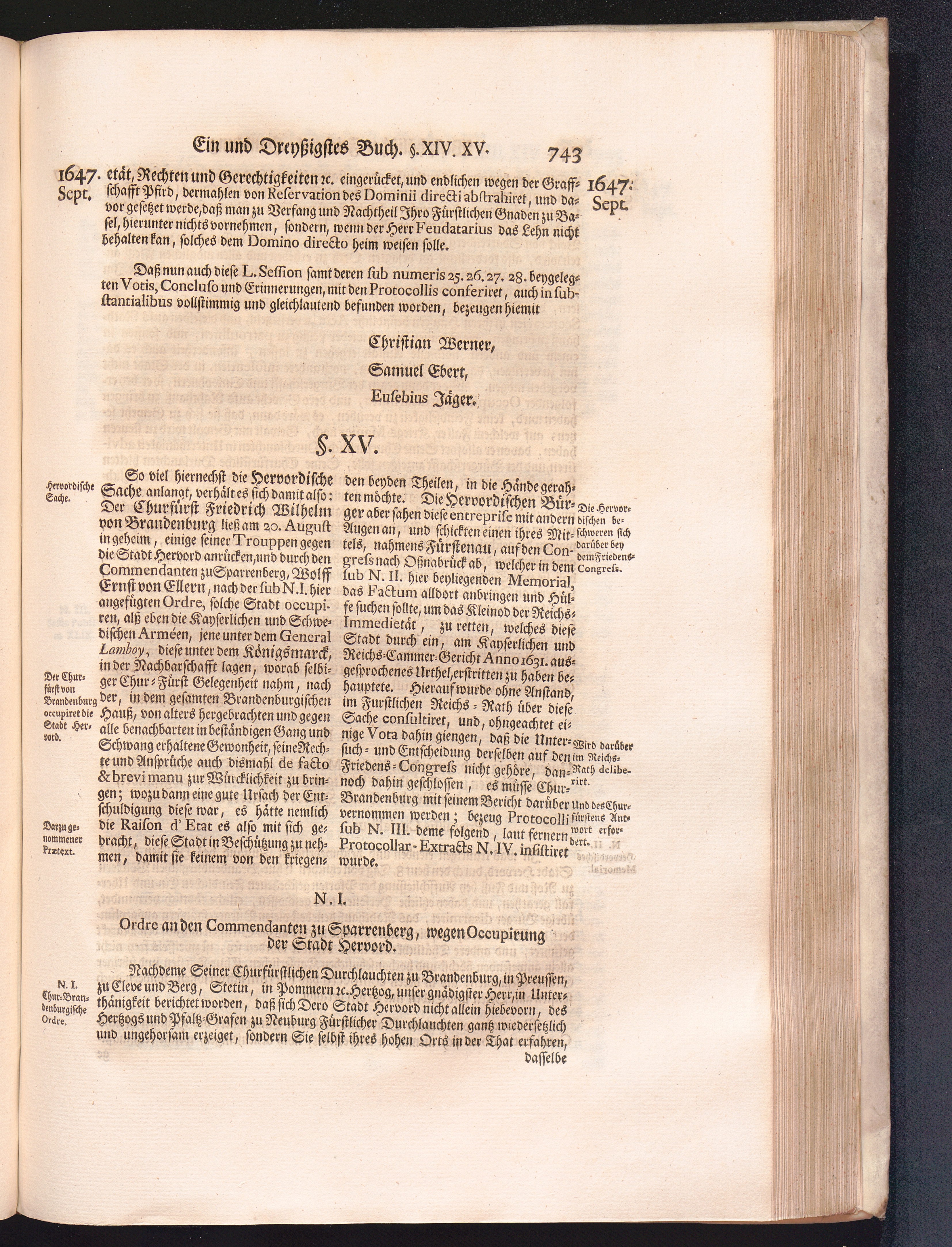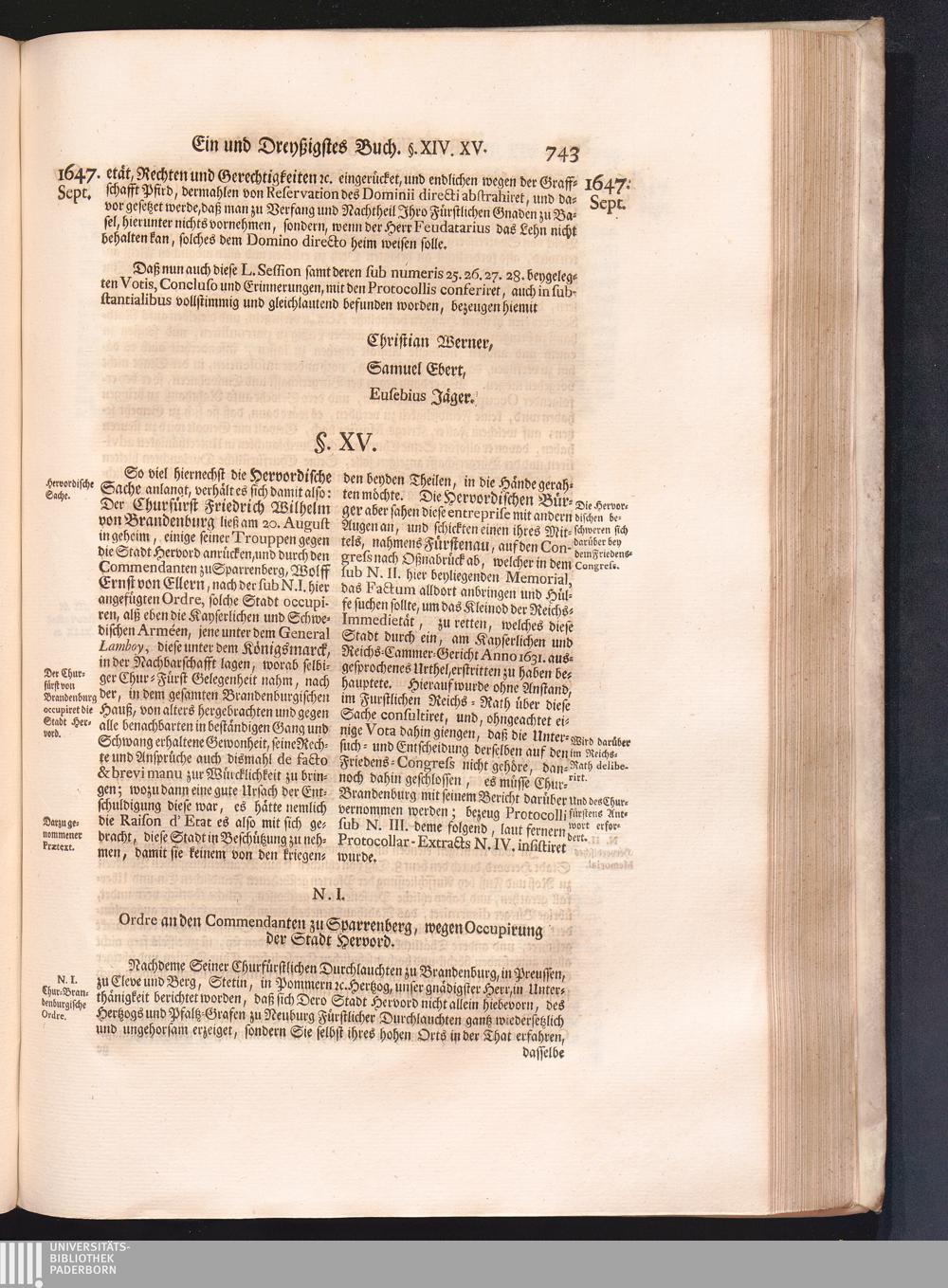 Vierdter Theil (1735) Worinnen enthalten, was vom Anfang des Jahrs 1647. biß gegen Ende desselben zwischen Jhro Römisch-Kayserlichen Majestät, dann den Beyden Cronen Franckreich und Schweden, ingleichen des Heiligen Römischen Reichs Chur-Fürsten, Fürsten und Ständen, zu Oßnabrück und Münster gehandelt worden