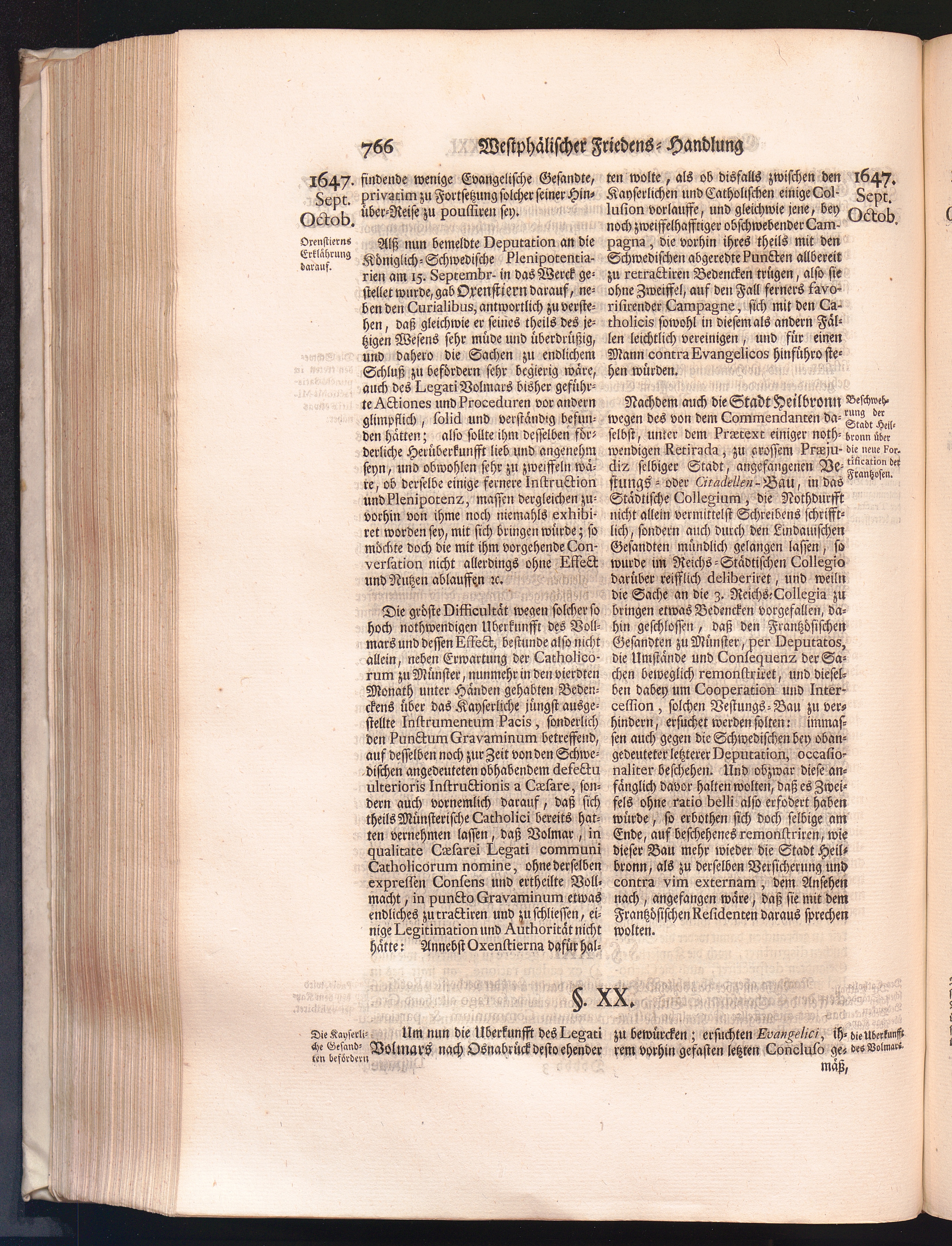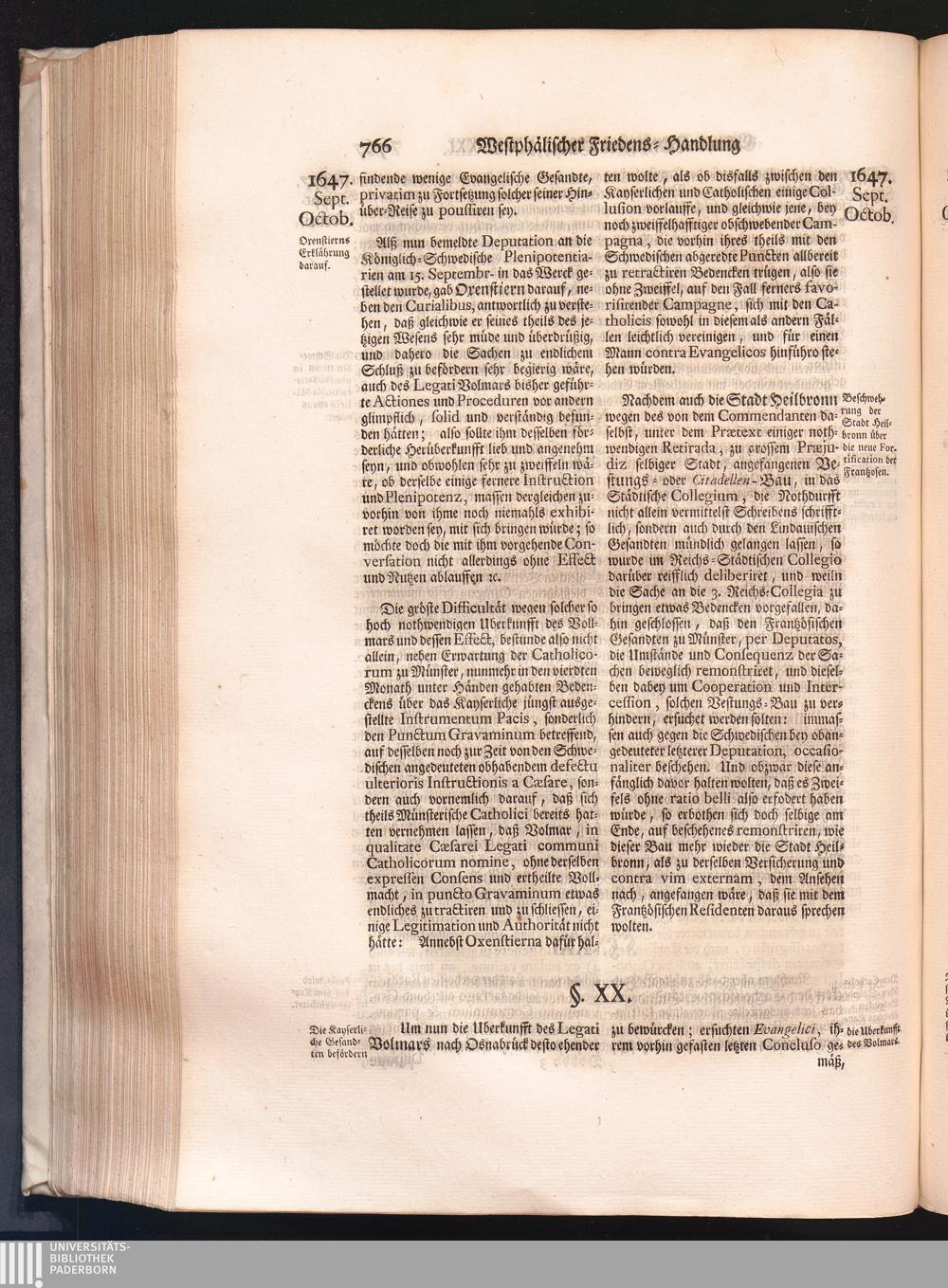Vierdter Theil (1735) Worinnen enthalten, was vom Anfang des Jahrs 1647. biß gegen Ende desselben zwischen Jhro Römisch-Kayserlichen Majestät, dann den Beyden Cronen Franckreich und Schweden, ingleichen des Heiligen Römischen Reichs Chur-Fürsten, Fürsten und Ständen, zu Oßnabrück und Münster gehandelt worden
