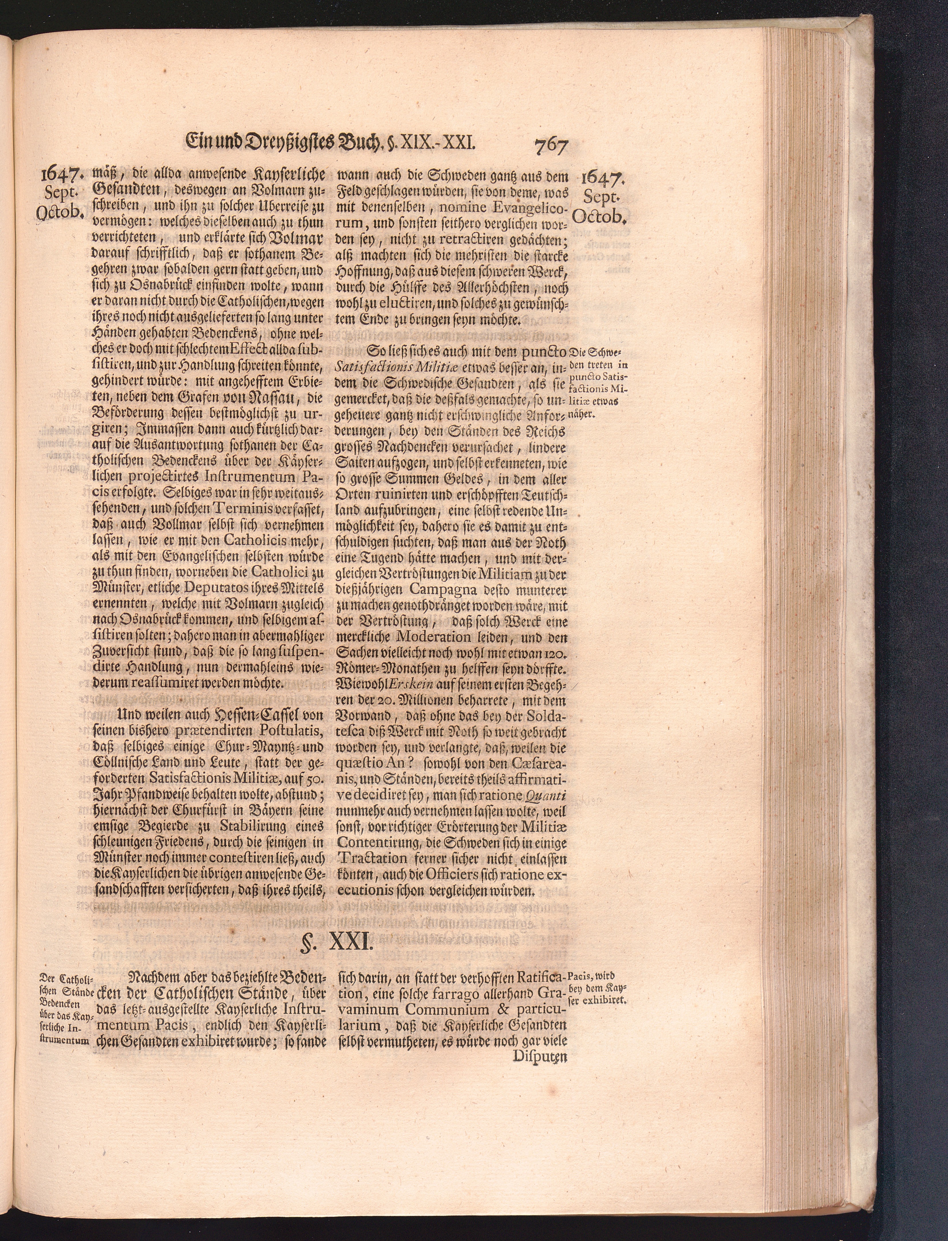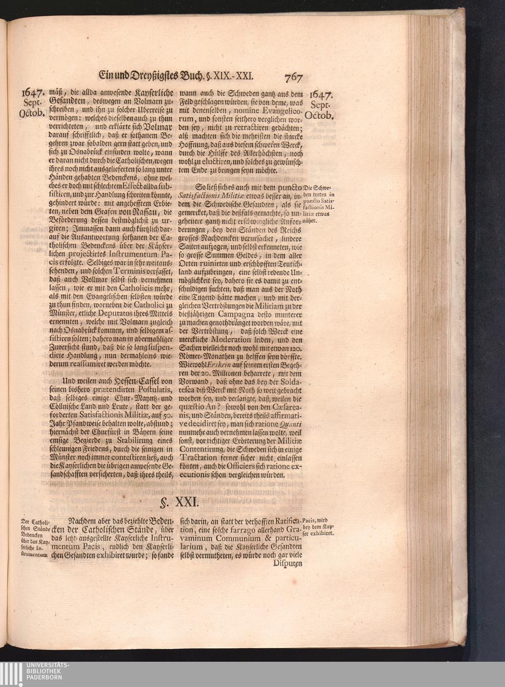 Vierdter Theil (1735) Worinnen enthalten, was vom Anfang des Jahrs 1647. biß gegen Ende desselben zwischen Jhro Römisch-Kayserlichen Majestät, dann den Beyden Cronen Franckreich und Schweden, ingleichen des Heiligen Römischen Reichs Chur-Fürsten, Fürsten und Ständen, zu Oßnabrück und Münster gehandelt worden