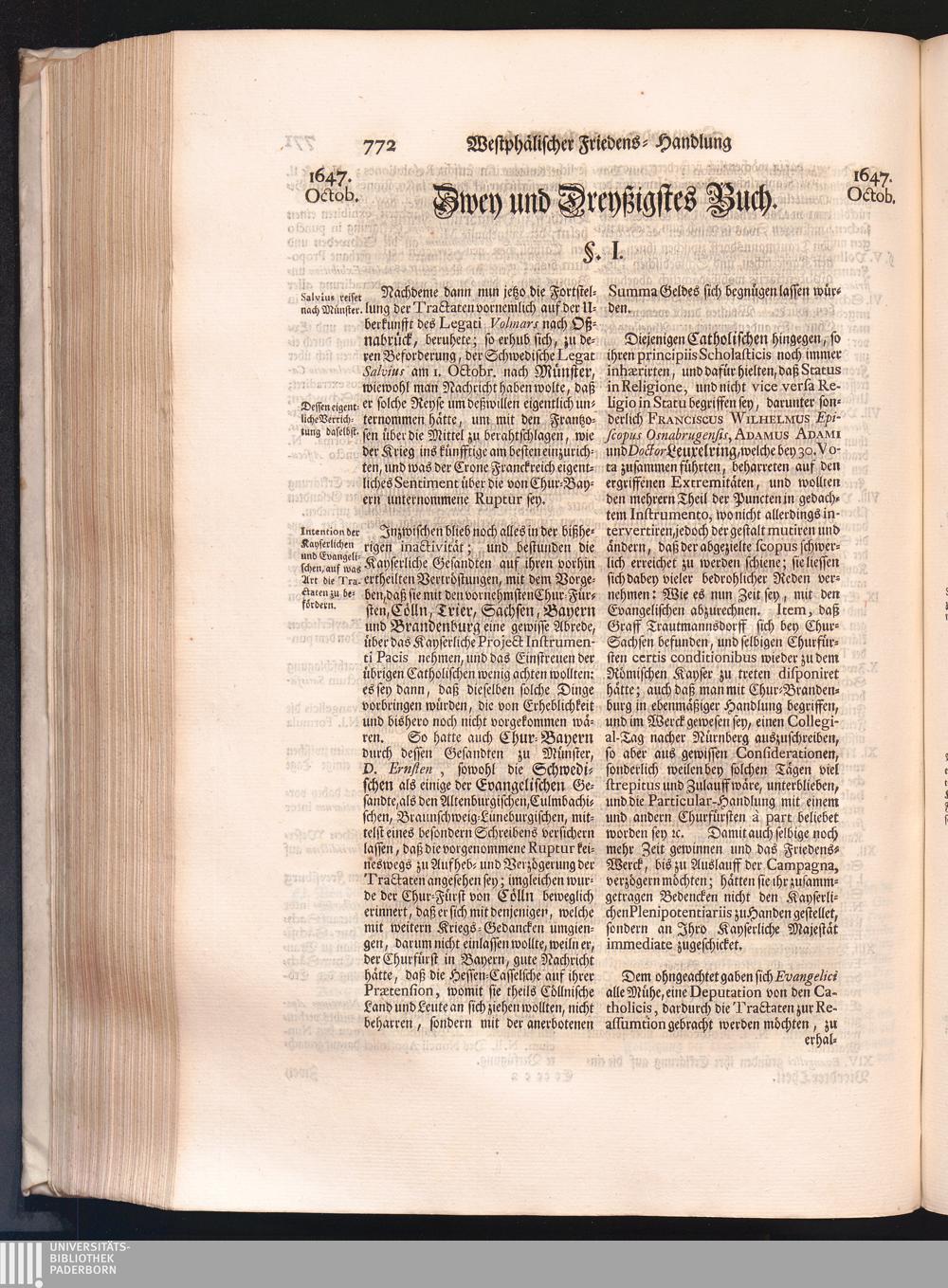 Vierdter Theil (1735) Worinnen enthalten, was vom Anfang des Jahrs 1647. biß gegen Ende desselben zwischen Jhro Römisch-Kayserlichen Majestät, dann den Beyden Cronen Franckreich und Schweden, ingleichen des Heiligen Römischen Reichs Chur-Fürsten, Fürsten und Ständen, zu Oßnabrück und Münster gehandelt worden
