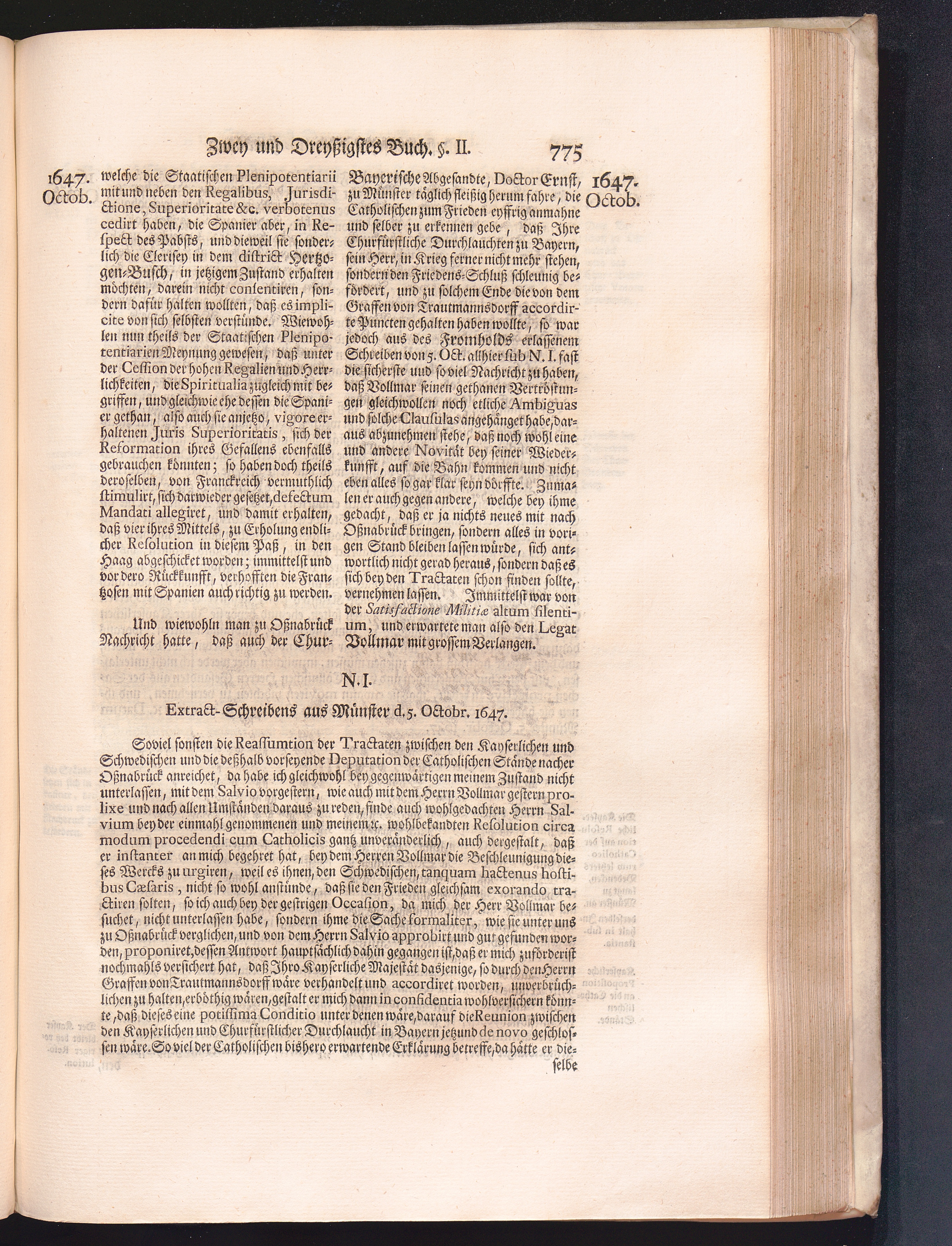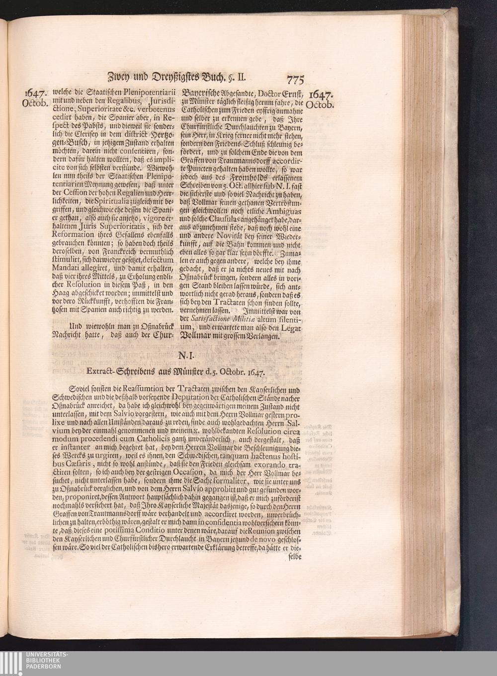 Vierdter Theil (1735) Worinnen enthalten, was vom Anfang des Jahrs 1647. biß gegen Ende desselben zwischen Jhro Römisch-Kayserlichen Majestät, dann den Beyden Cronen Franckreich und Schweden, ingleichen des Heiligen Römischen Reichs Chur-Fürsten, Fürsten und Ständen, zu Oßnabrück und Münster gehandelt worden