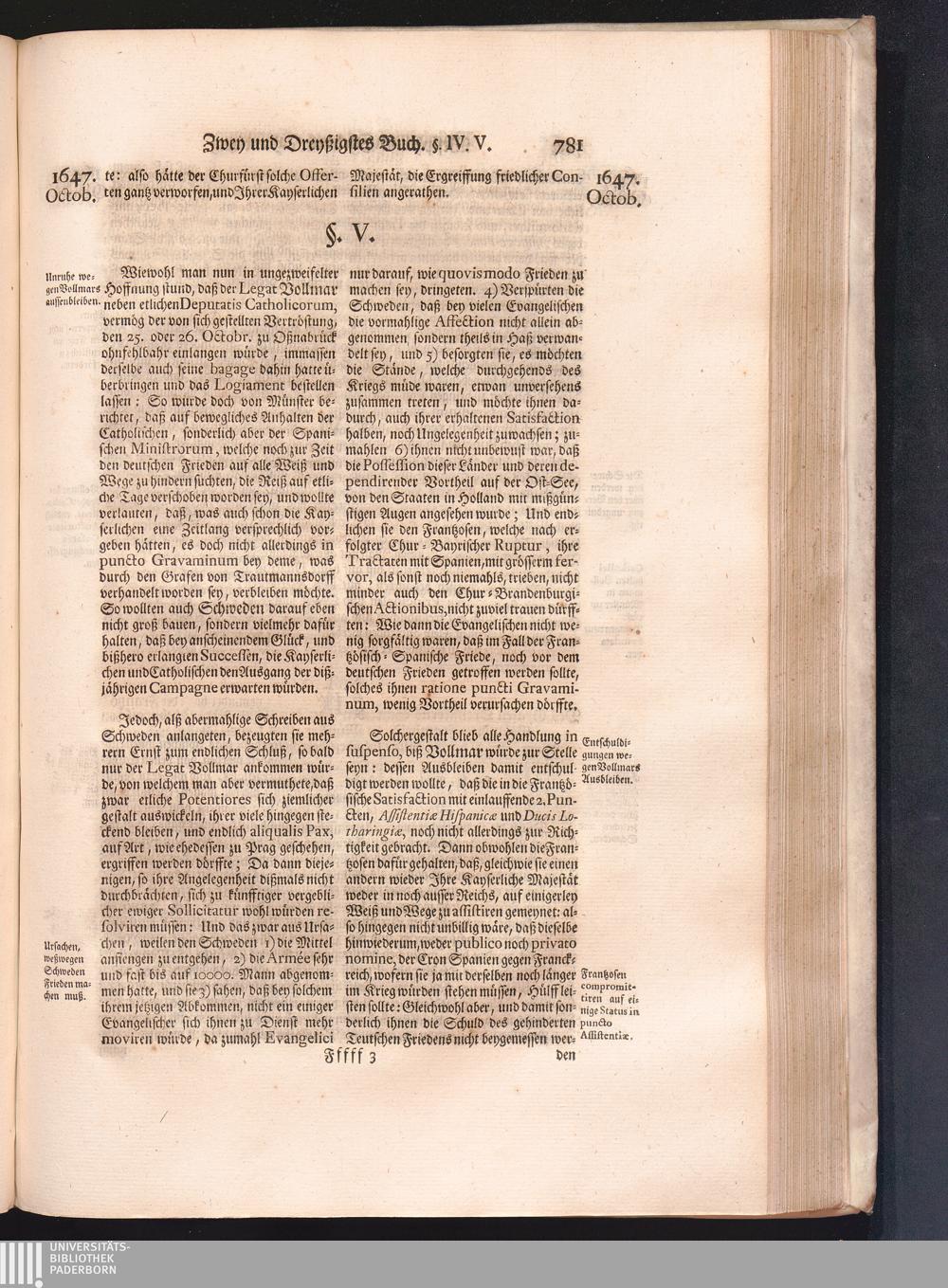 Vierdter Theil (1735) Worinnen enthalten, was vom Anfang des Jahrs 1647. biß gegen Ende desselben zwischen Jhro Römisch-Kayserlichen Majestät, dann den Beyden Cronen Franckreich und Schweden, ingleichen des Heiligen Römischen Reichs Chur-Fürsten, Fürsten und Ständen, zu Oßnabrück und Münster gehandelt worden