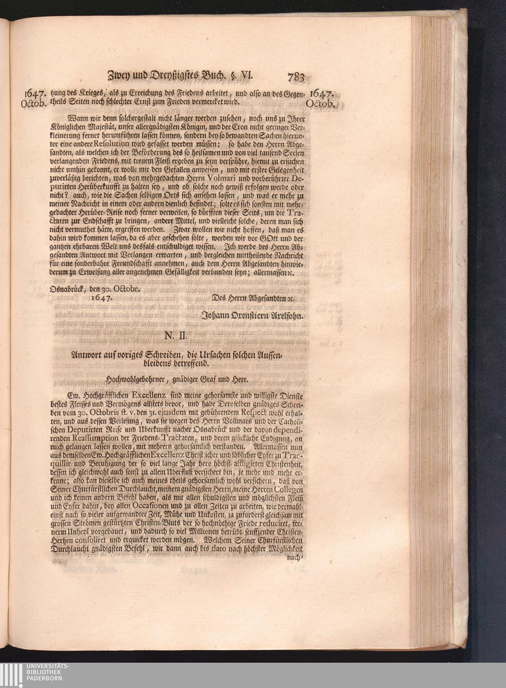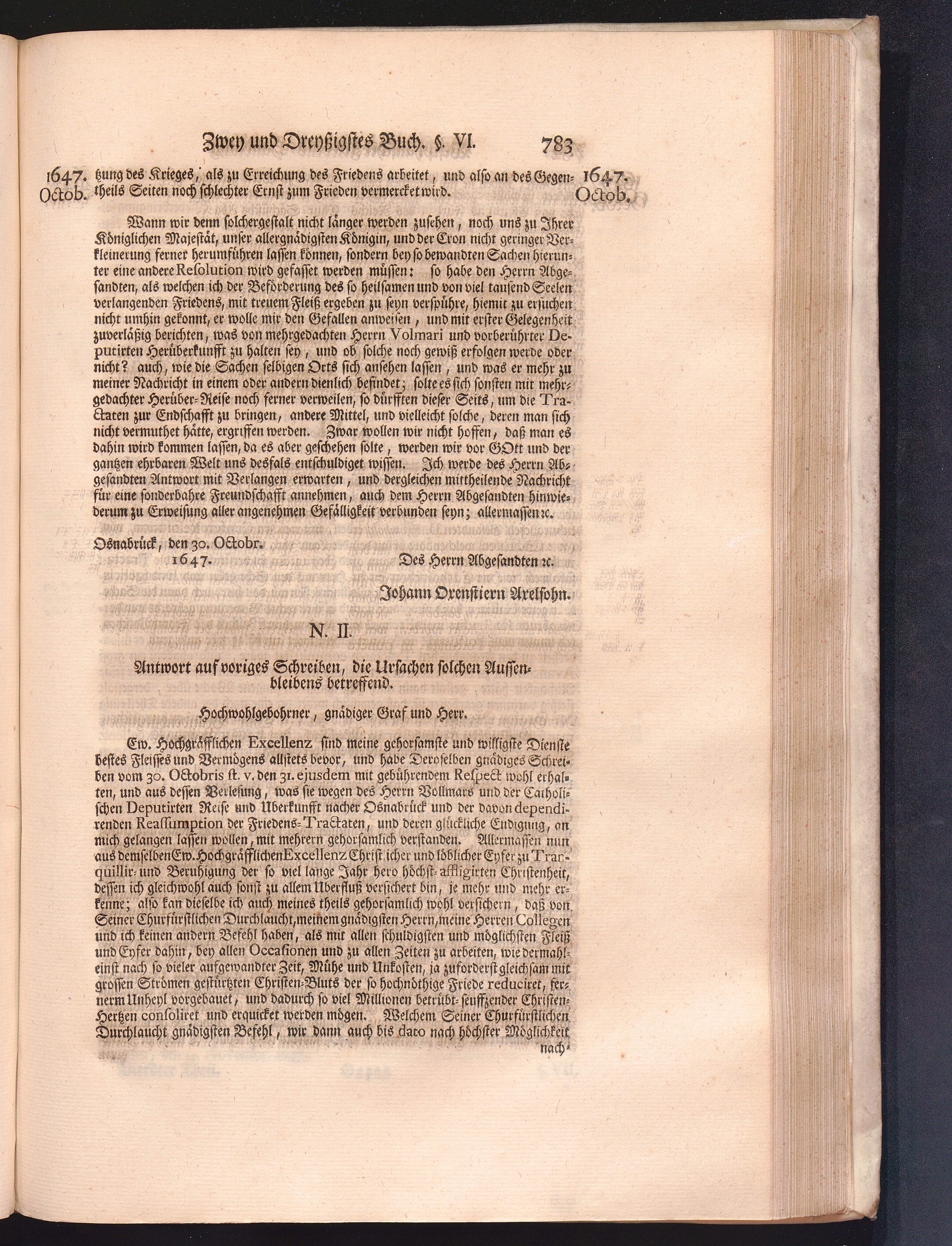 Vierdter Theil (1735) Worinnen enthalten, was vom Anfang des Jahrs 1647. biß gegen Ende desselben zwischen Jhro Römisch-Kayserlichen Majestät, dann den Beyden Cronen Franckreich und Schweden, ingleichen des Heiligen Römischen Reichs Chur-Fürsten, Fürsten und Ständen, zu Oßnabrück und Münster gehandelt worden