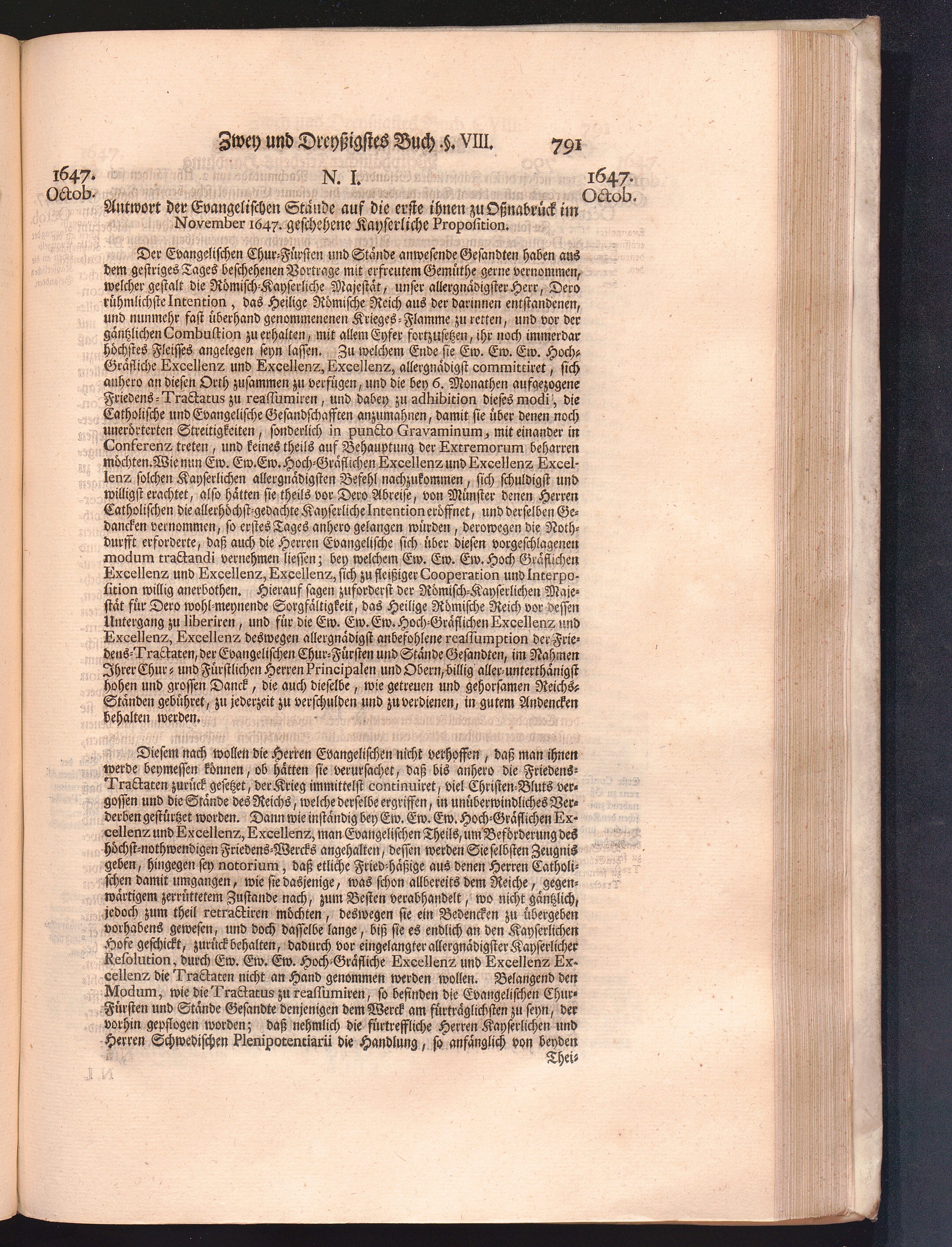 Vierdter Theil (1735) Worinnen enthalten, was vom Anfang des Jahrs 1647. biß gegen Ende desselben zwischen Jhro Römisch-Kayserlichen Majestät, dann den Beyden Cronen Franckreich und Schweden, ingleichen des Heiligen Römischen Reichs Chur-Fürsten, Fürsten und Ständen, zu Oßnabrück und Münster gehandelt worden