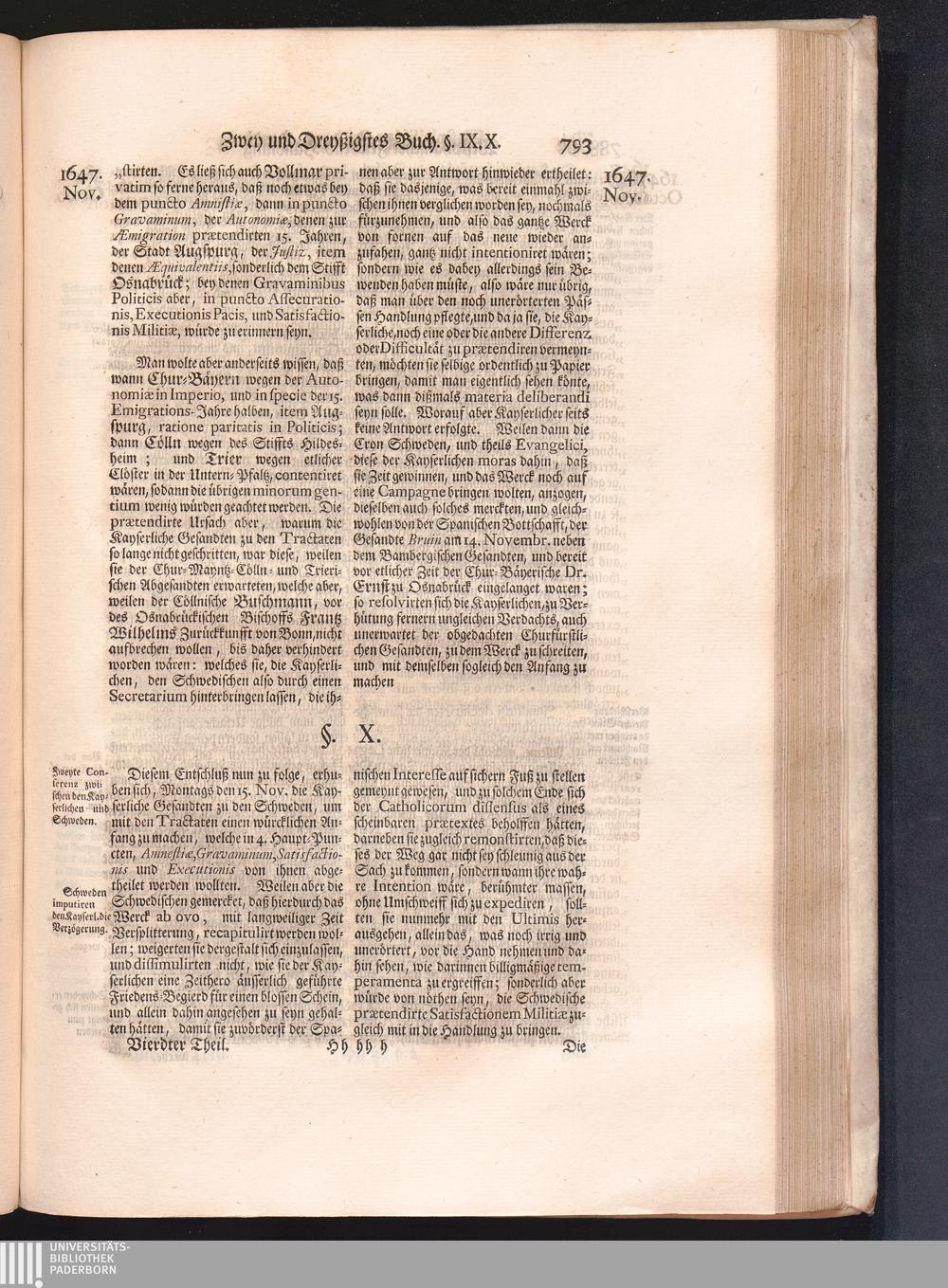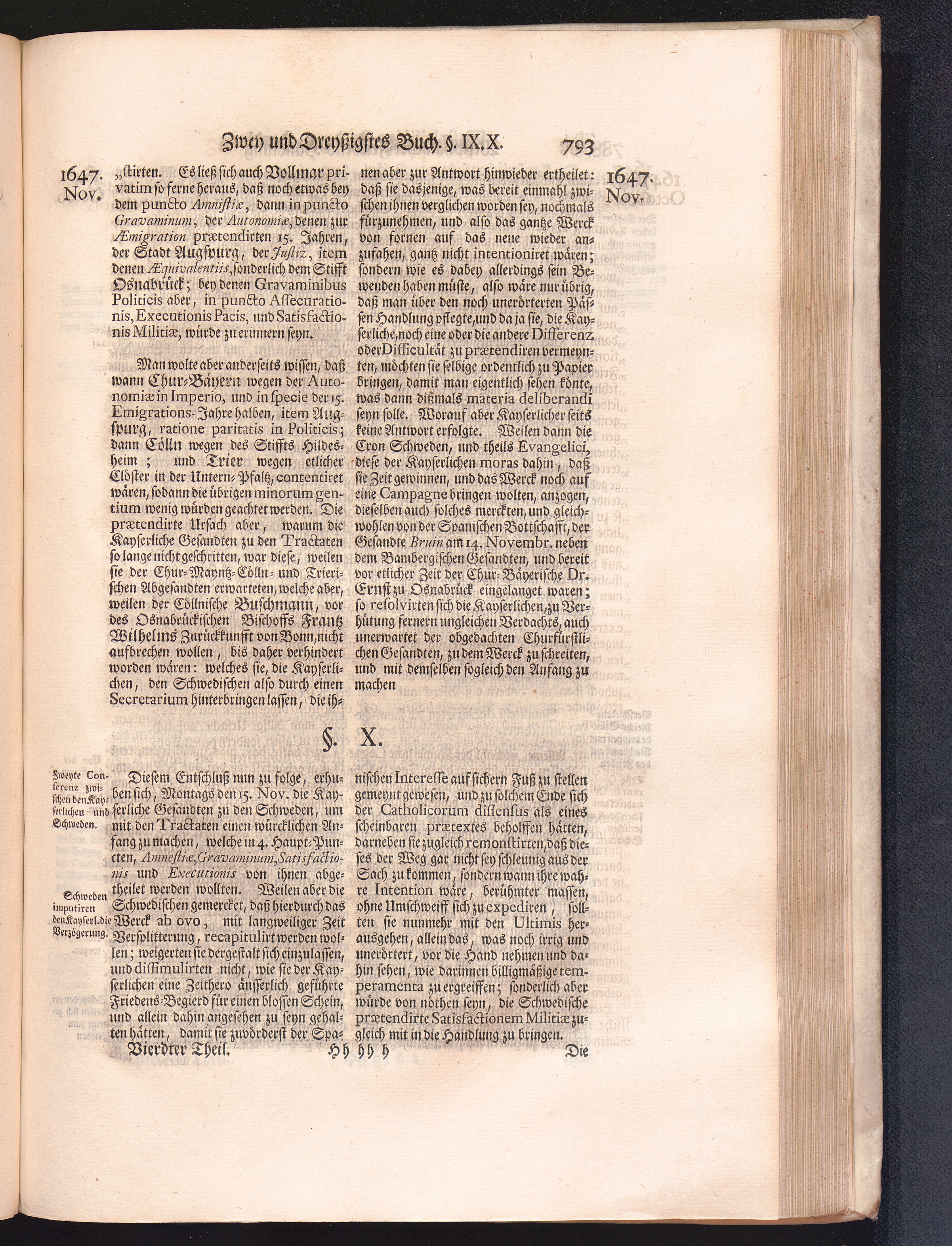 Vierdter Theil (1735) Worinnen enthalten, was vom Anfang des Jahrs 1647. biß gegen Ende desselben zwischen Jhro Römisch-Kayserlichen Majestät, dann den Beyden Cronen Franckreich und Schweden, ingleichen des Heiligen Römischen Reichs Chur-Fürsten, Fürsten und Ständen, zu Oßnabrück und Münster gehandelt worden