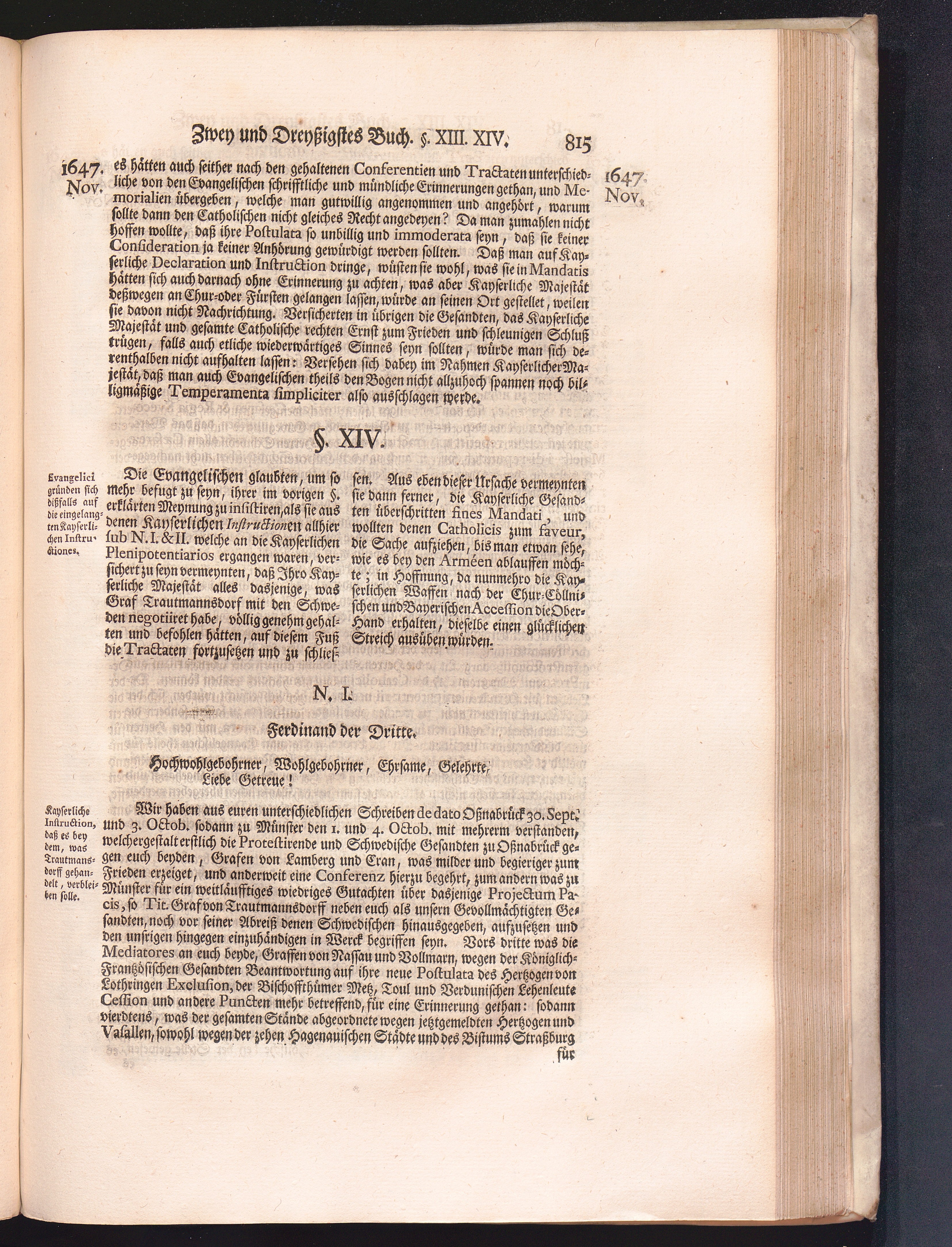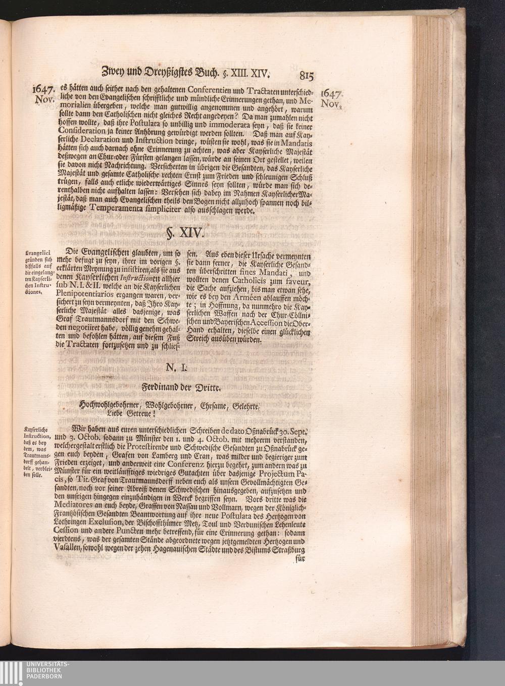 Vierdter Theil (1735) Worinnen enthalten, was vom Anfang des Jahrs 1647. biß gegen Ende desselben zwischen Jhro Römisch-Kayserlichen Majestät, dann den Beyden Cronen Franckreich und Schweden, ingleichen des Heiligen Römischen Reichs Chur-Fürsten, Fürsten und Ständen, zu Oßnabrück und Münster gehandelt worden