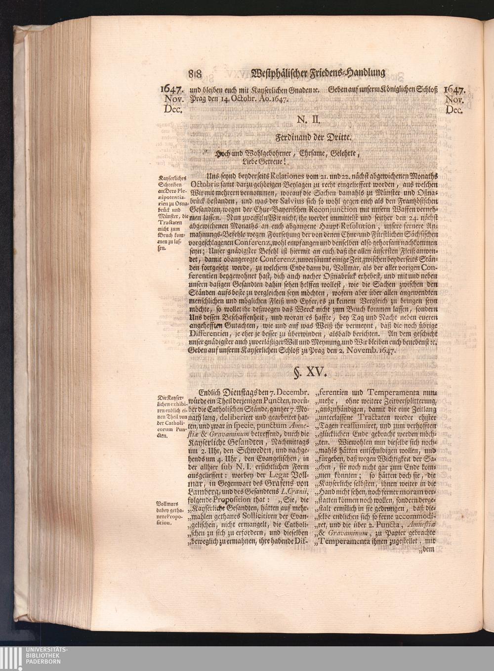 Vierdter Theil (1735) Worinnen enthalten, was vom Anfang des Jahrs 1647. biß gegen Ende desselben zwischen Jhro Römisch-Kayserlichen Majestät, dann den Beyden Cronen Franckreich und Schweden, ingleichen des Heiligen Römischen Reichs Chur-Fürsten, Fürsten und Ständen, zu Oßnabrück und Münster gehandelt worden