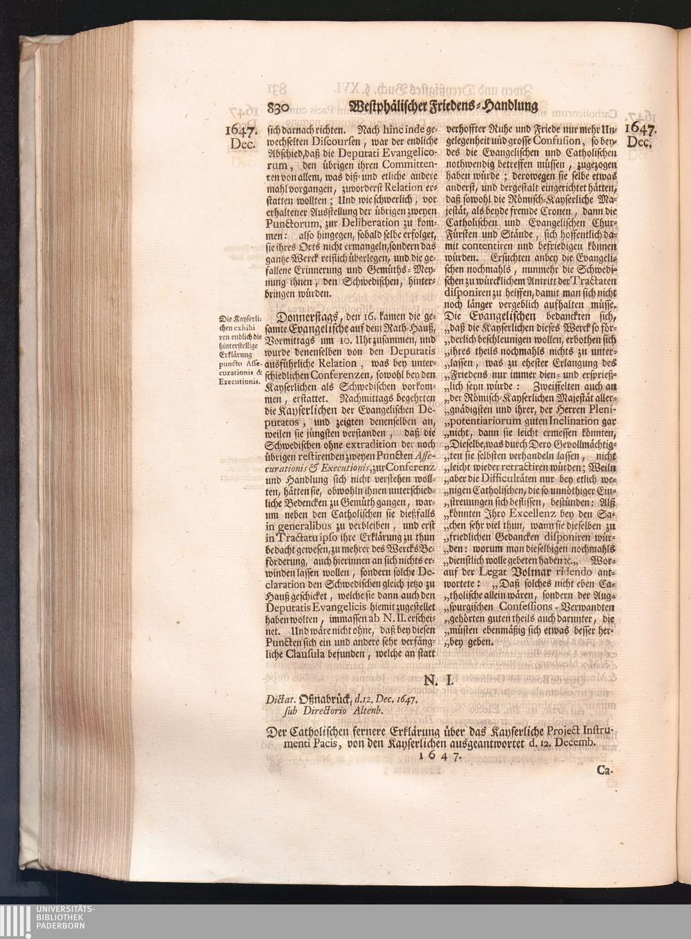 Vierdter Theil (1735) Worinnen enthalten, was vom Anfang des Jahrs 1647. biß gegen Ende desselben zwischen Jhro Römisch-Kayserlichen Majestät, dann den Beyden Cronen Franckreich und Schweden, ingleichen des Heiligen Römischen Reichs Chur-Fürsten, Fürsten und Ständen, zu Oßnabrück und Münster gehandelt worden