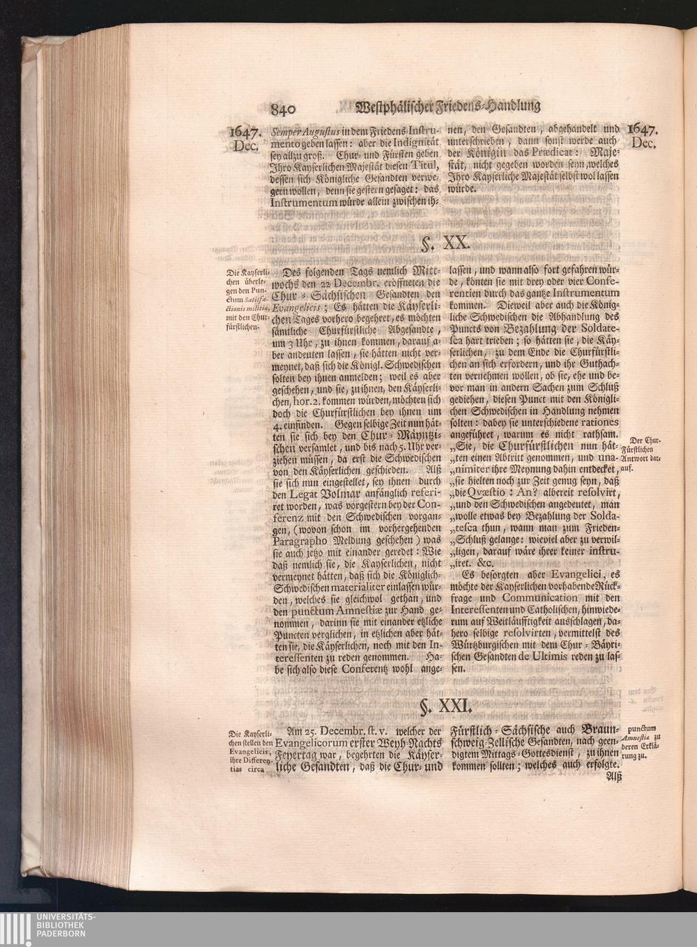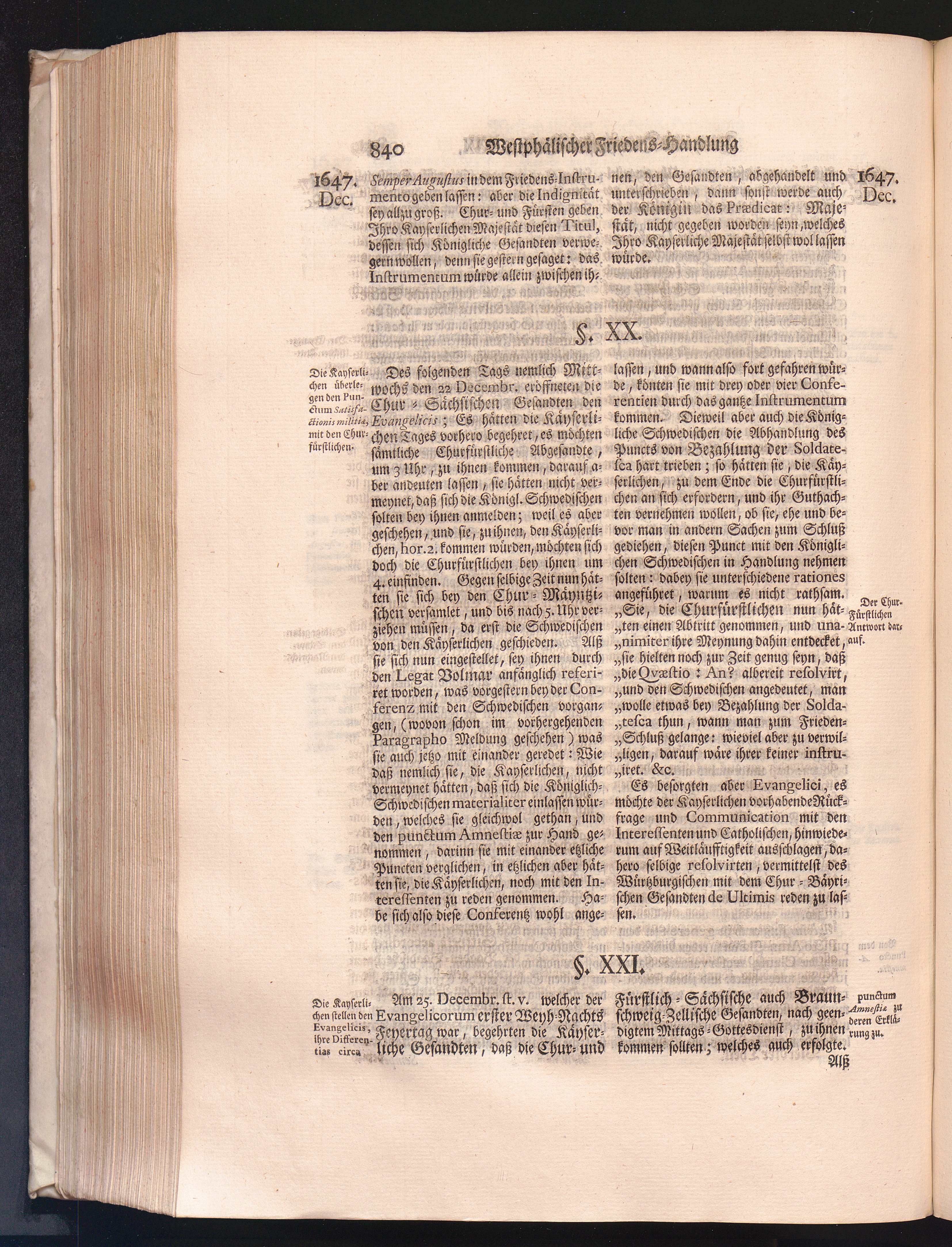 Vierdter Theil (1735) Worinnen enthalten, was vom Anfang des Jahrs 1647. biß gegen Ende desselben zwischen Jhro Römisch-Kayserlichen Majestät, dann den Beyden Cronen Franckreich und Schweden, ingleichen des Heiligen Römischen Reichs Chur-Fürsten, Fürsten und Ständen, zu Oßnabrück und Münster gehandelt worden