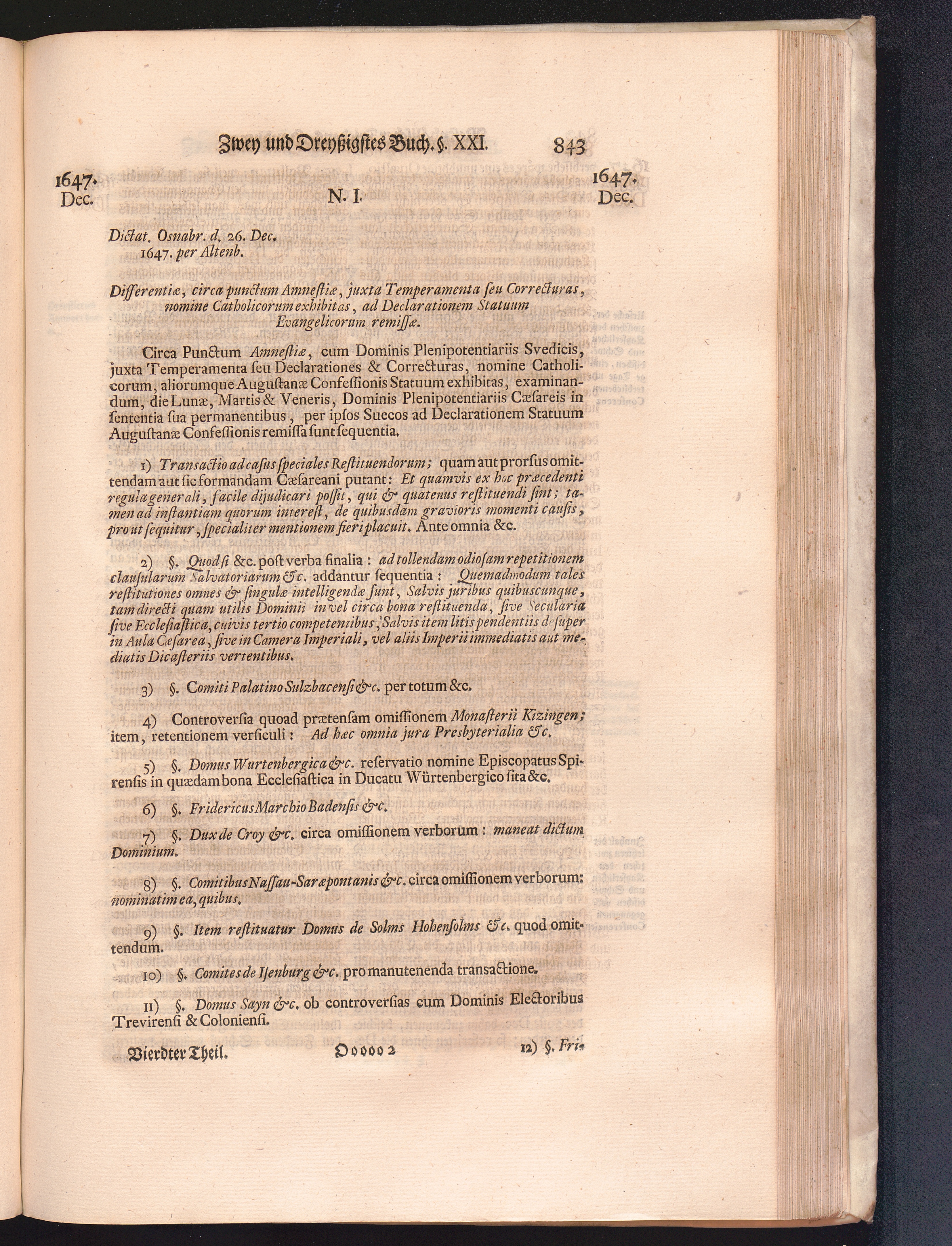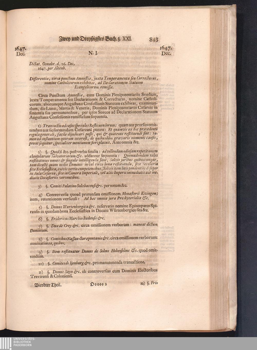 Vierdter Theil (1735) Worinnen enthalten, was vom Anfang des Jahrs 1647. biß gegen Ende desselben zwischen Jhro Römisch-Kayserlichen Majestät, dann den Beyden Cronen Franckreich und Schweden, ingleichen des Heiligen Römischen Reichs Chur-Fürsten, Fürsten und Ständen, zu Oßnabrück und Münster gehandelt worden