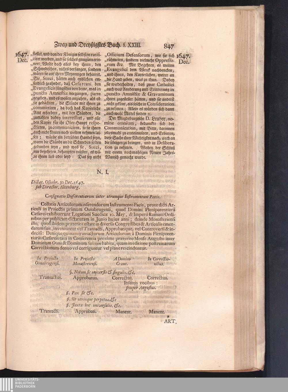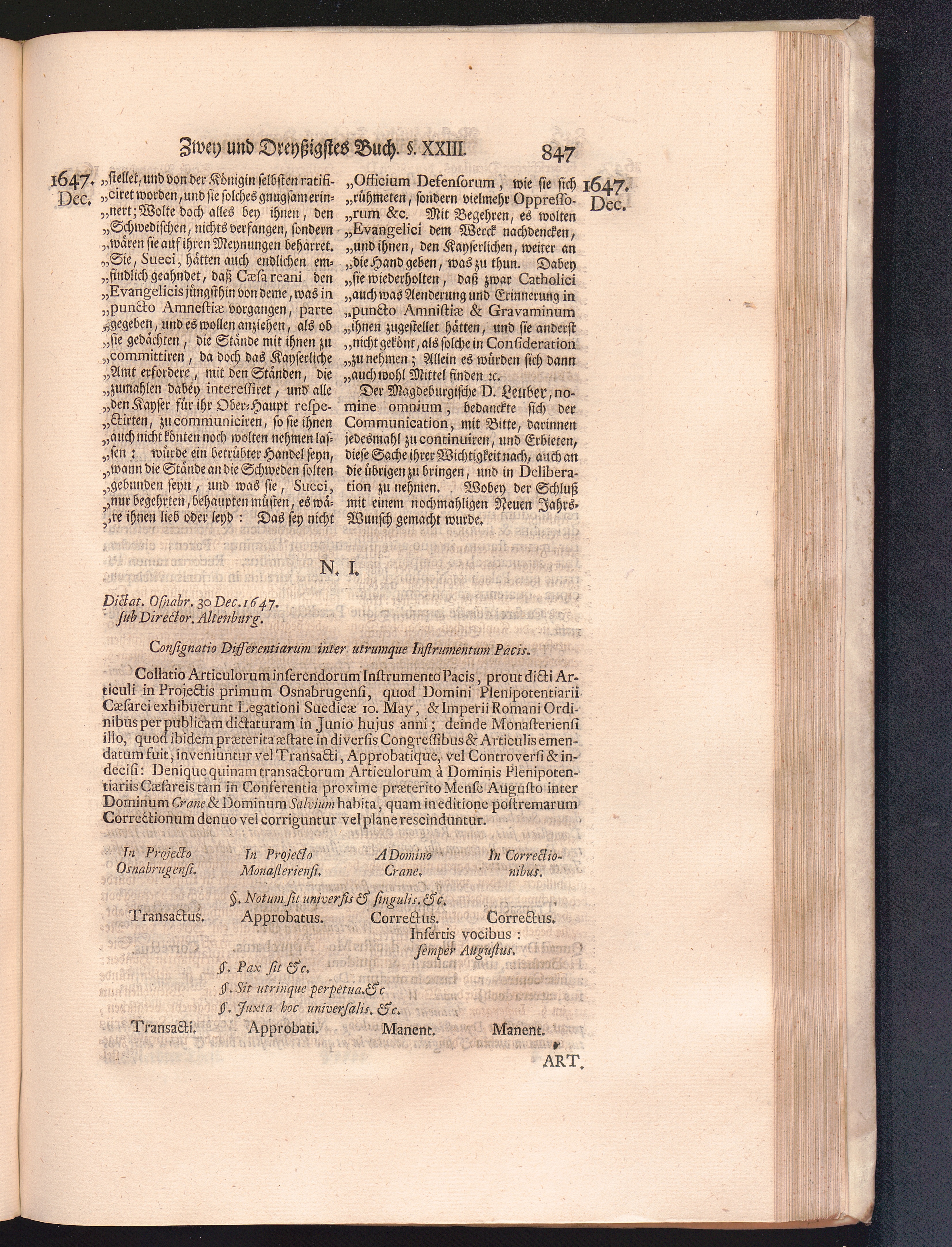 Vierdter Theil (1735) Worinnen enthalten, was vom Anfang des Jahrs 1647. biß gegen Ende desselben zwischen Jhro Römisch-Kayserlichen Majestät, dann den Beyden Cronen Franckreich und Schweden, ingleichen des Heiligen Römischen Reichs Chur-Fürsten, Fürsten und Ständen, zu Oßnabrück und Münster gehandelt worden