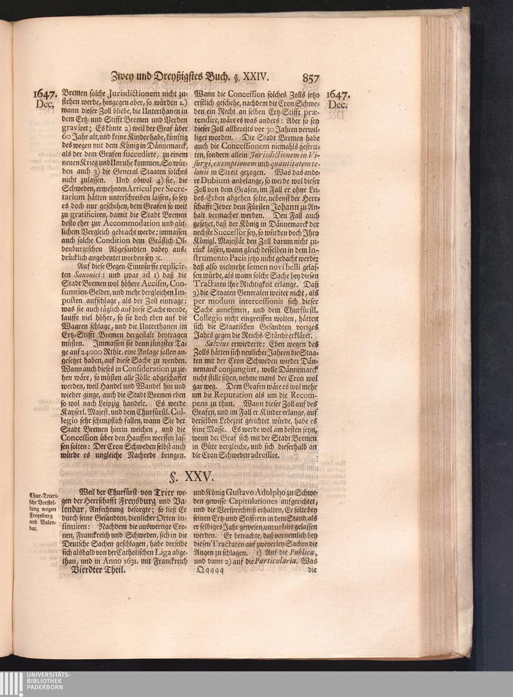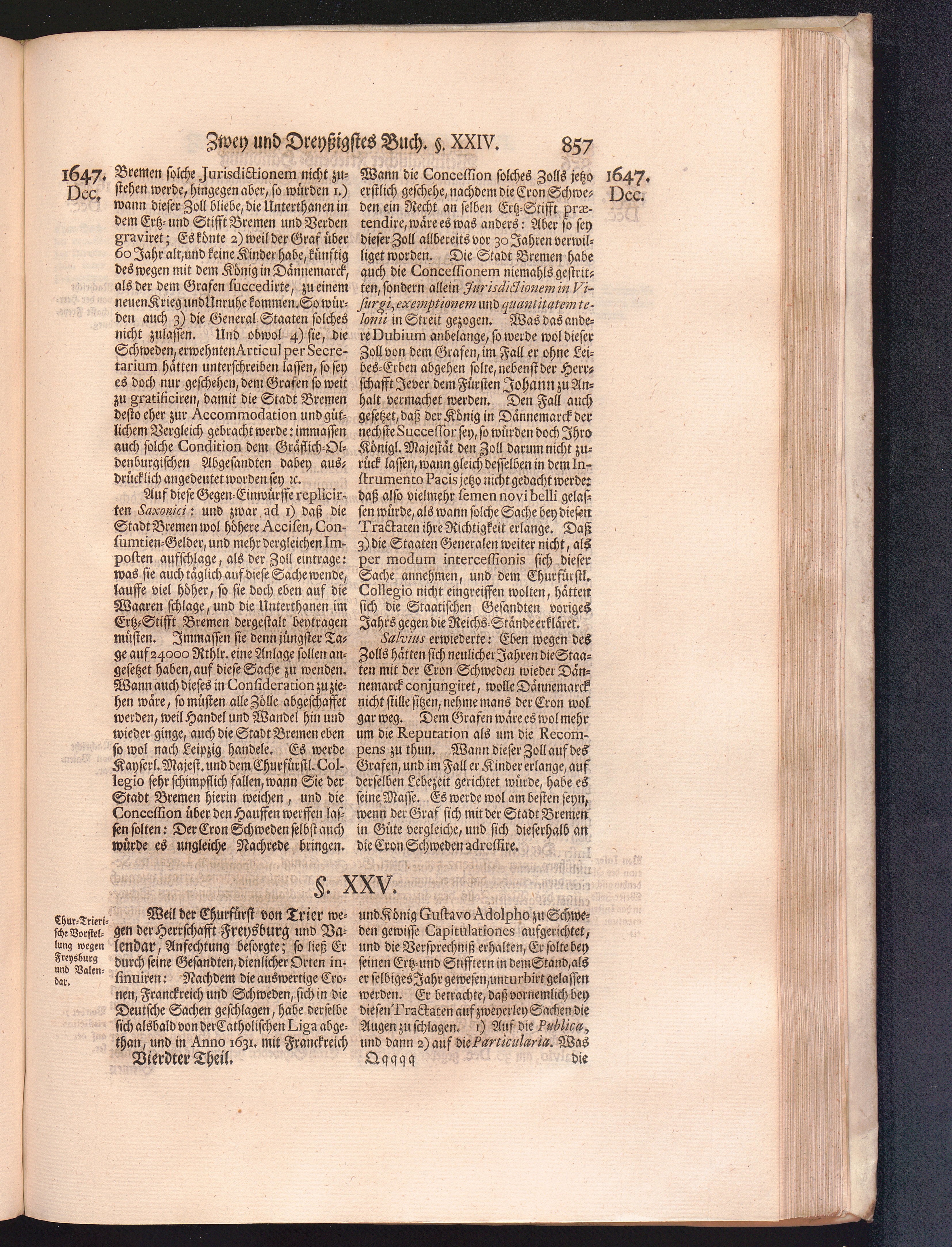 Vierdter Theil (1735) Worinnen enthalten, was vom Anfang des Jahrs 1647. biß gegen Ende desselben zwischen Jhro Römisch-Kayserlichen Majestät, dann den Beyden Cronen Franckreich und Schweden, ingleichen des Heiligen Römischen Reichs Chur-Fürsten, Fürsten und Ständen, zu Oßnabrück und Münster gehandelt worden