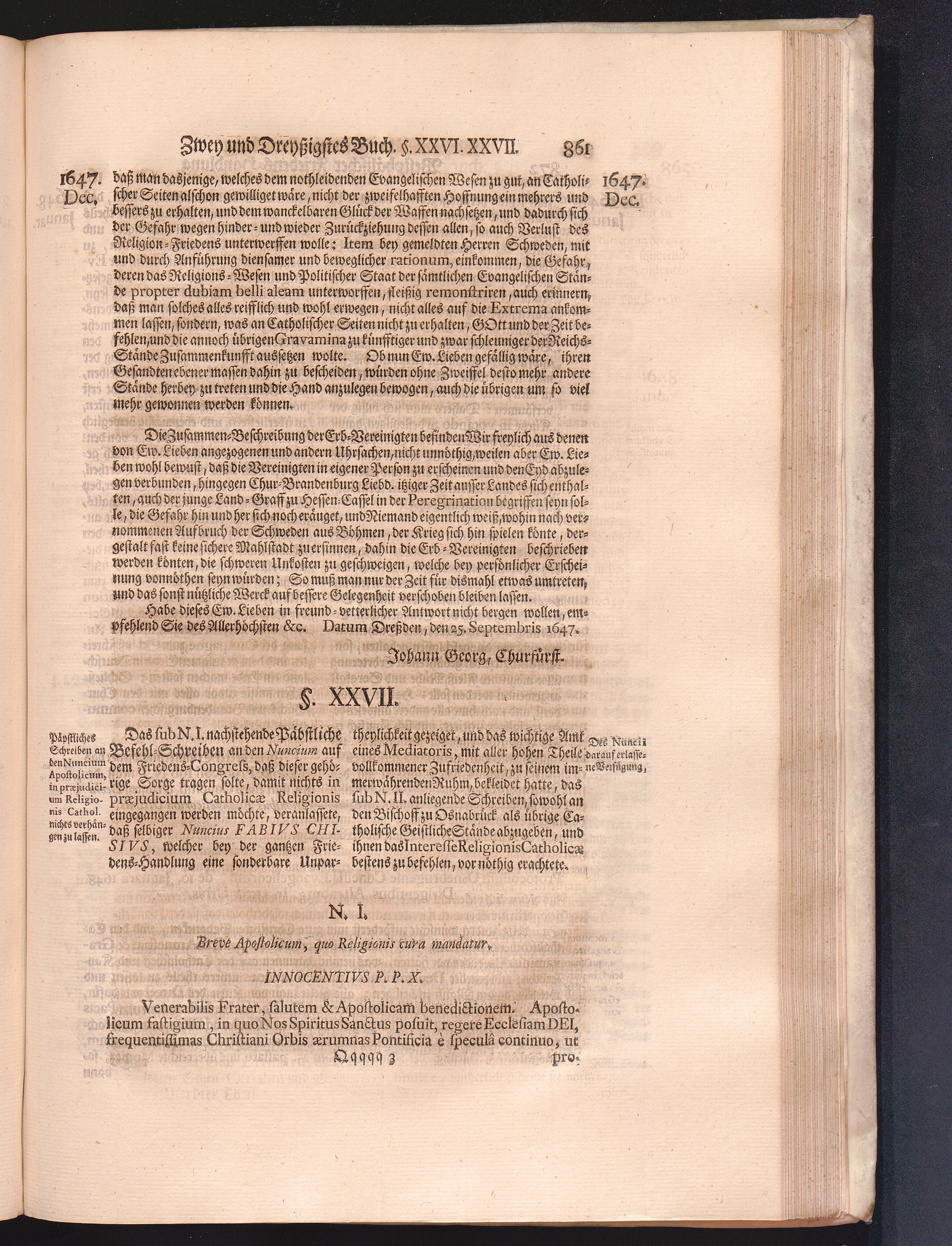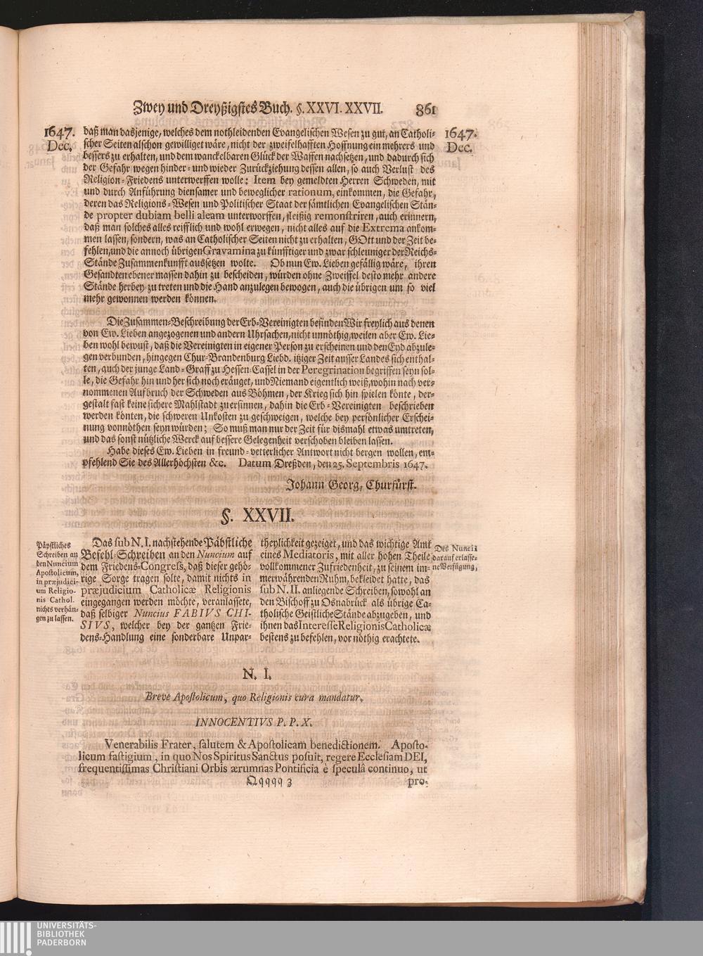 Vierdter Theil (1735) Worinnen enthalten, was vom Anfang des Jahrs 1647. biß gegen Ende desselben zwischen Jhro Römisch-Kayserlichen Majestät, dann den Beyden Cronen Franckreich und Schweden, ingleichen des Heiligen Römischen Reichs Chur-Fürsten, Fürsten und Ständen, zu Oßnabrück und Münster gehandelt worden