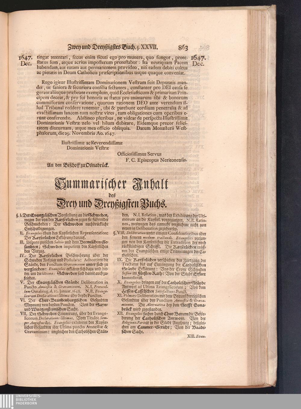 Vierdter Theil (1735) Worinnen enthalten, was vom Anfang des Jahrs 1647. biß gegen Ende desselben zwischen Jhro Römisch-Kayserlichen Majestät, dann den Beyden Cronen Franckreich und Schweden, ingleichen des Heiligen Römischen Reichs Chur-Fürsten, Fürsten und Ständen, zu Oßnabrück und Münster gehandelt worden