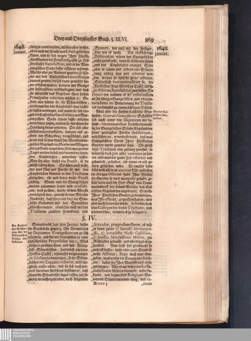 Vierdter Theil (1735) Worinnen enthalten, was vom Anfang des Jahrs 1647. biß gegen Ende desselben zwischen Jhro Römisch-Kayserlichen Majestät, dann den Beyden Cronen Franckreich und Schweden, ingleichen des Heiligen Römischen Reichs Chur-Fürsten, Fürsten und Ständen, zu Oßnabrück und Münster gehandelt worden